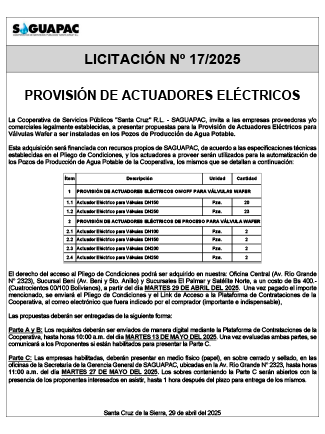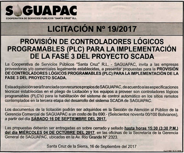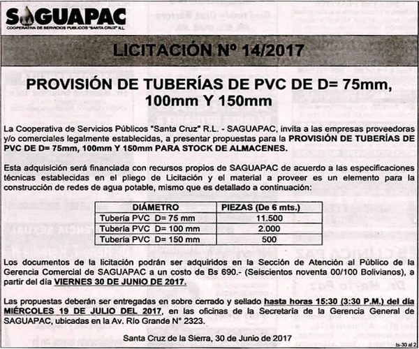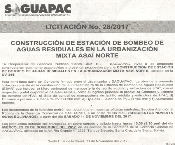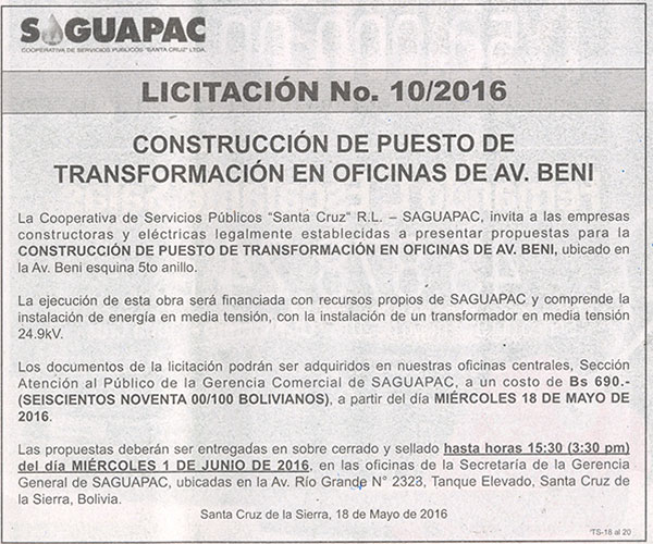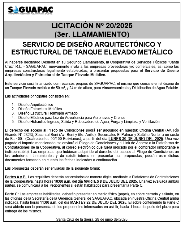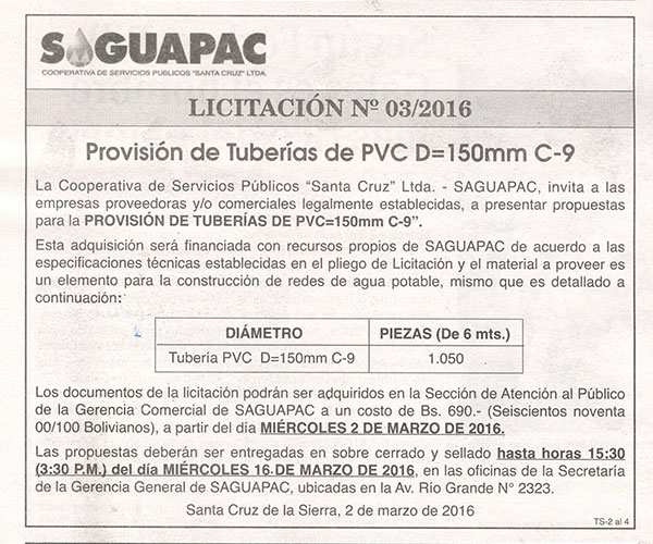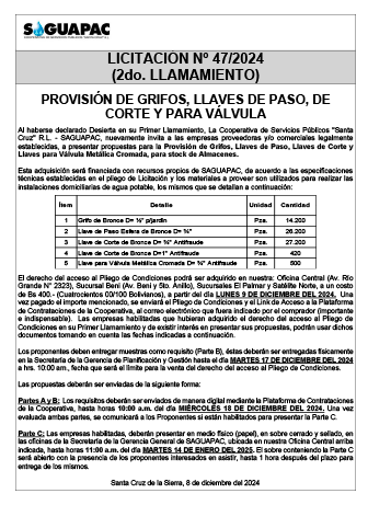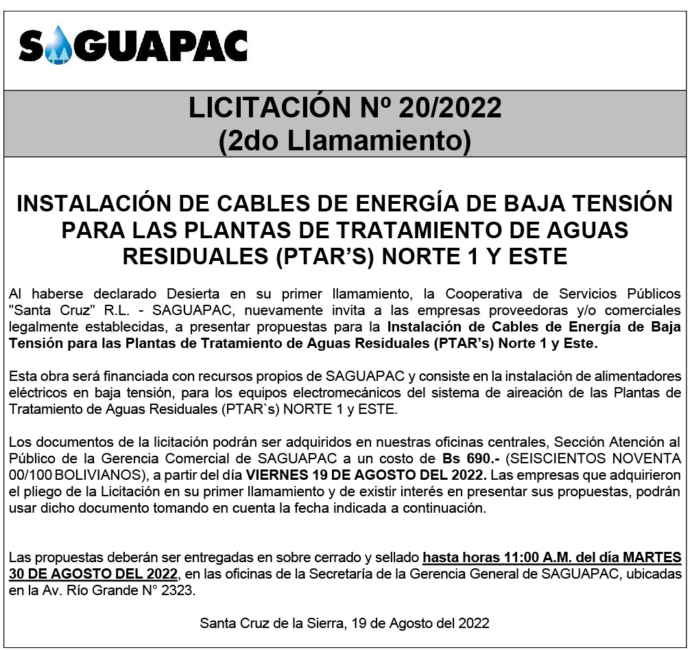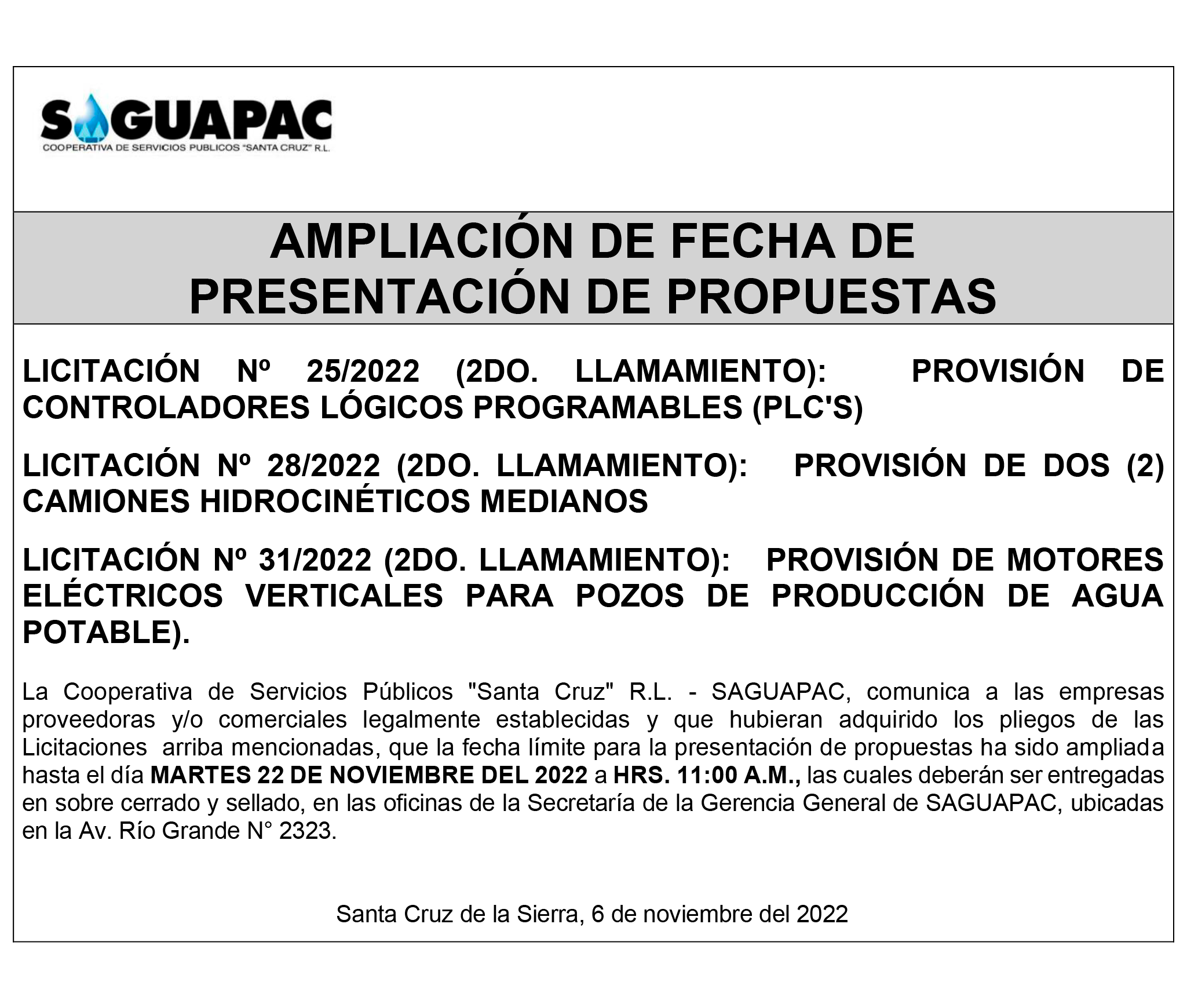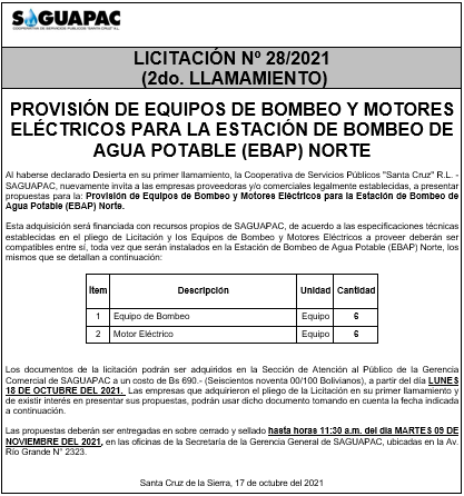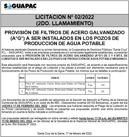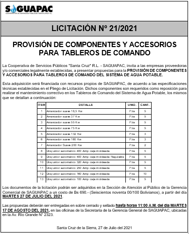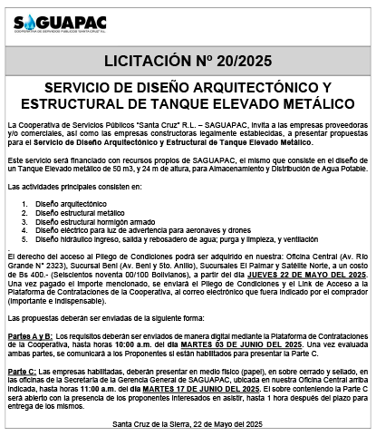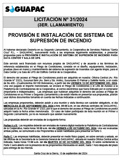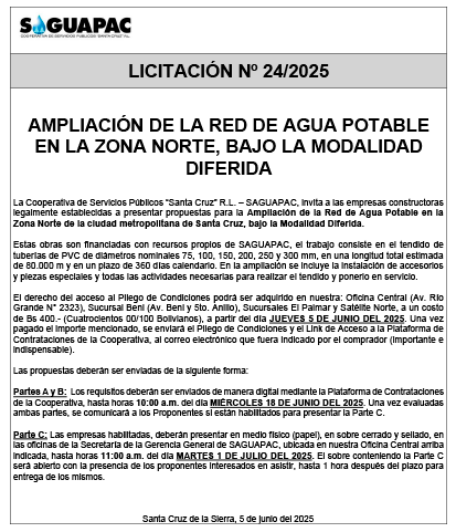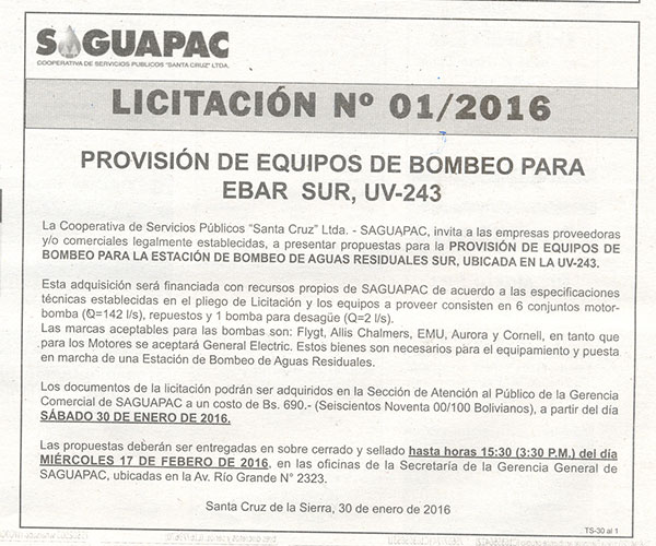 Los procesos de Contratación no son la excepción, ya que se encuentran debidamente normados bajo un Reglamento de Contratación de Obras, Bienes y Servicios, que contempla la modalidad y la normativa de las Licitaciones Públicas, que es un proceso de participación abierto para todo público así como también los Actos de Apertura de Propuestas que se realizan en presencia de los proponentes y representantes de las Cámaras de Industria y Comercio (CAINCO) en casos de bienes o servicios y de la Cámara de la Construcción de Santa Cruz en casos de obras.