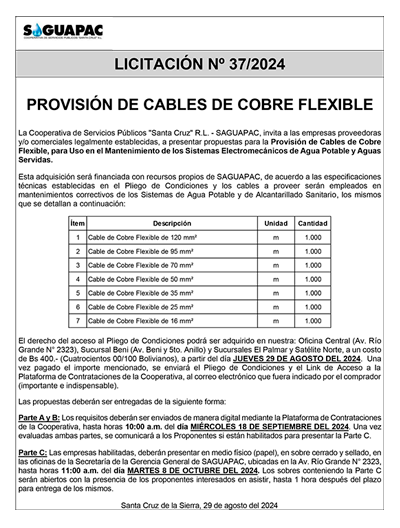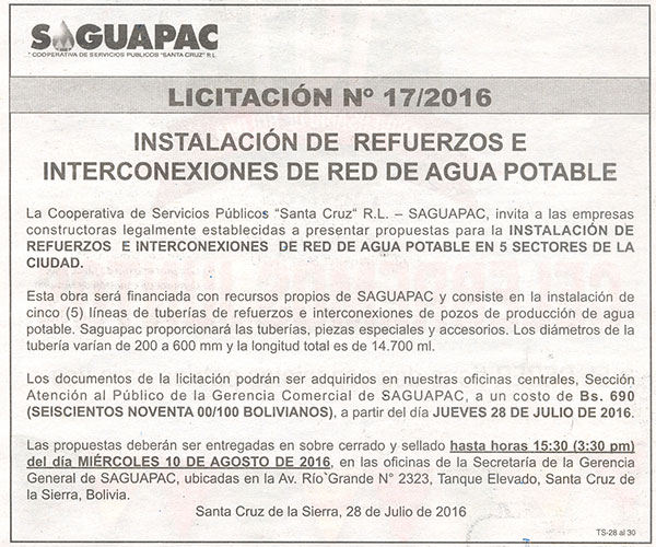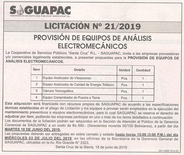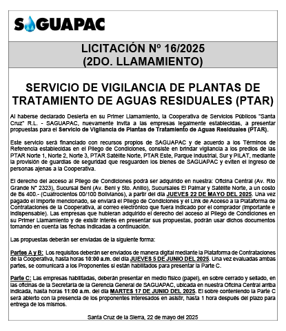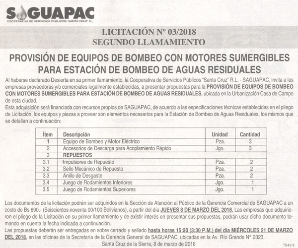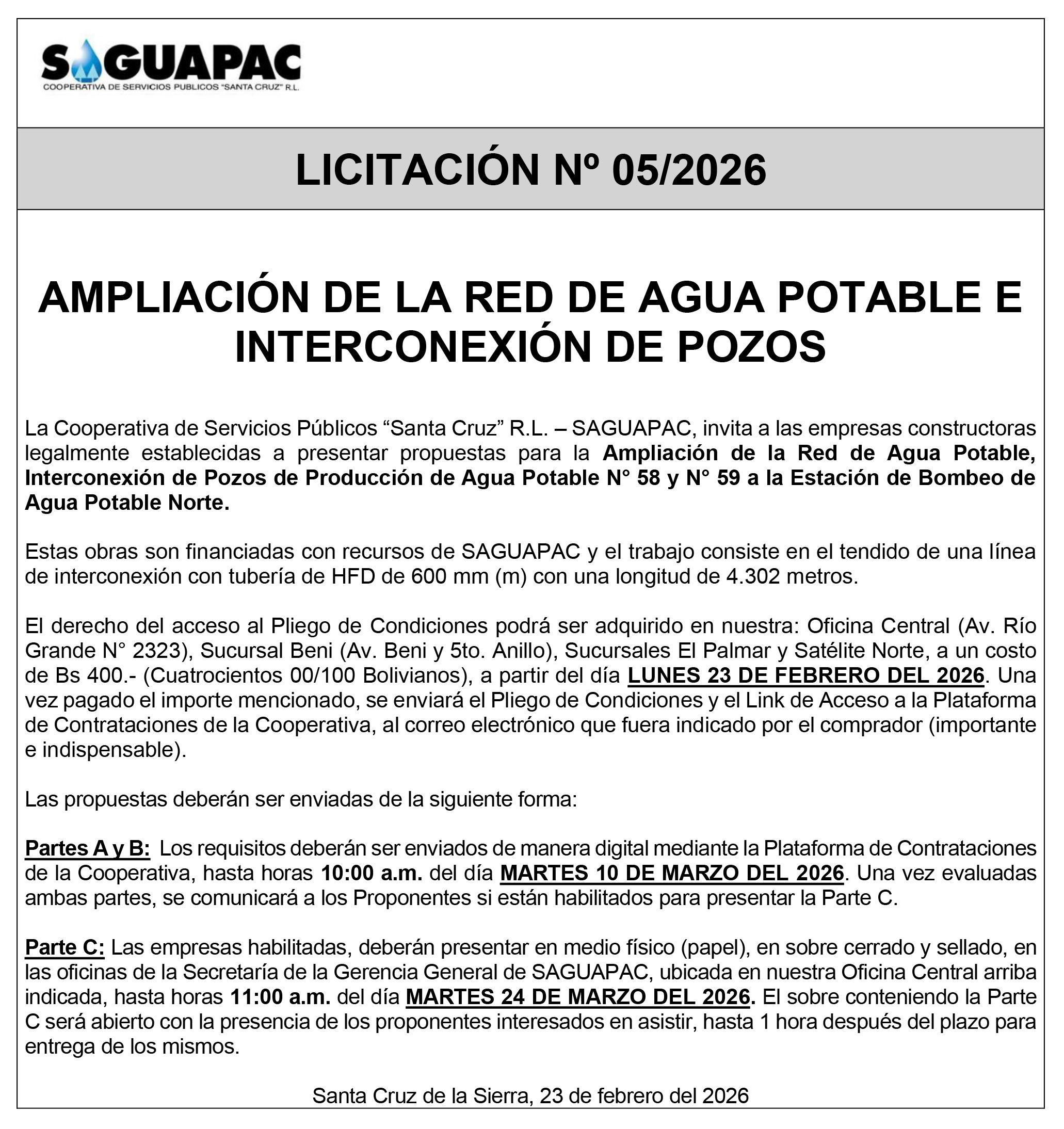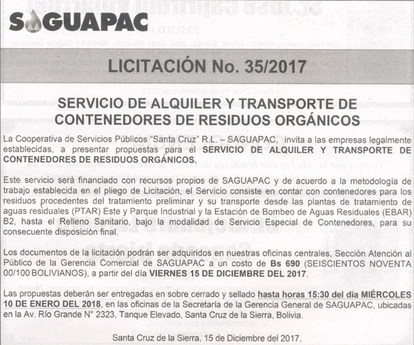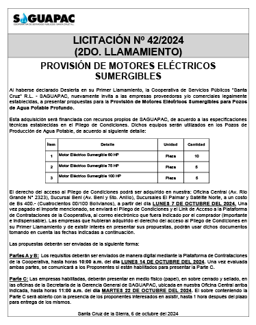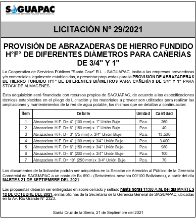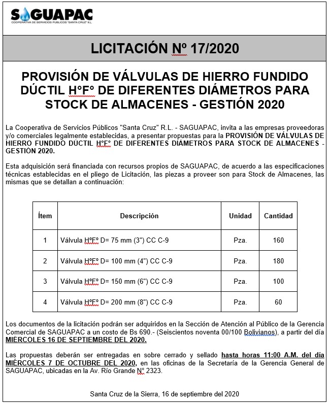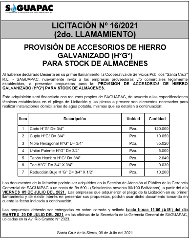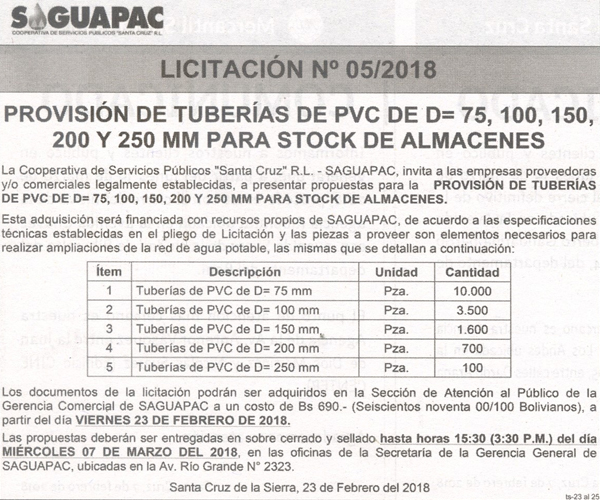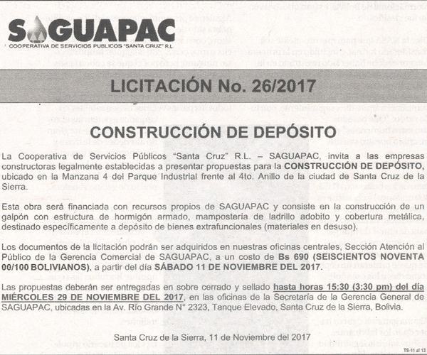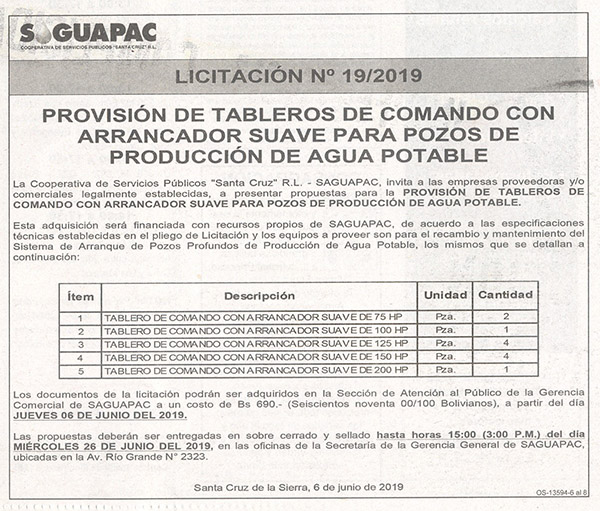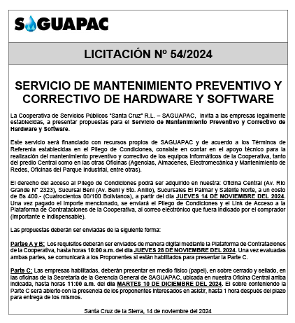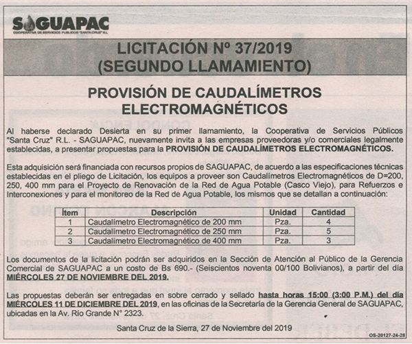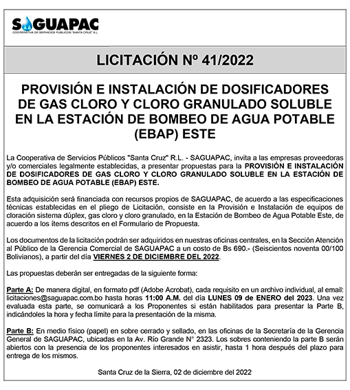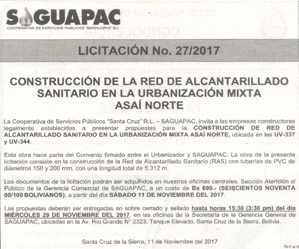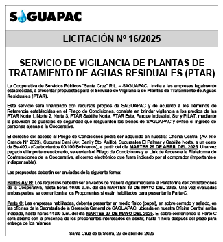 Los procesos de Contratación no son la excepción, ya que se encuentran debidamente normados bajo un Reglamento de Contratación de Obras, Bienes y Servicios, que contempla la modalidad y la normativa de las Licitaciones Públicas, que es un proceso de participación abierto para todo público así como también los Actos de Apertura de Propuestas que se realizan en presencia de los proponentes y representantes de las Cámaras de Industria y Comercio (CAINCO) en casos de bienes o servicios y de la Cámara de la Construcción de Santa Cruz en casos de obras.