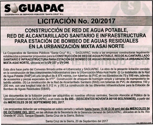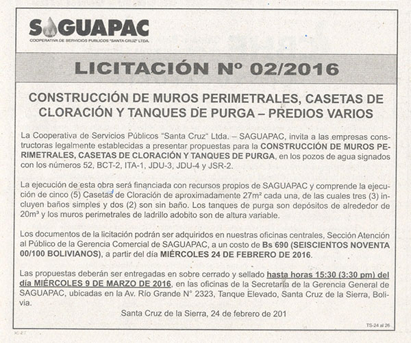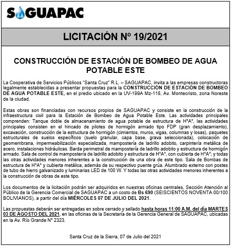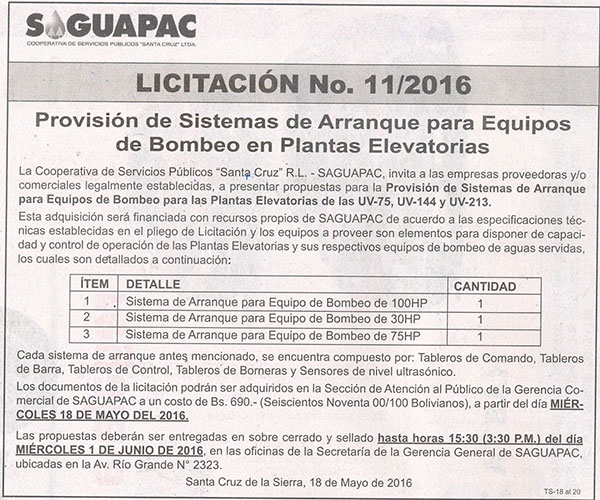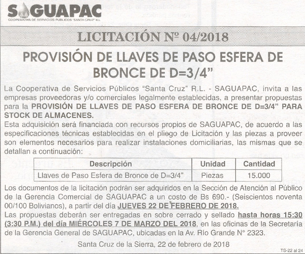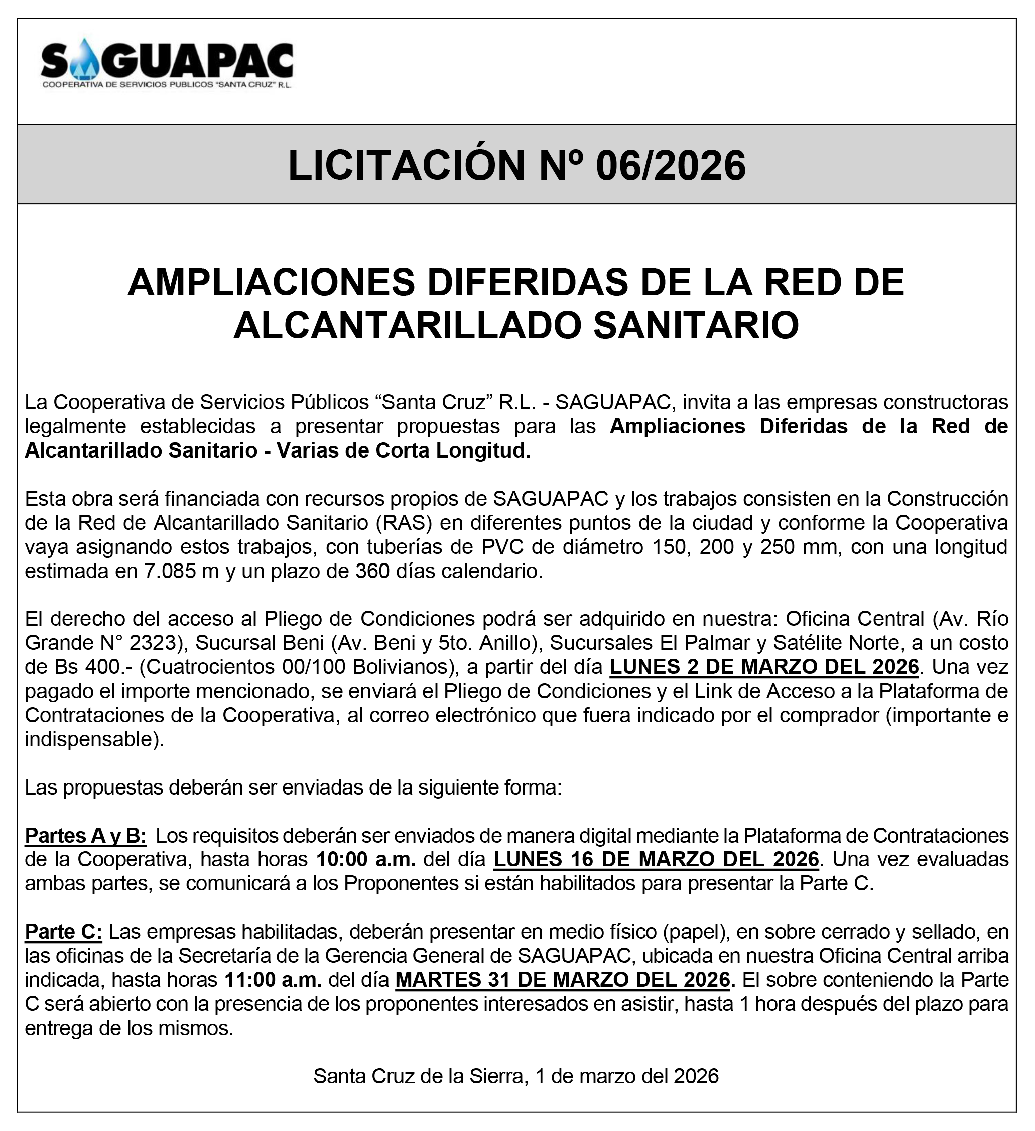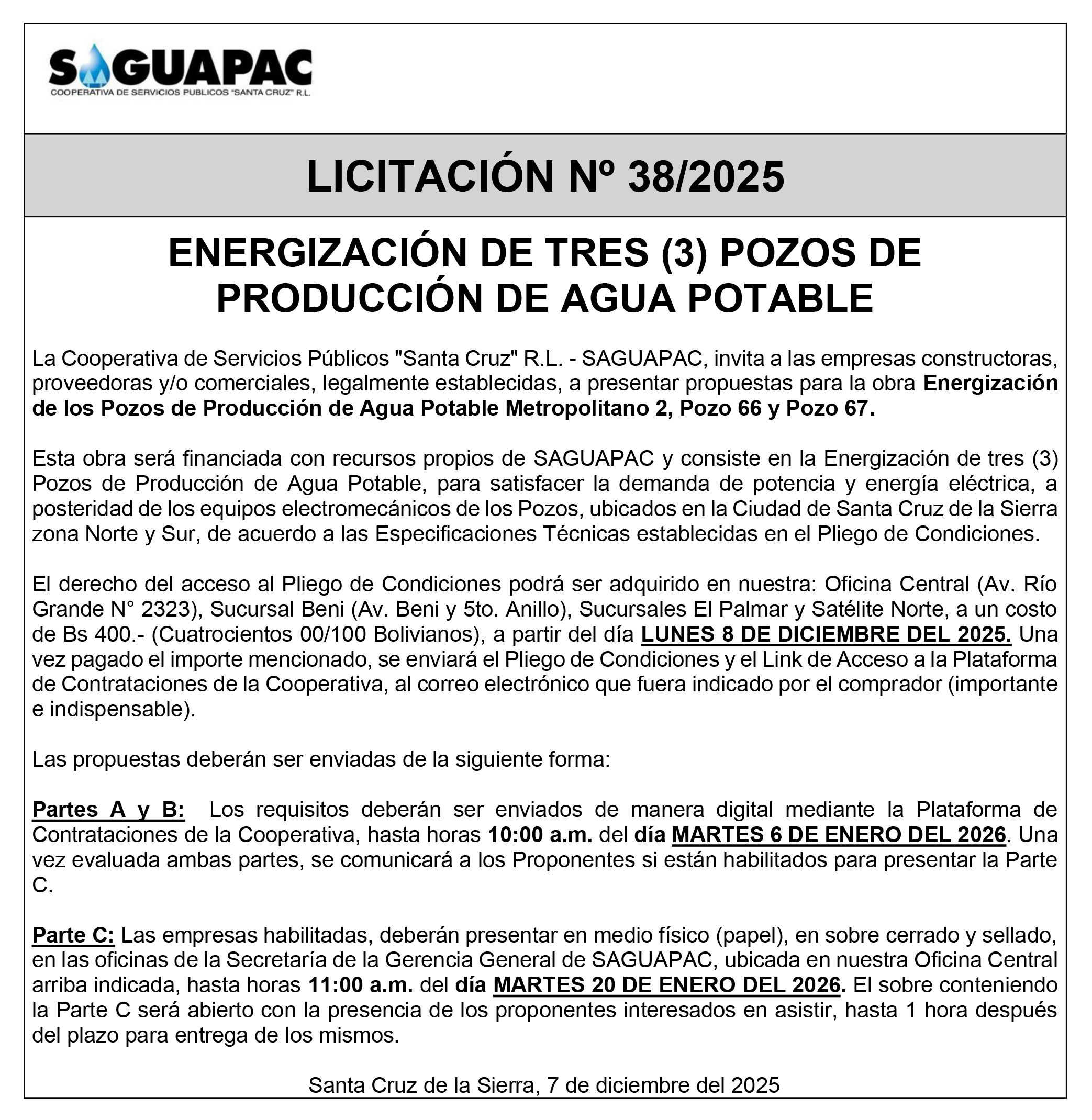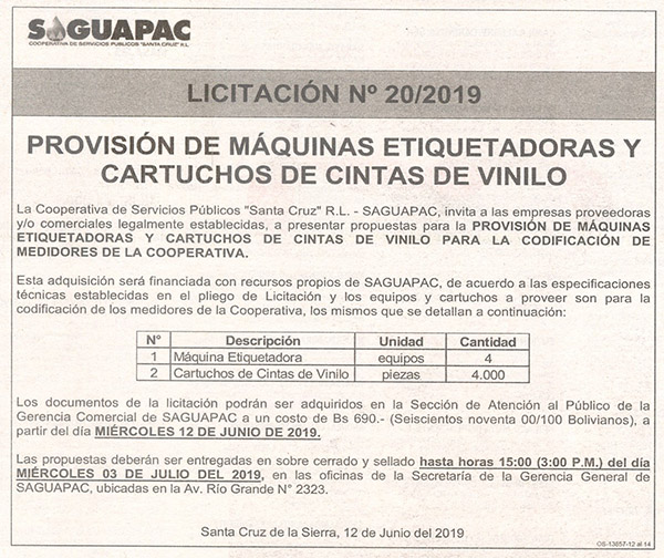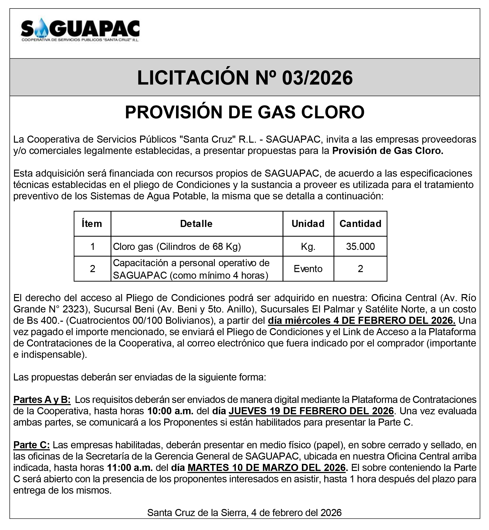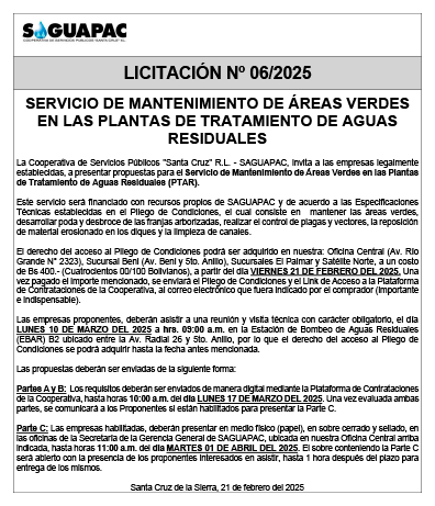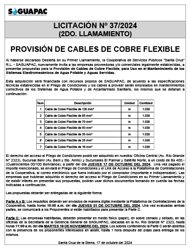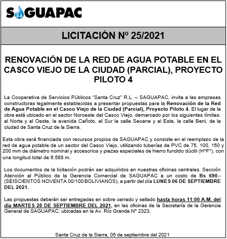 Los procesos de Contratación no son la excepción, ya que se encuentran debidamente normados bajo un Reglamento de Contratación de Obras, Bienes y Servicios, que contempla la modalidad y la normativa de las Licitaciones Públicas, que es un proceso de participación abierto para todo público así como también los Actos de Apertura de Propuestas que se realizan en presencia de los proponentes y representantes de las Cámaras de Industria y Comercio (CAINCO) en casos de bienes o servicios y de la Cámara de la Construcción de Santa Cruz en casos de obras.