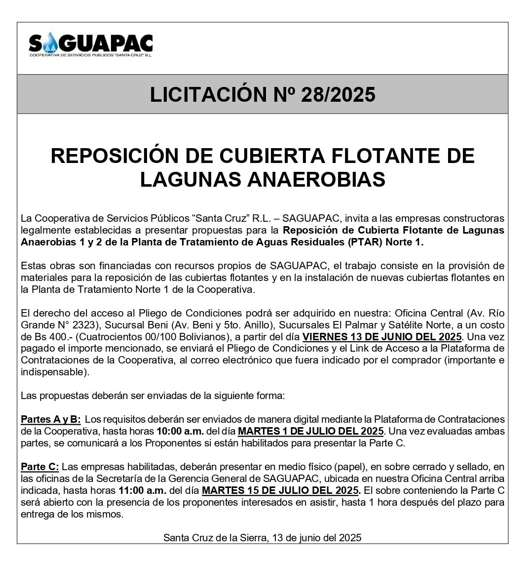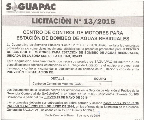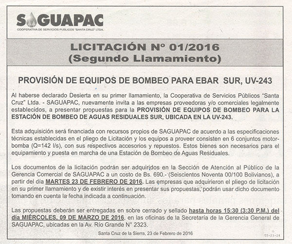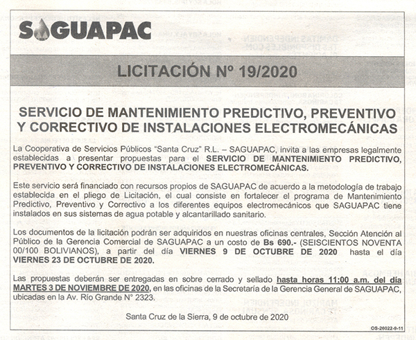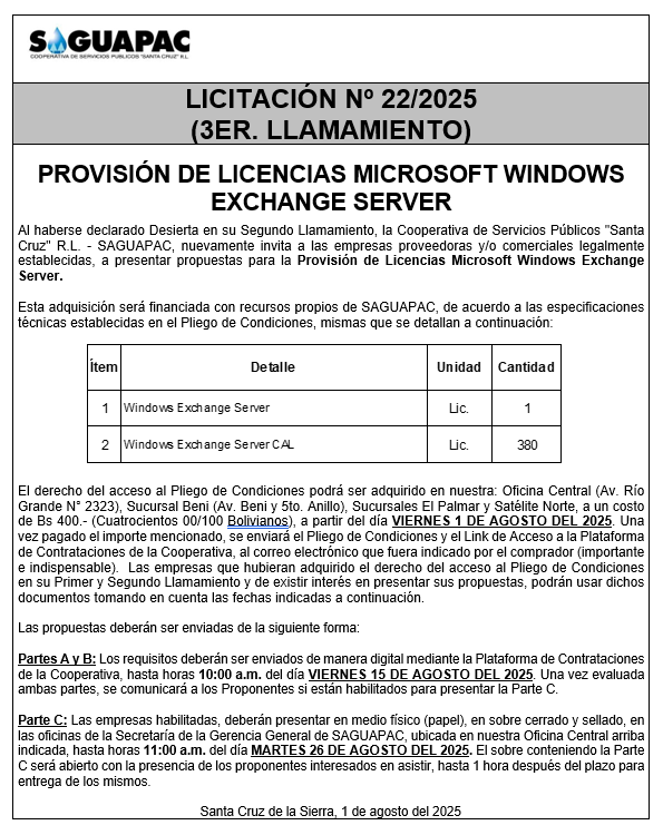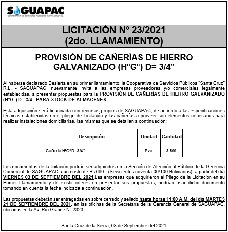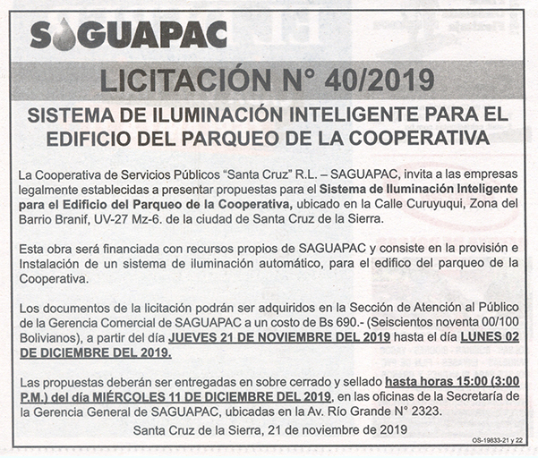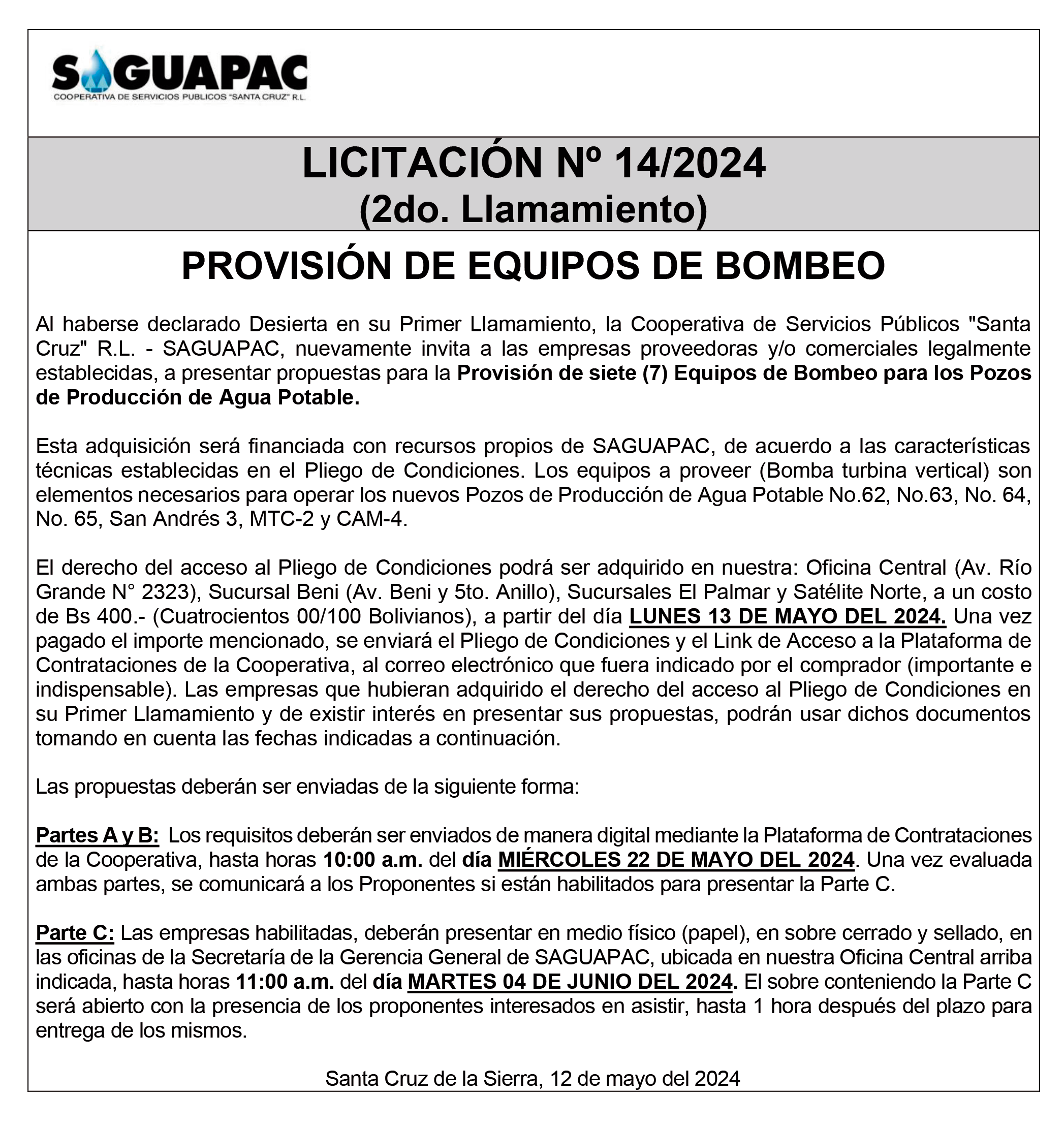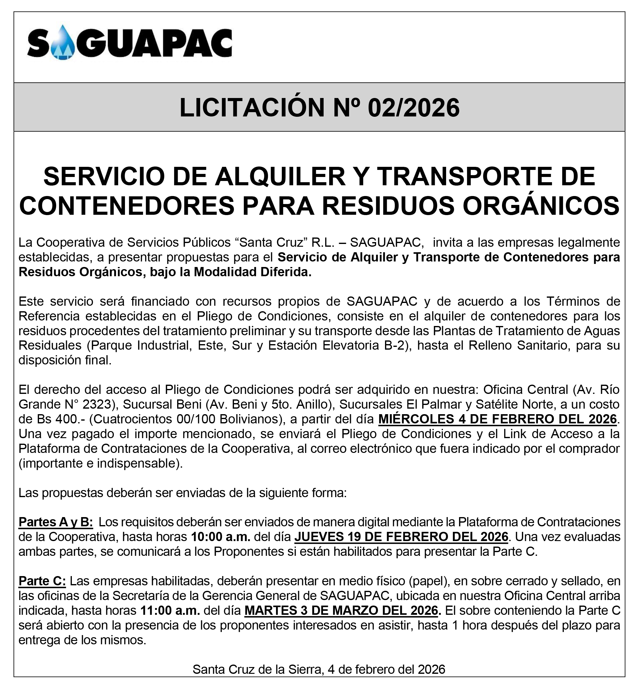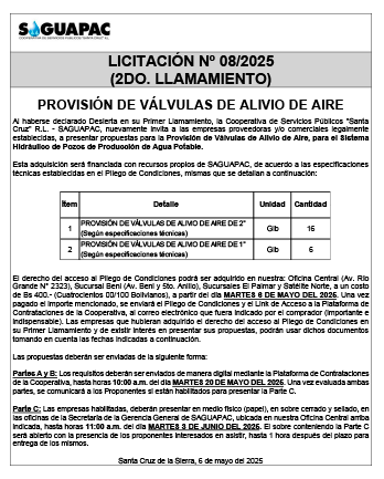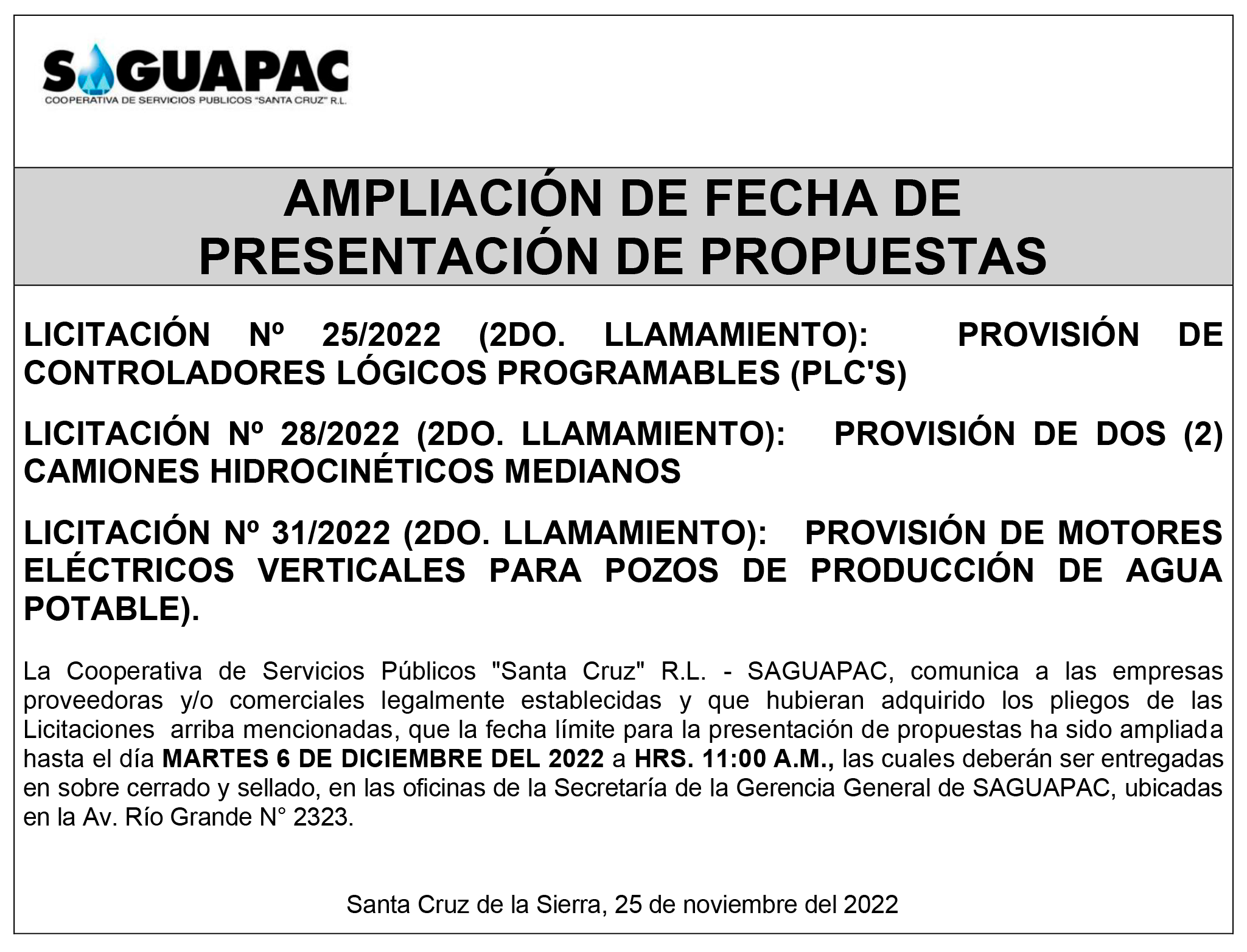 Los procesos de Contratación no son la excepción, ya que se encuentran debidamente normados bajo un Reglamento de Contratación de Obras, Bienes y Servicios, que contempla la modalidad y la normativa de las Licitaciones Públicas, que es un proceso de participación abierto para todo público así como también los Actos de Apertura de Propuestas que se realizan en presencia de los proponentes y representantes de las Cámaras de Industria y Comercio (CAINCO) en casos de bienes o servicios y de la Cámara de la Construcción de Santa Cruz en casos de obras.