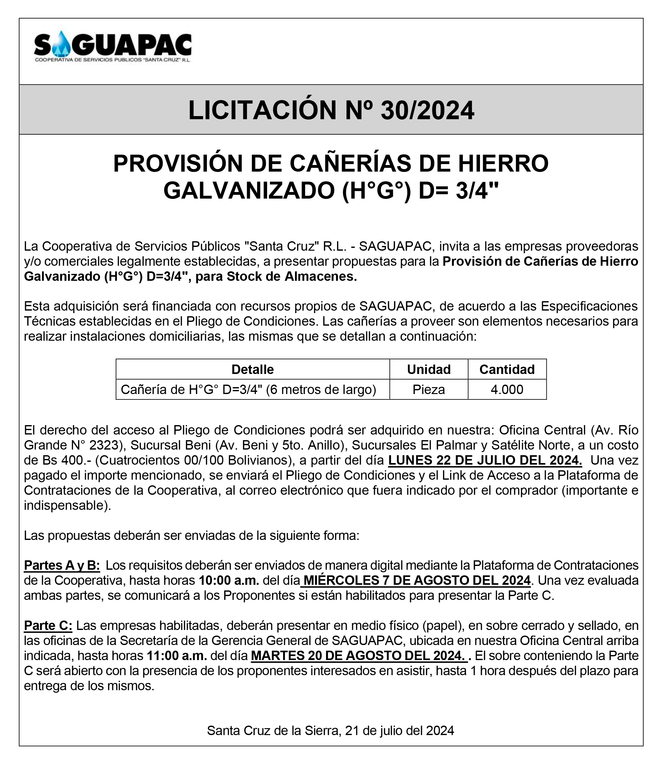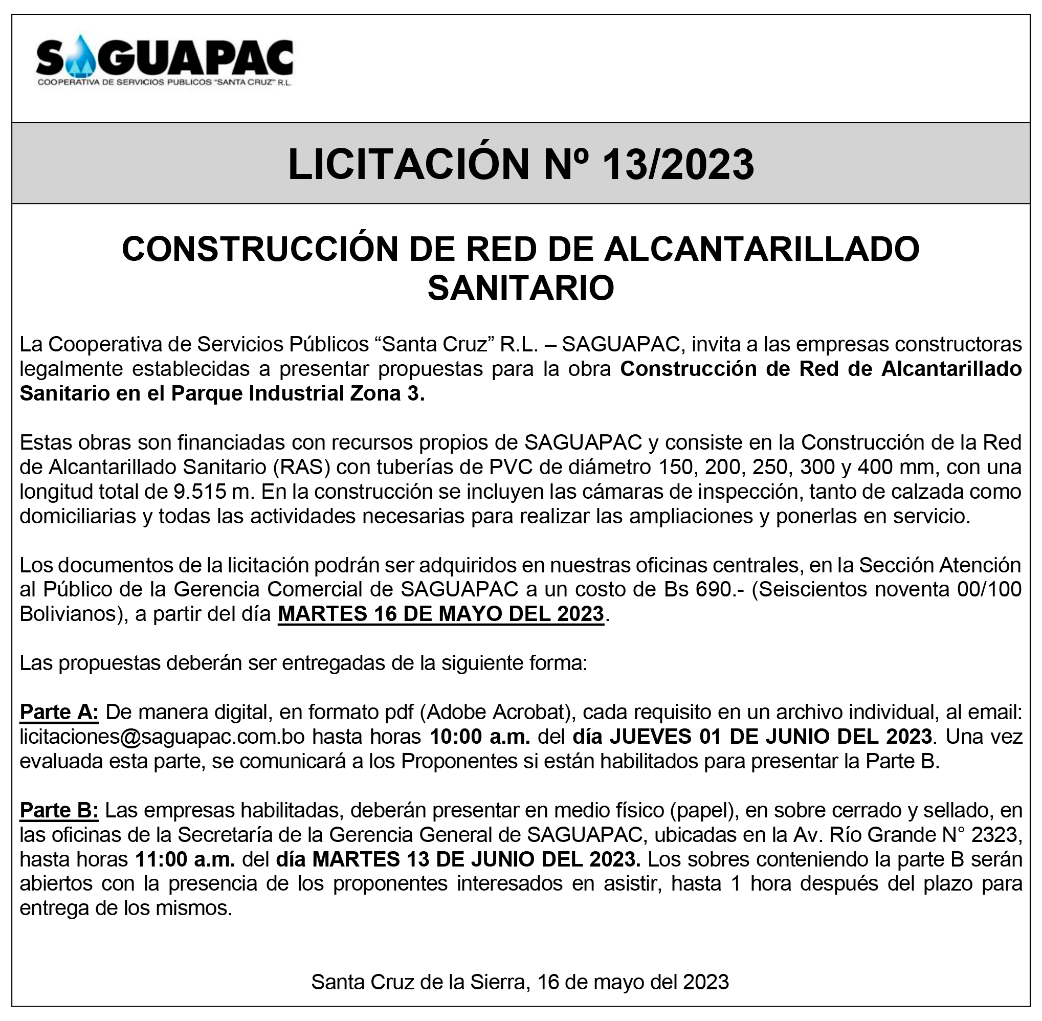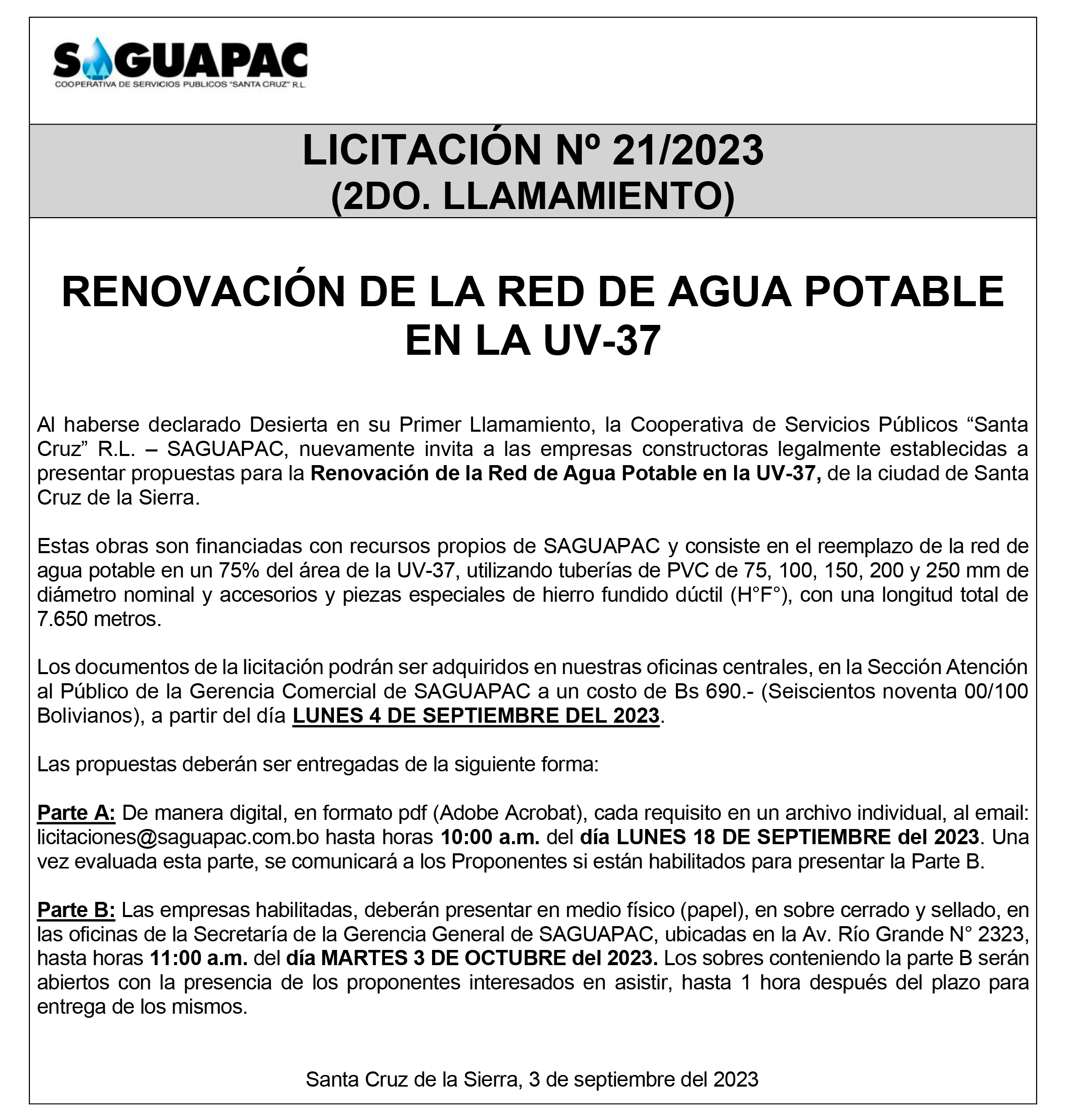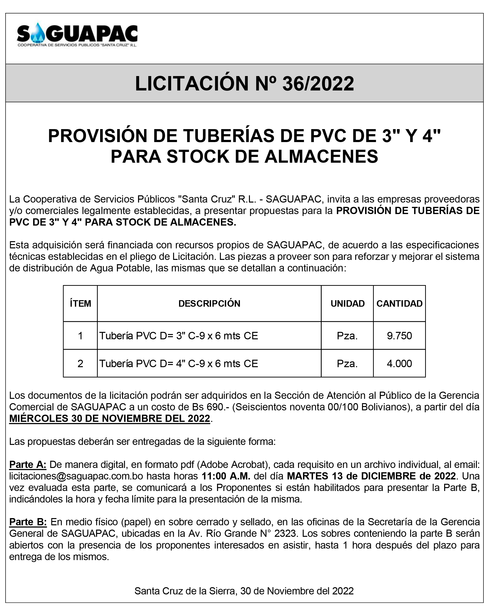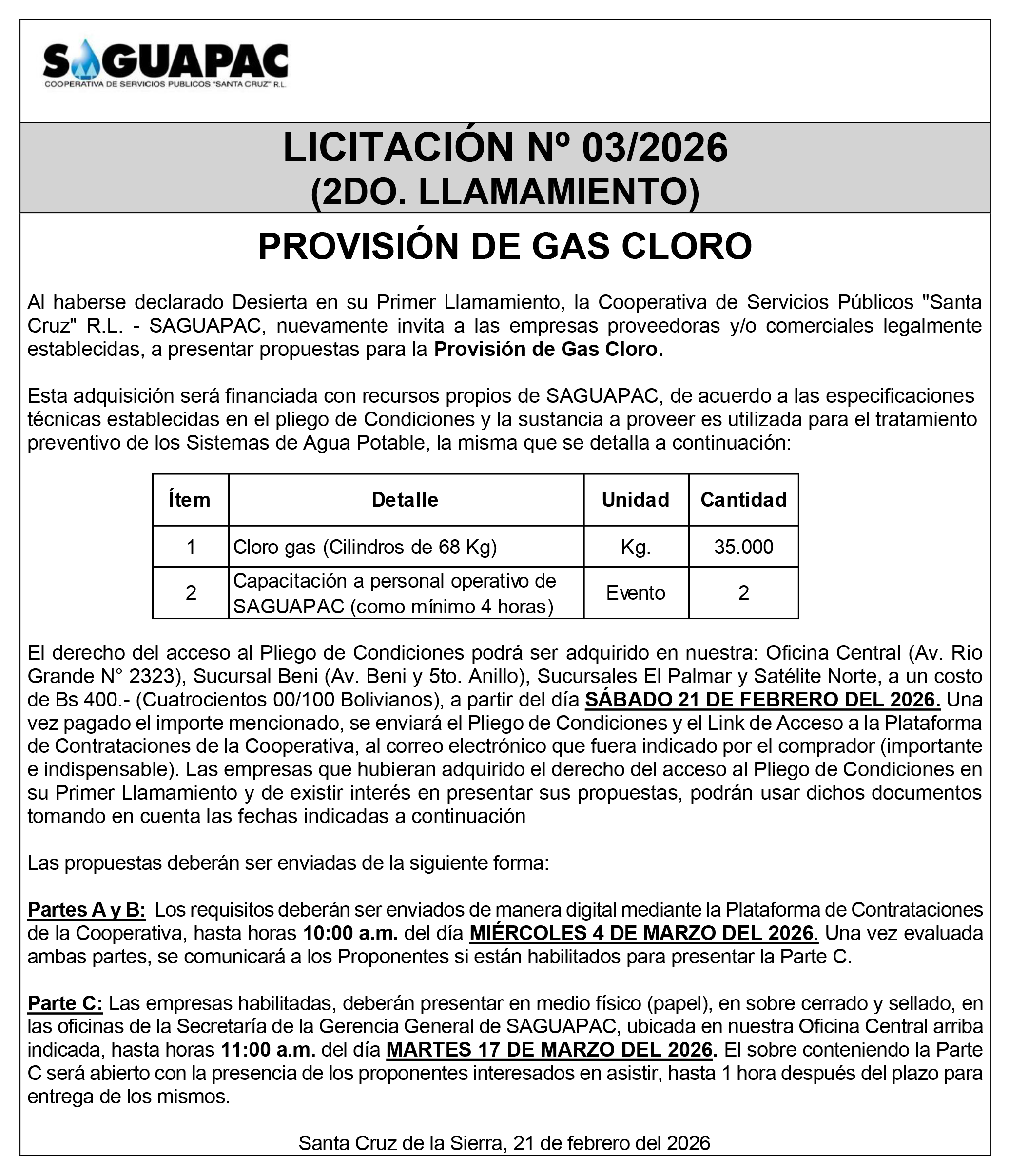 Los procesos de Contratación no son la excepción, ya que se encuentran debidamente normados bajo un Reglamento de Contratación de Obras, Bienes y Servicios, que contempla la modalidad y la normativa de las Licitaciones Públicas, que es un proceso de participación abierto para todo público así como también los Actos de Apertura de Propuestas que se realizan en presencia de los proponentes y representantes de las Cámaras de Industria y Comercio (CAINCO) en casos de bienes o servicios y de la Cámara de la Construcción de Santa Cruz en casos de obras.
