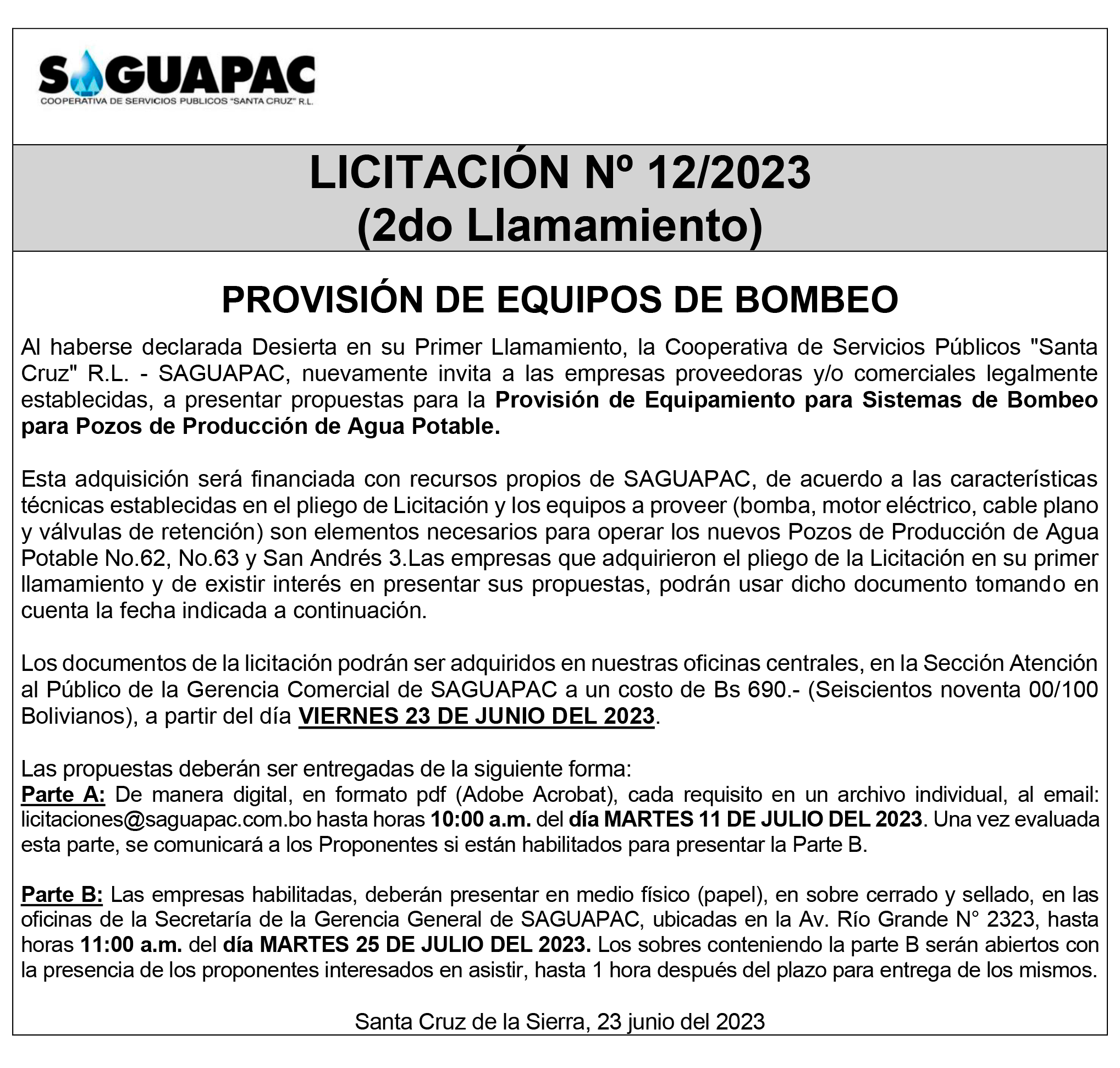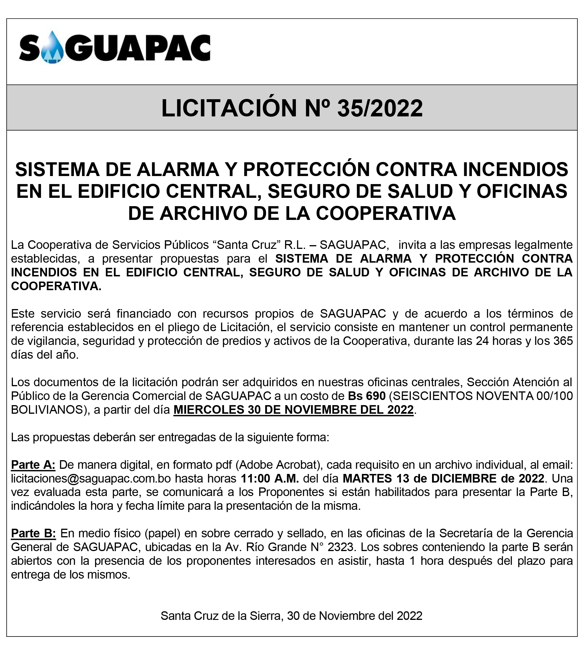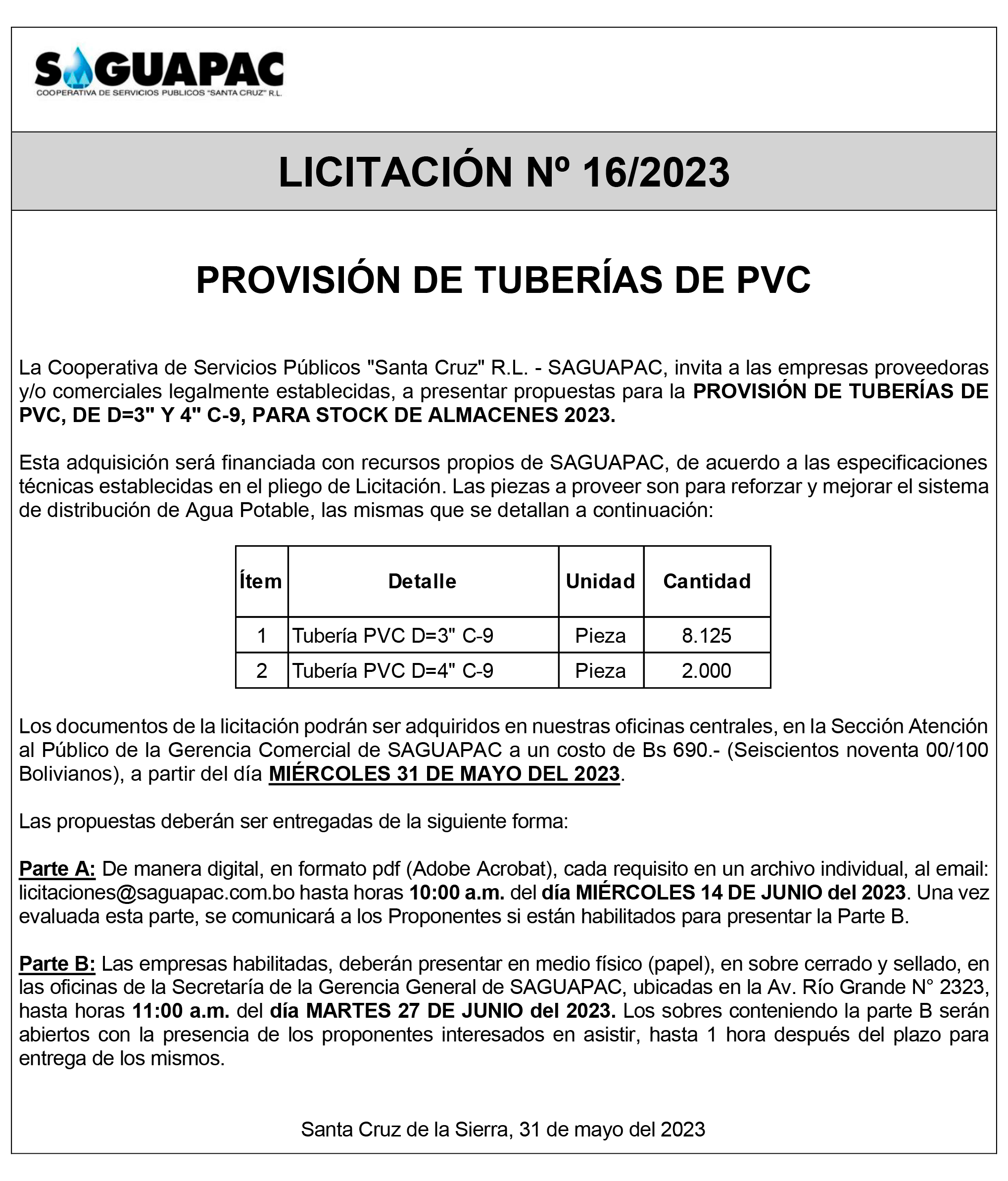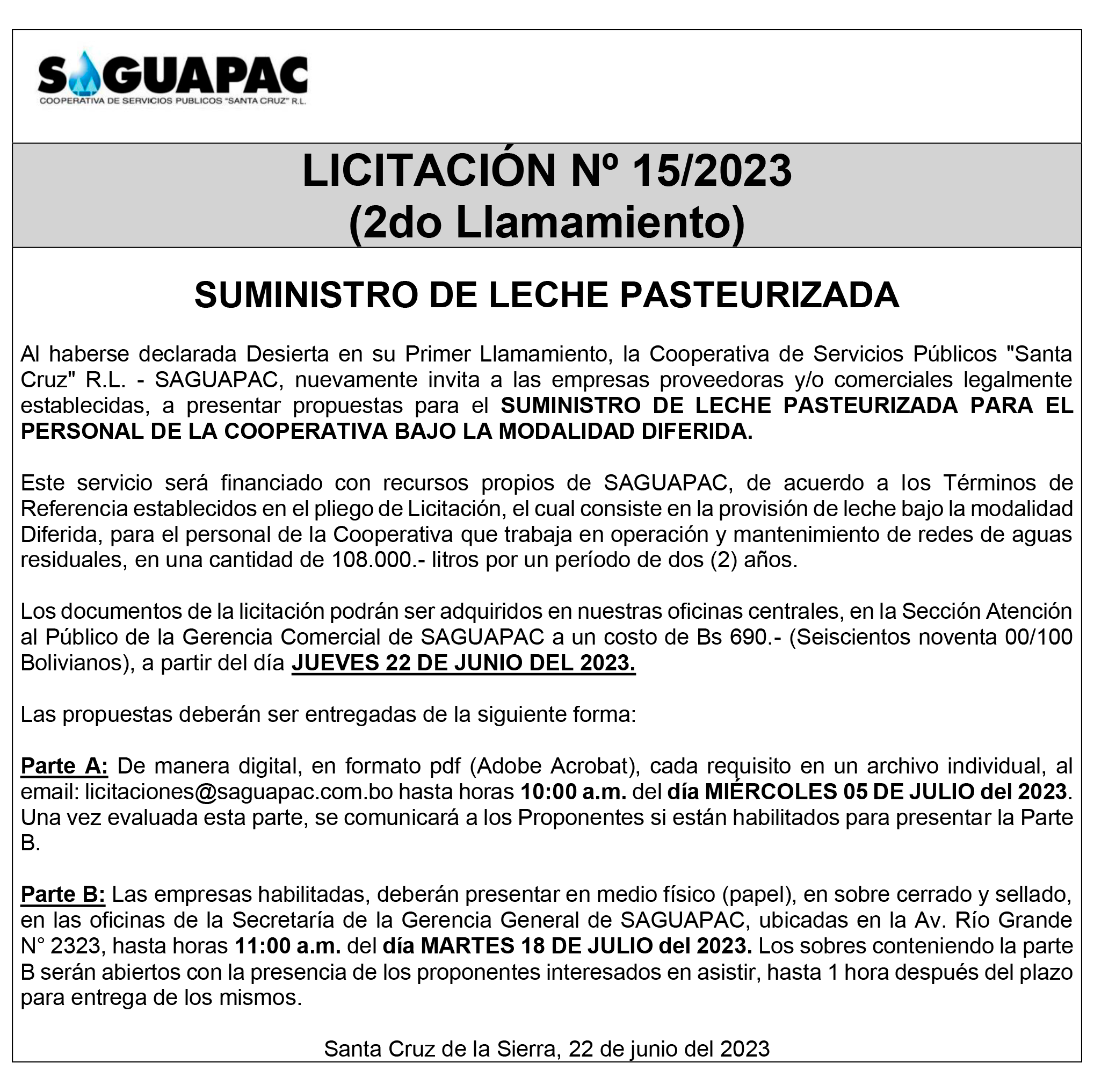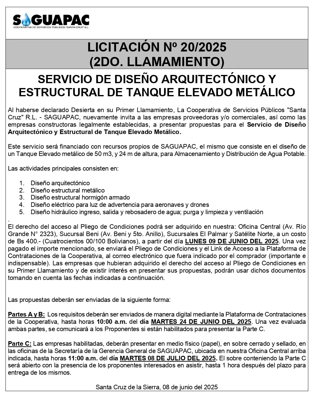 Los procesos de Contratación no son la excepción, ya que se encuentran debidamente normados bajo un Reglamento de Contratación de Obras, Bienes y Servicios, que contempla la modalidad y la normativa de las Licitaciones Públicas, que es un proceso de participación abierto para todo público así como también los Actos de Apertura de Propuestas que se realizan en presencia de los proponentes y representantes de las Cámaras de Industria y Comercio (CAINCO) en casos de bienes o servicios y de la Cámara de la Construcción de Santa Cruz en casos de obras.