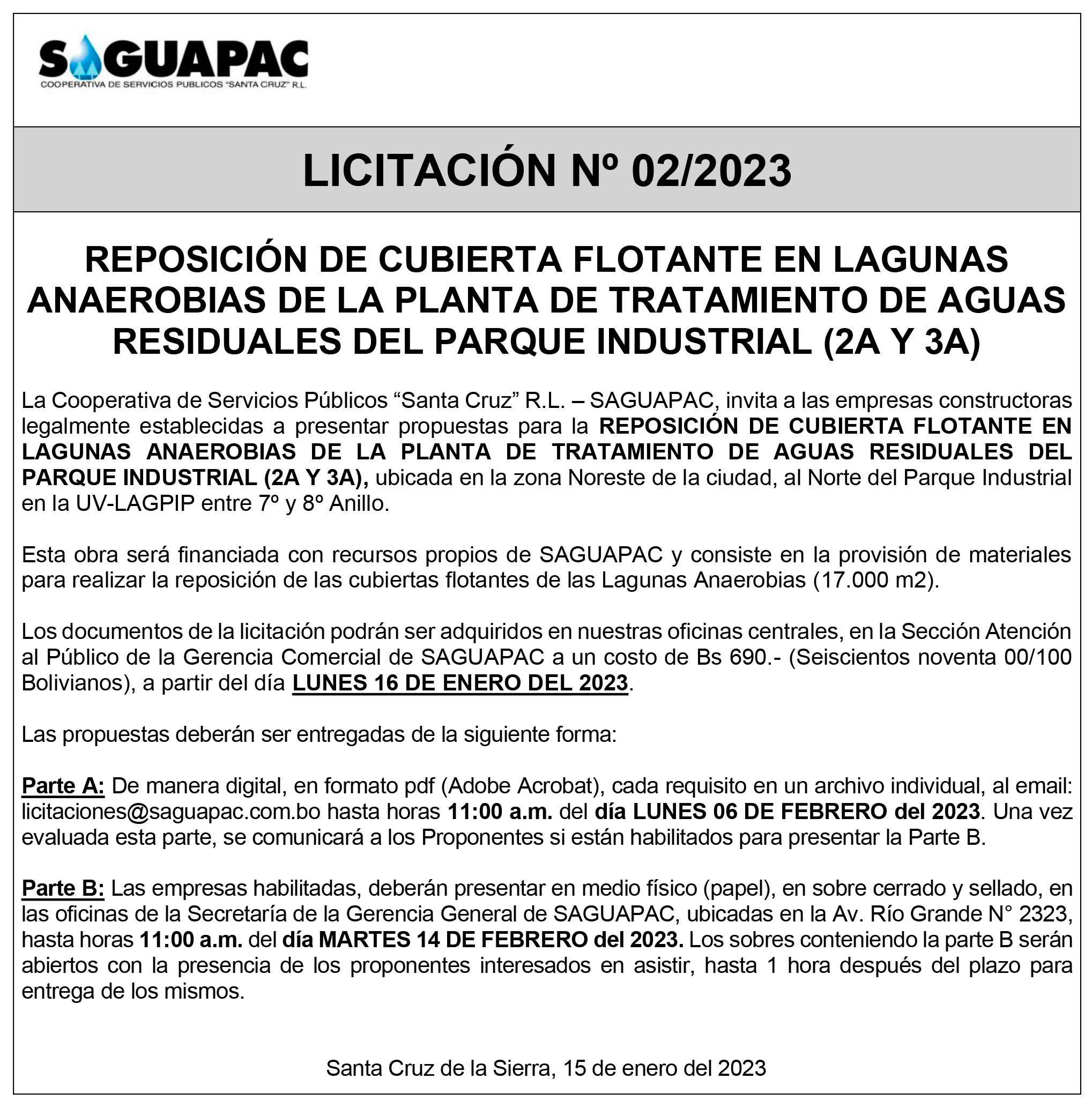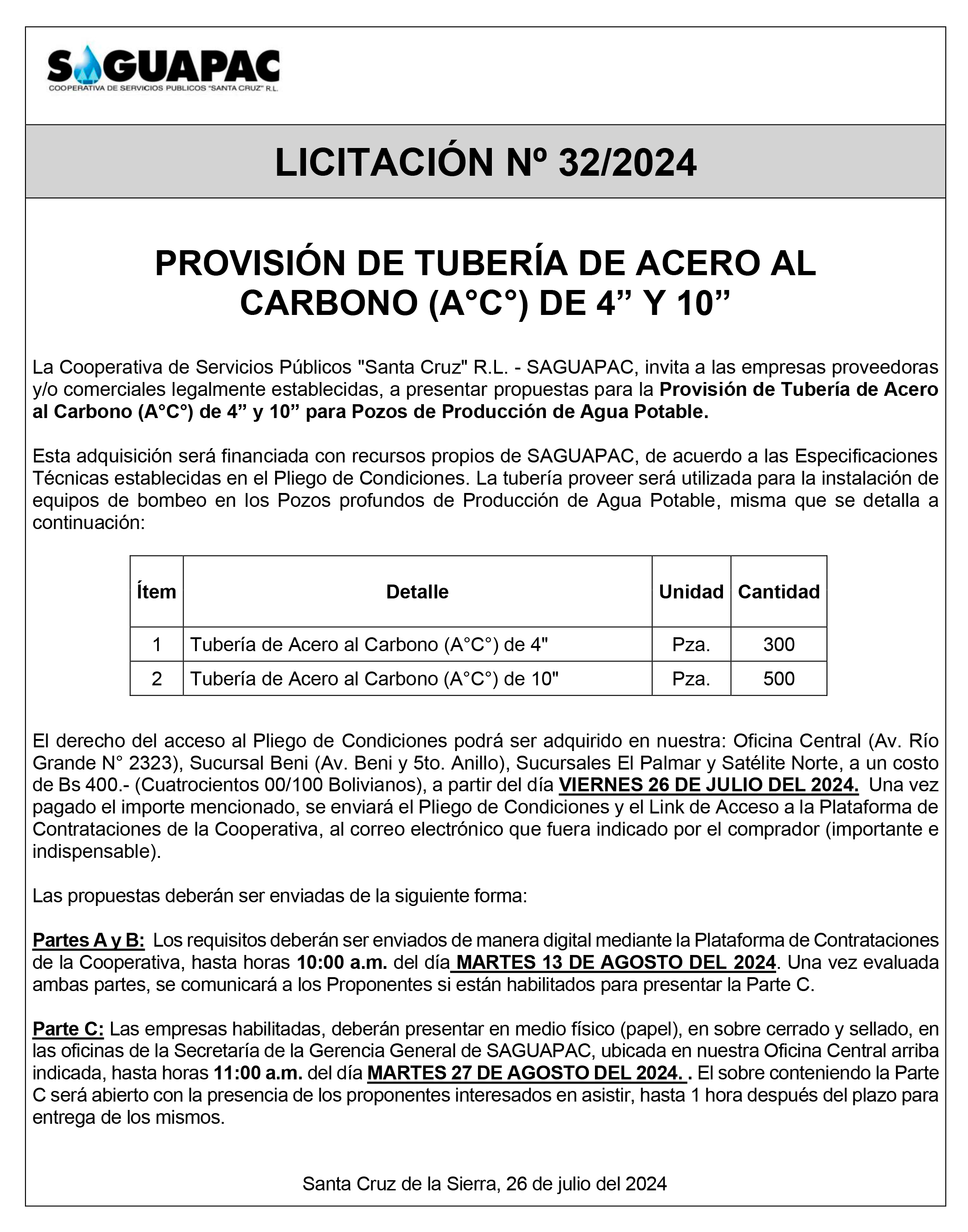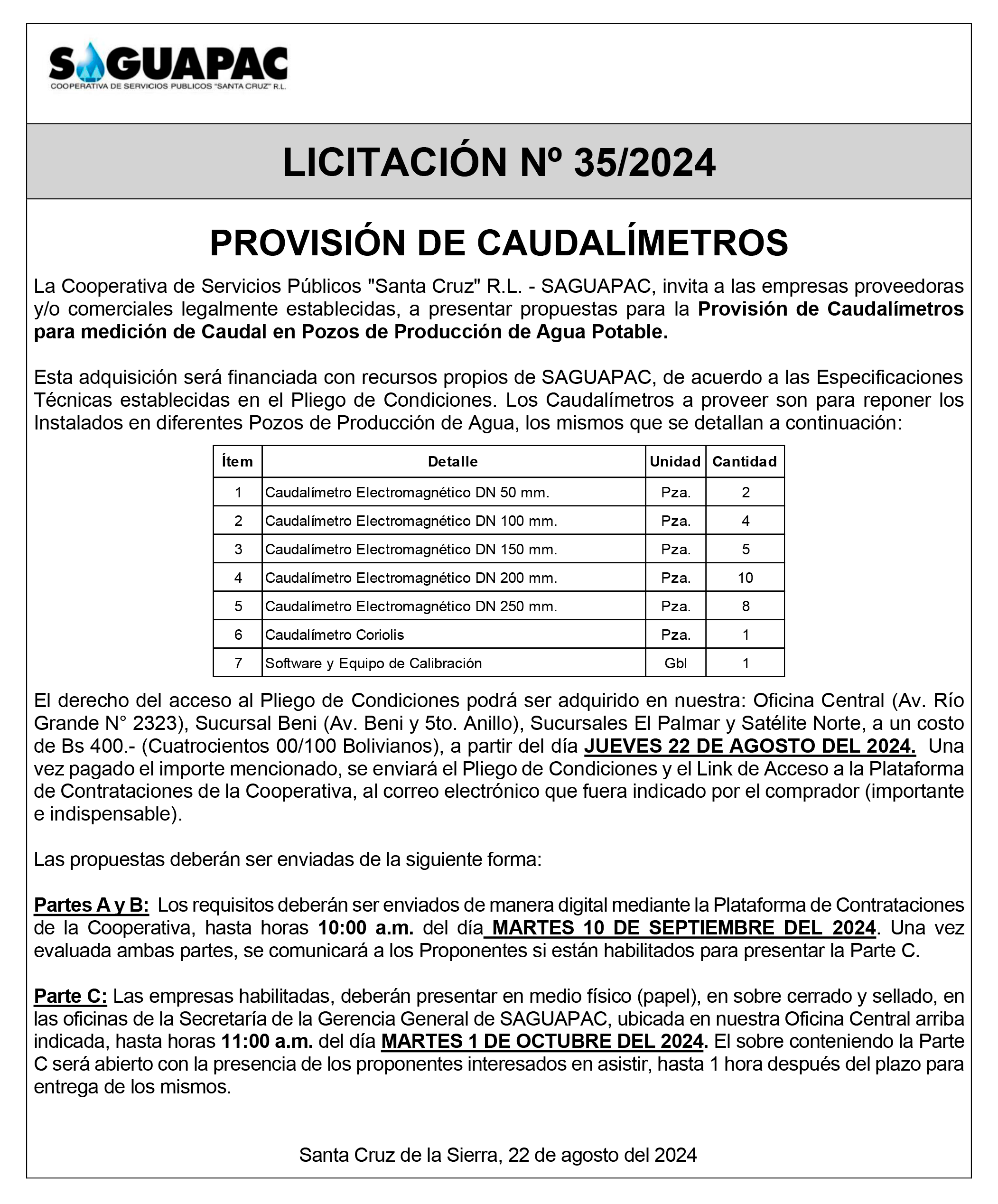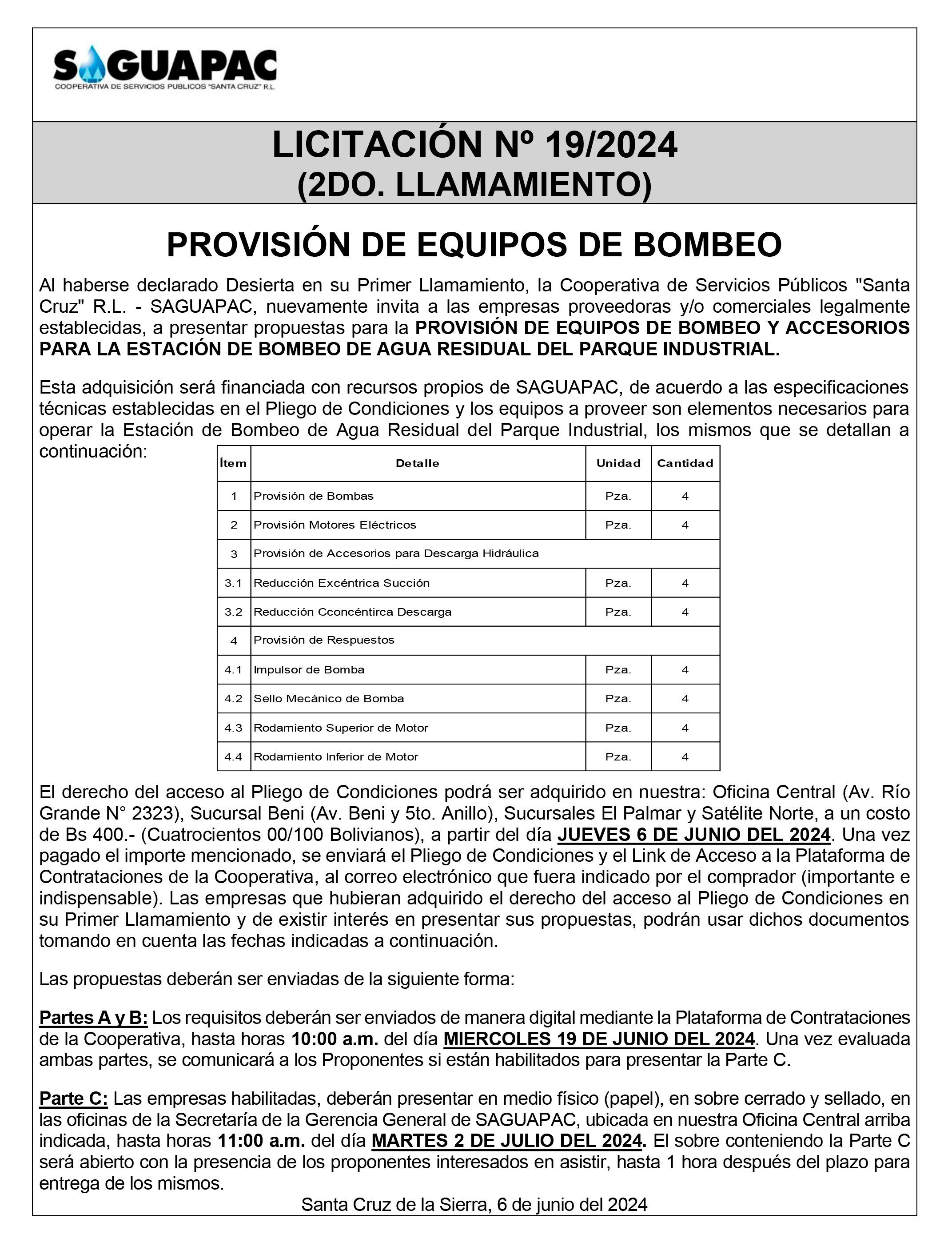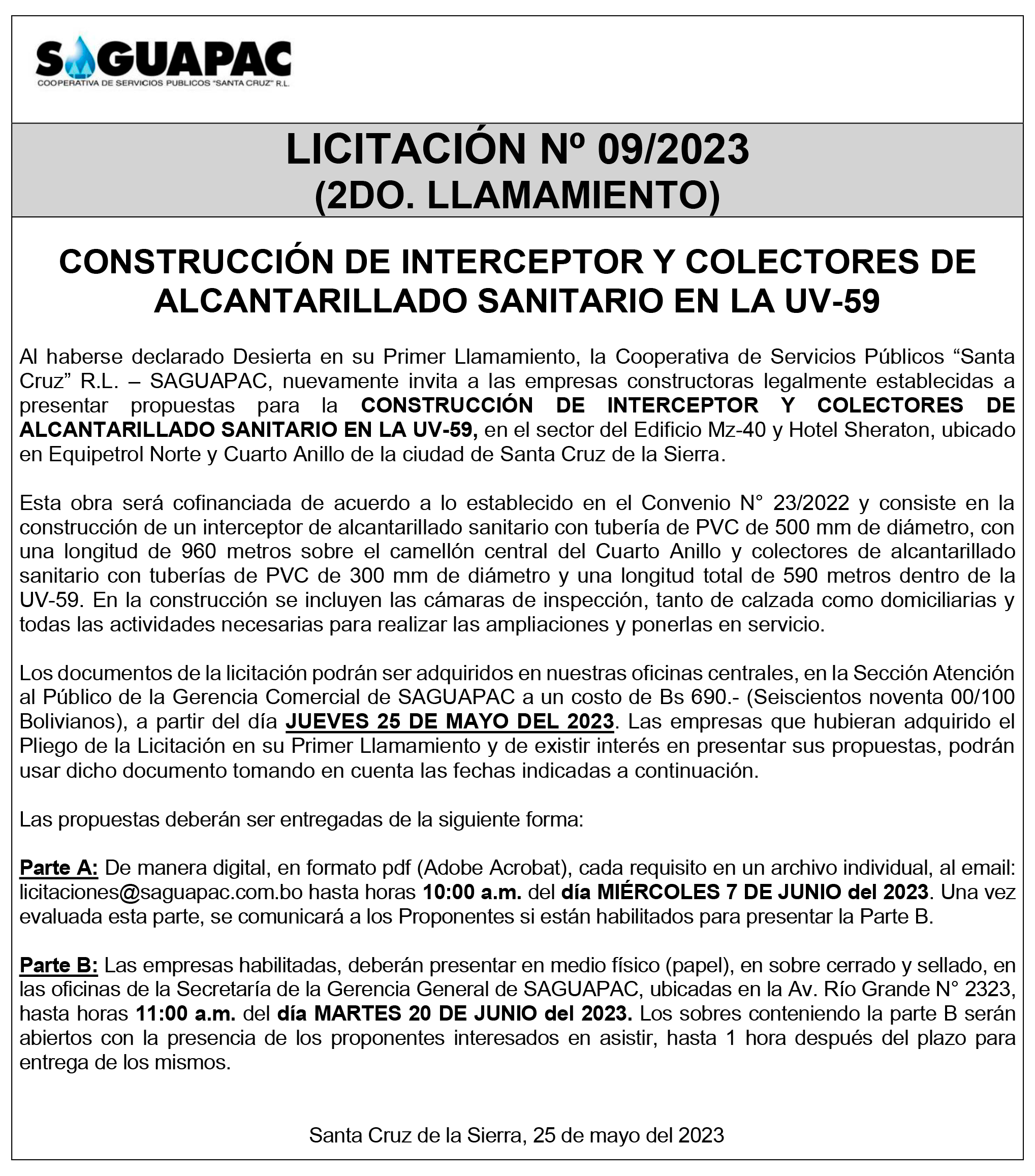 Los procesos de Contratación no son la excepción, ya que se encuentran debidamente normados bajo un Reglamento de Contratación de Obras, Bienes y Servicios, que contempla la modalidad y la normativa de las Licitaciones Públicas, que es un proceso de participación abierto para todo público así como también los Actos de Apertura de Propuestas que se realizan en presencia de los proponentes y representantes de las Cámaras de Industria y Comercio (CAINCO) en casos de bienes o servicios y de la Cámara de la Construcción de Santa Cruz en casos de obras.