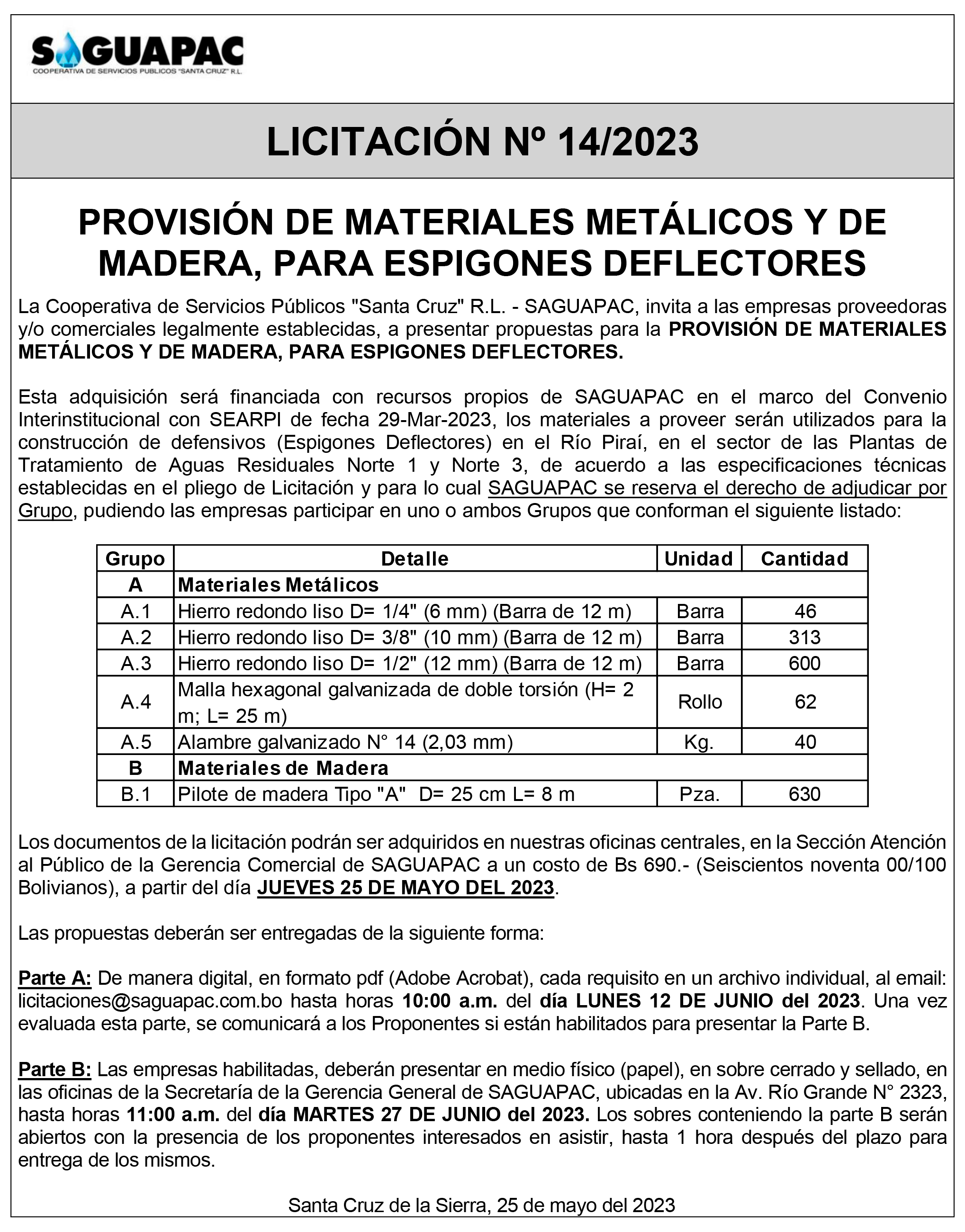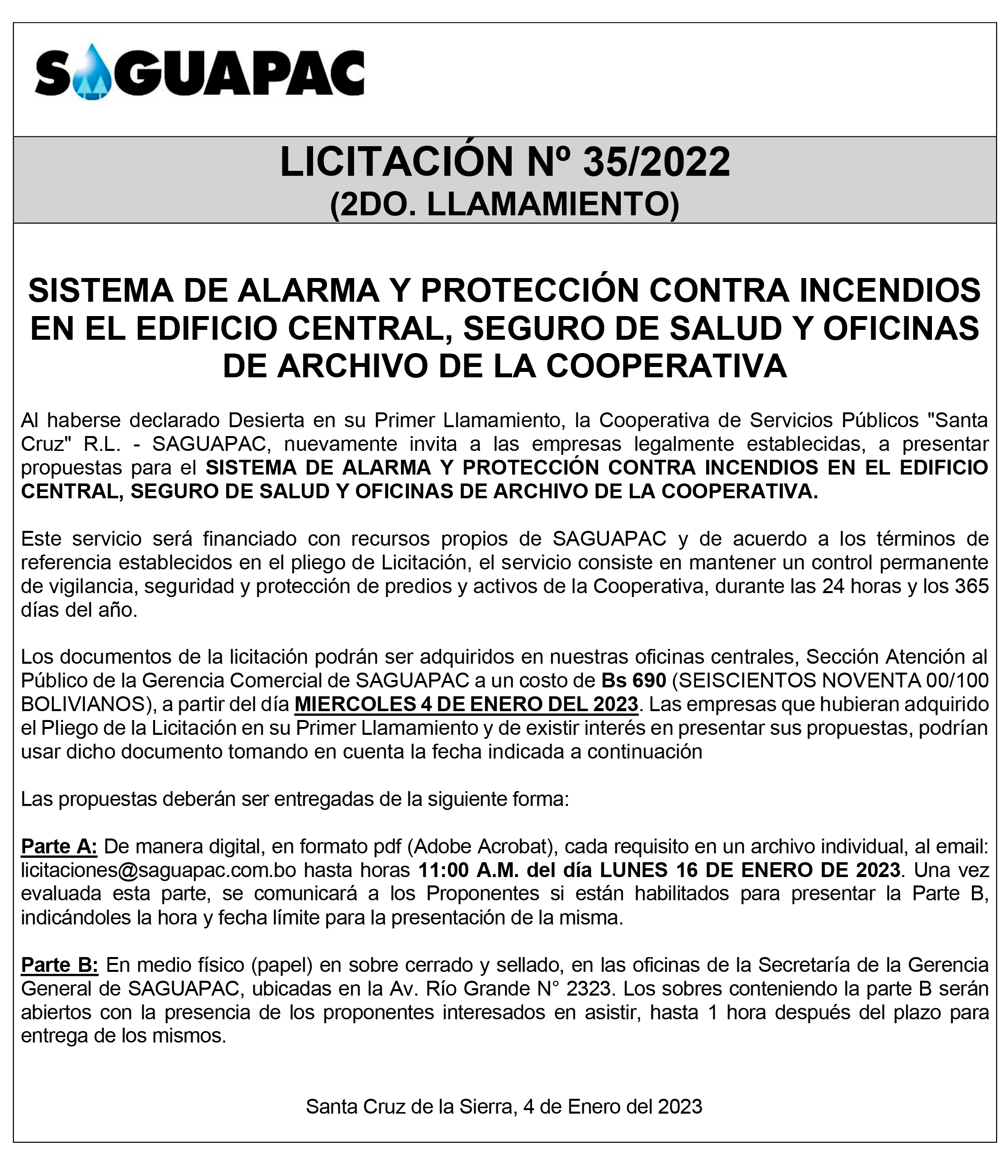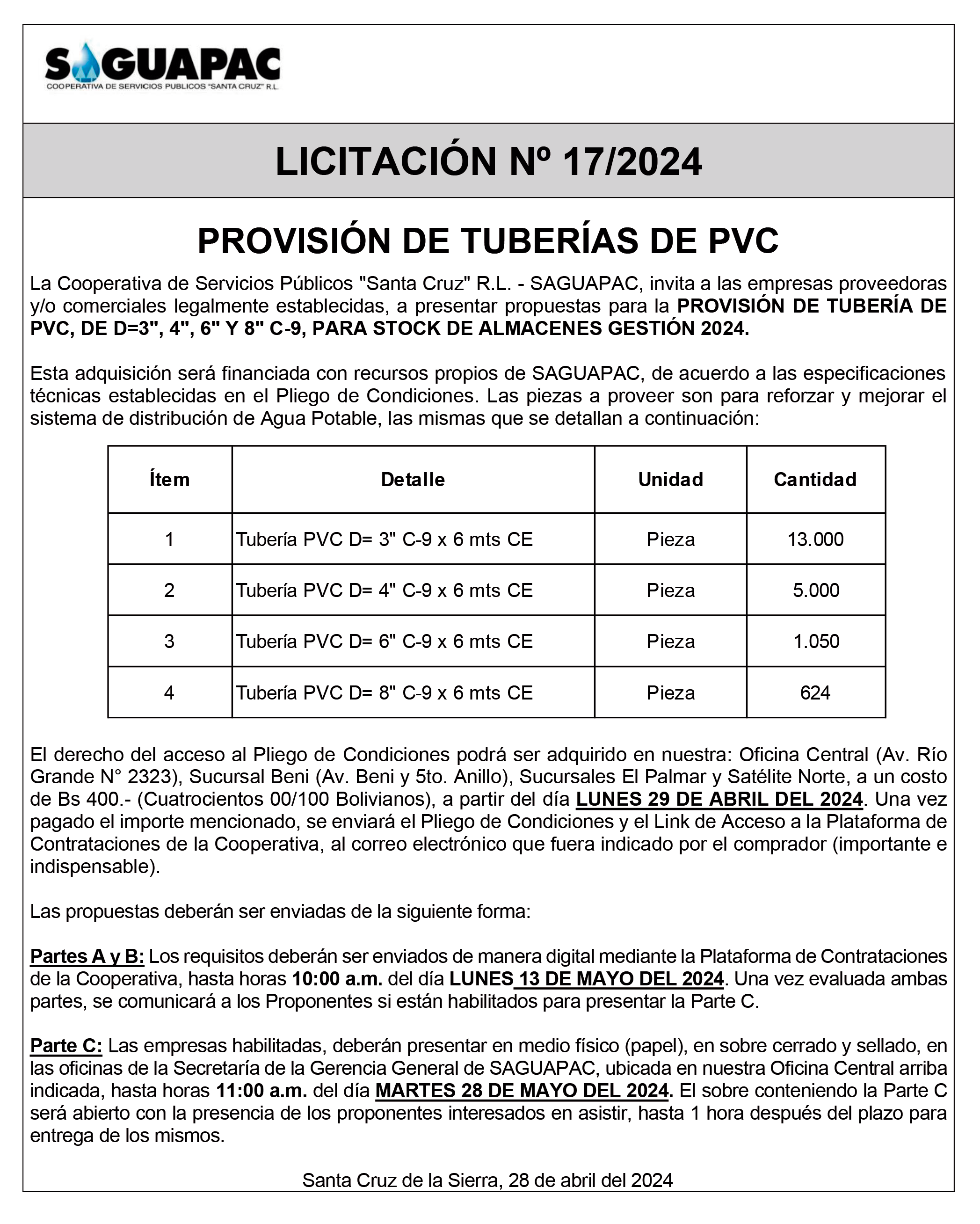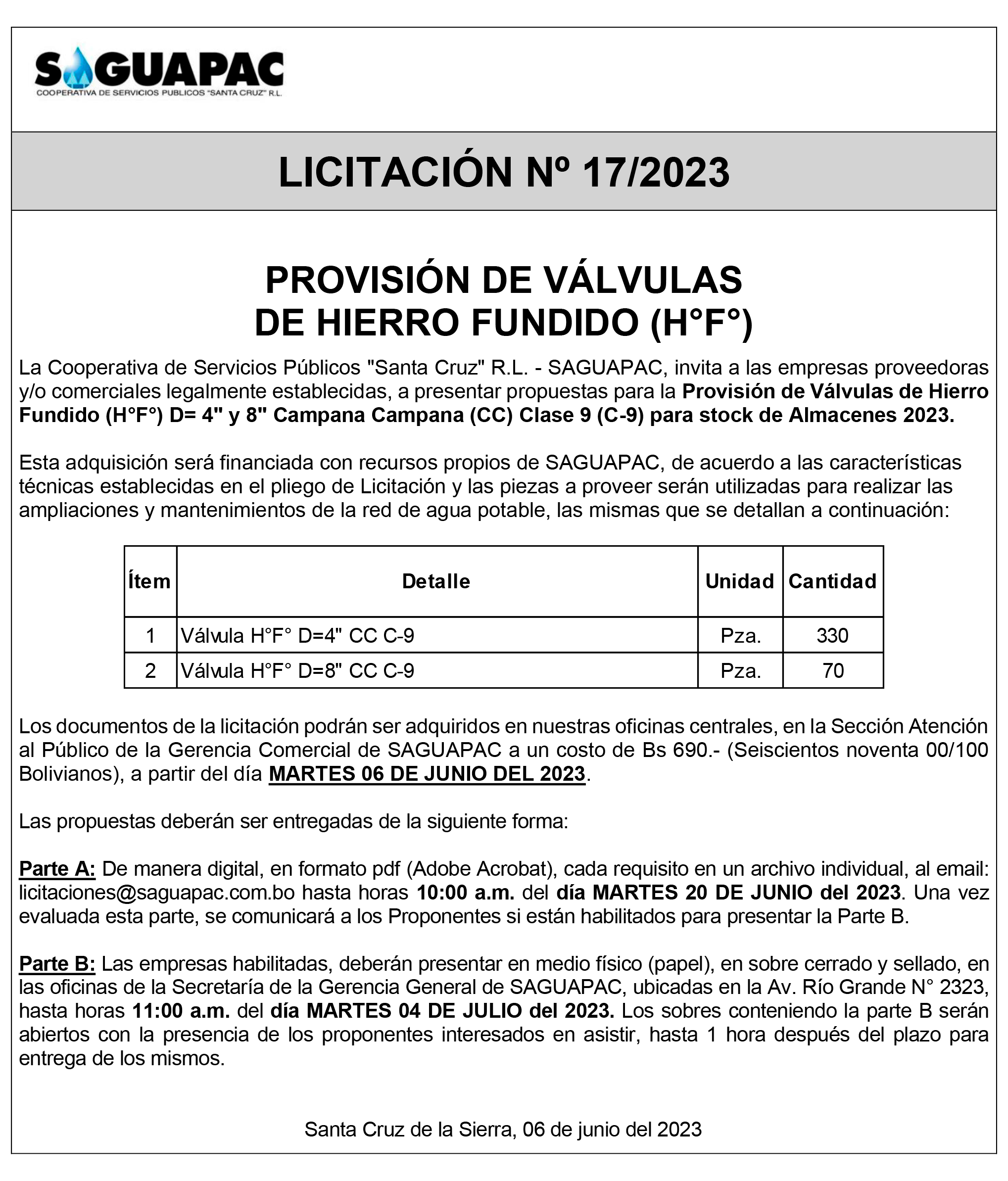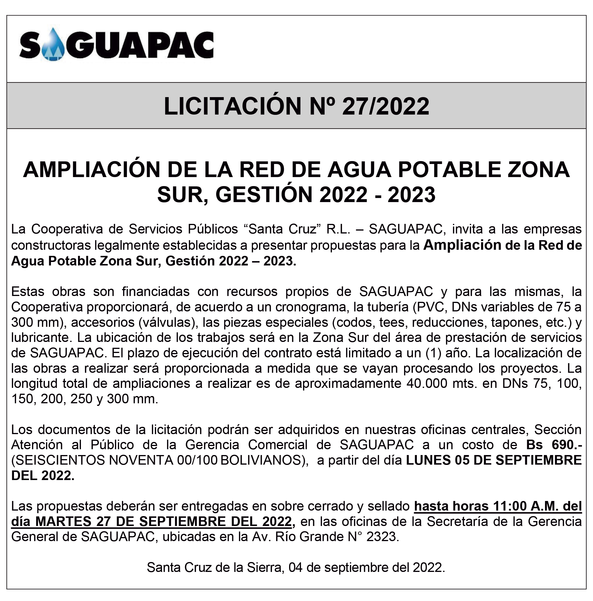 Los procesos de Contratación no son la excepción, ya que se encuentran debidamente normados bajo un Reglamento de Contratación de Obras, Bienes y Servicios, que contempla la modalidad y la normativa de las Licitaciones Públicas, que es un proceso de participación abierto para todo público así como también los Actos de Apertura de Propuestas que se realizan en presencia de los proponentes y representantes de las Cámaras de Industria y Comercio (CAINCO) en casos de bienes o servicios y de la Cámara de la Construcción de Santa Cruz en casos de obras.
