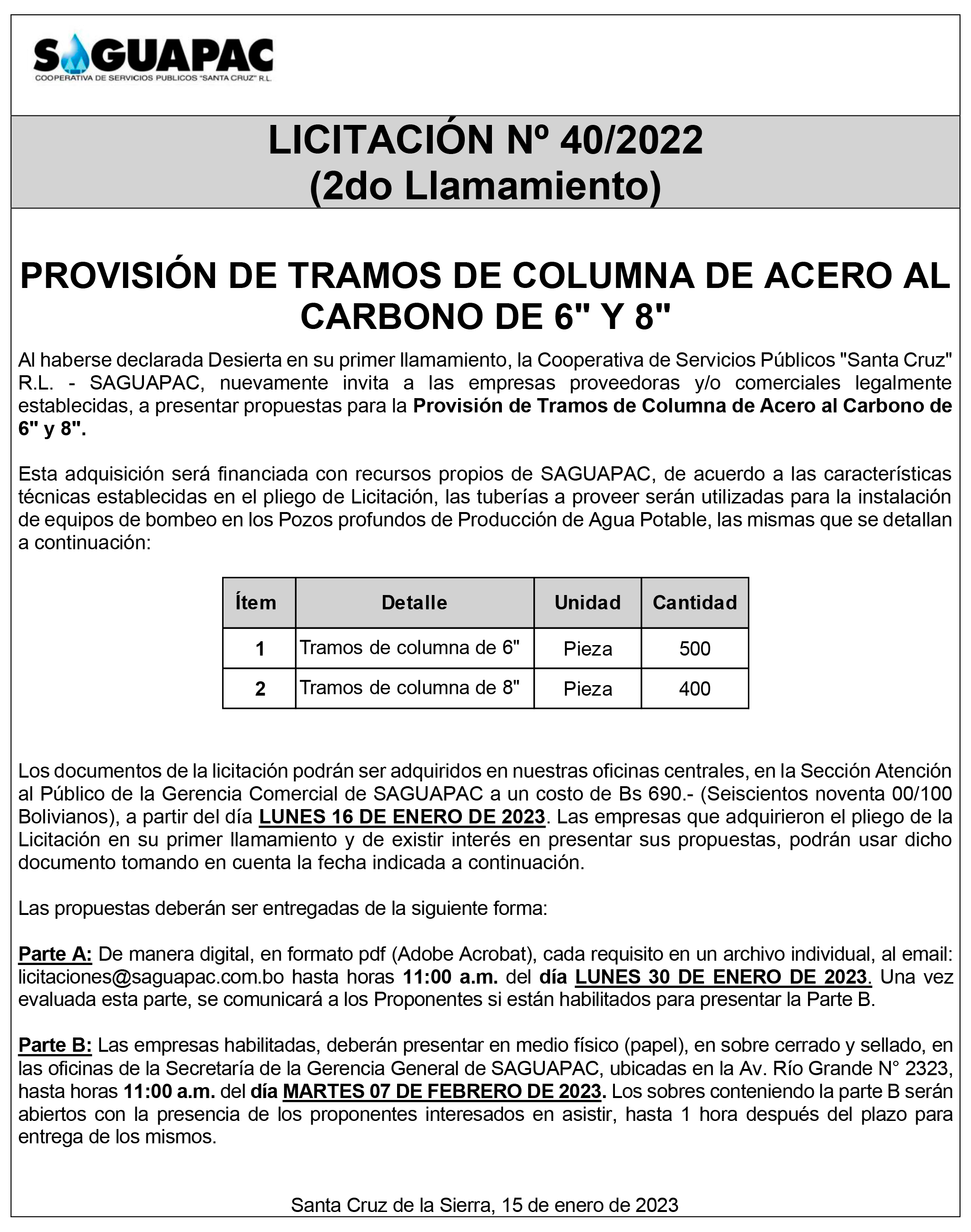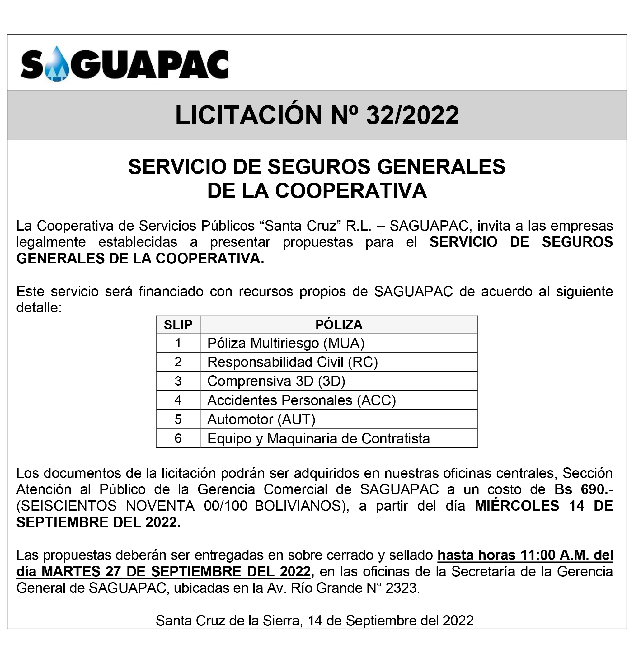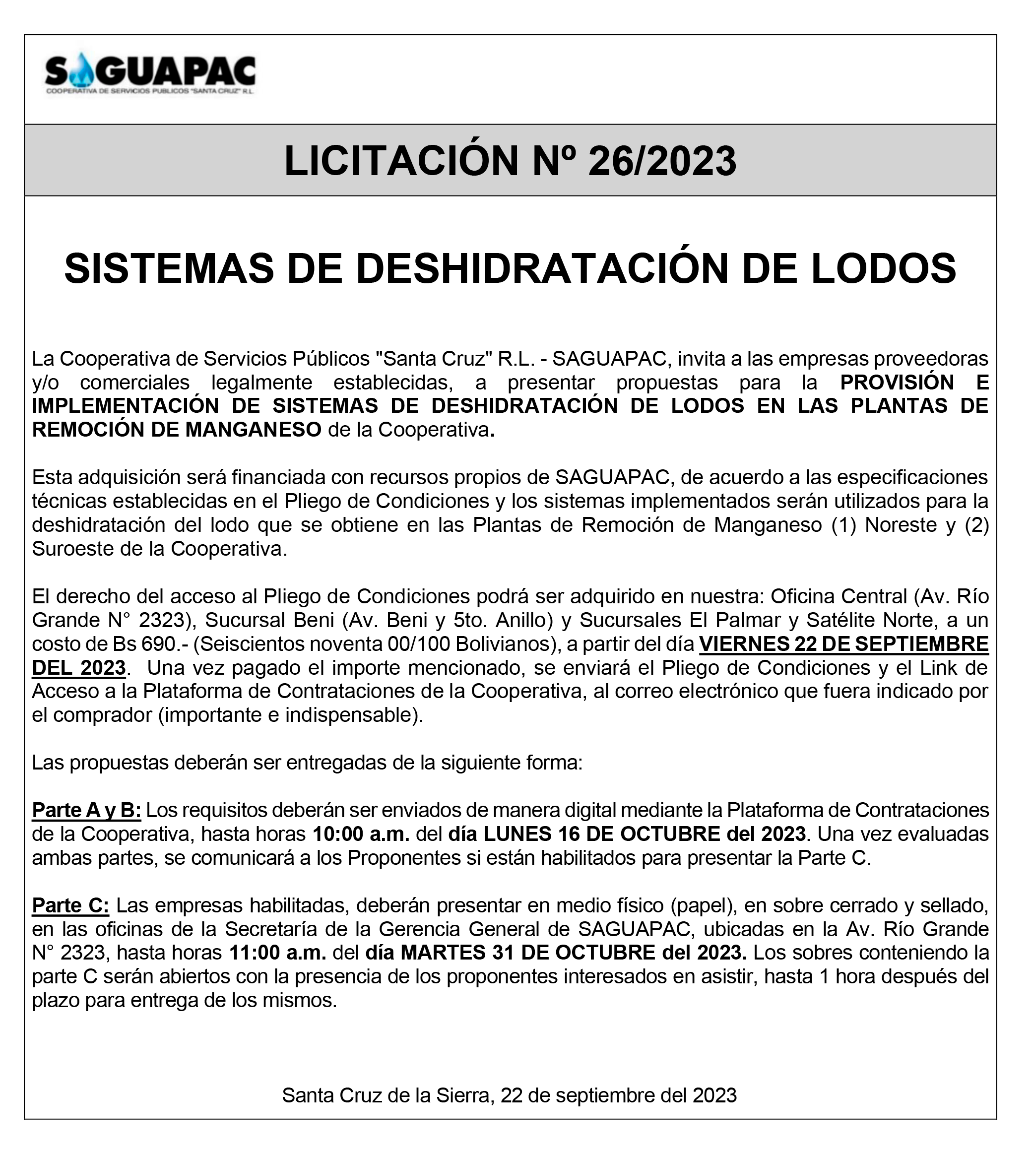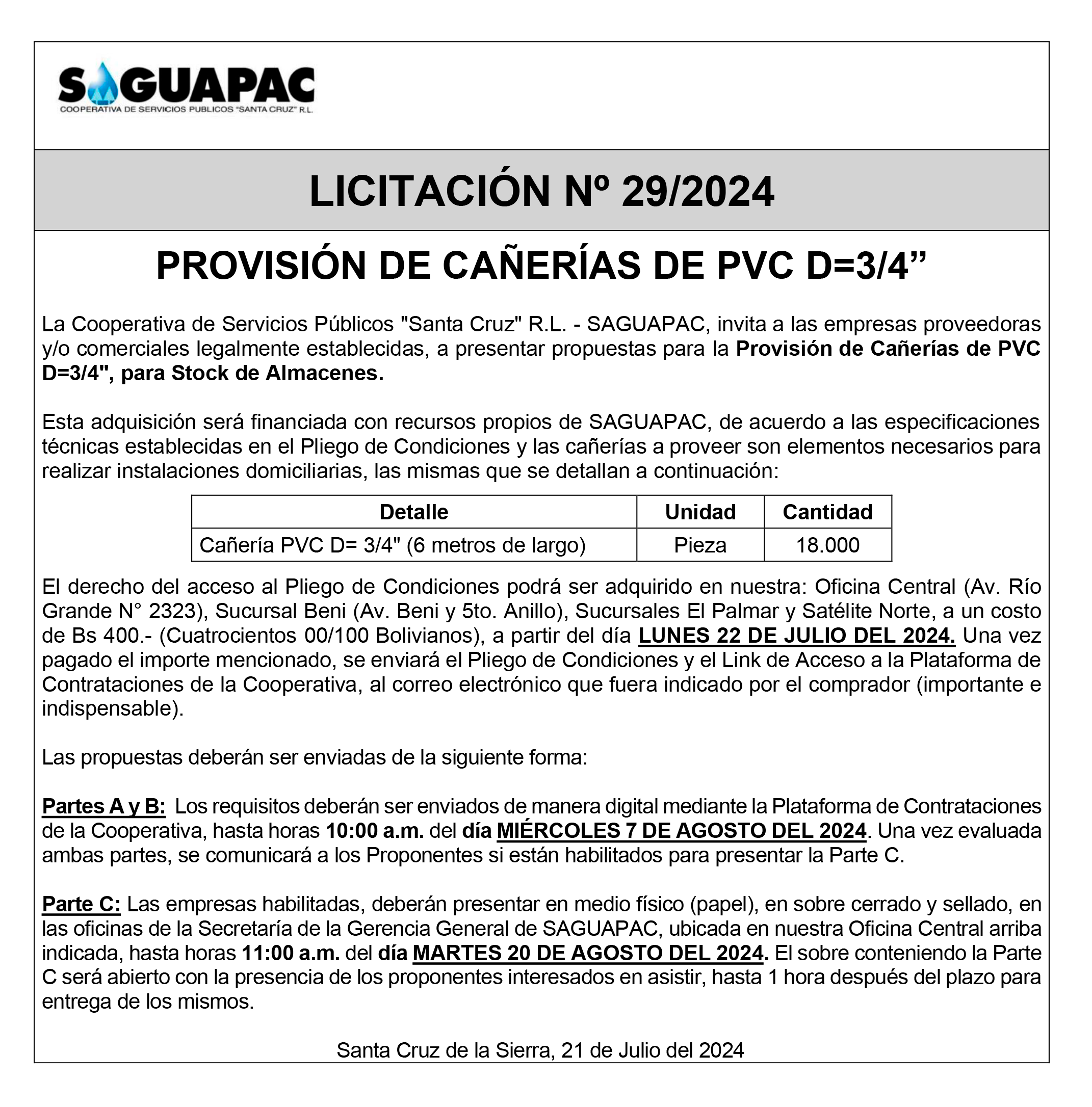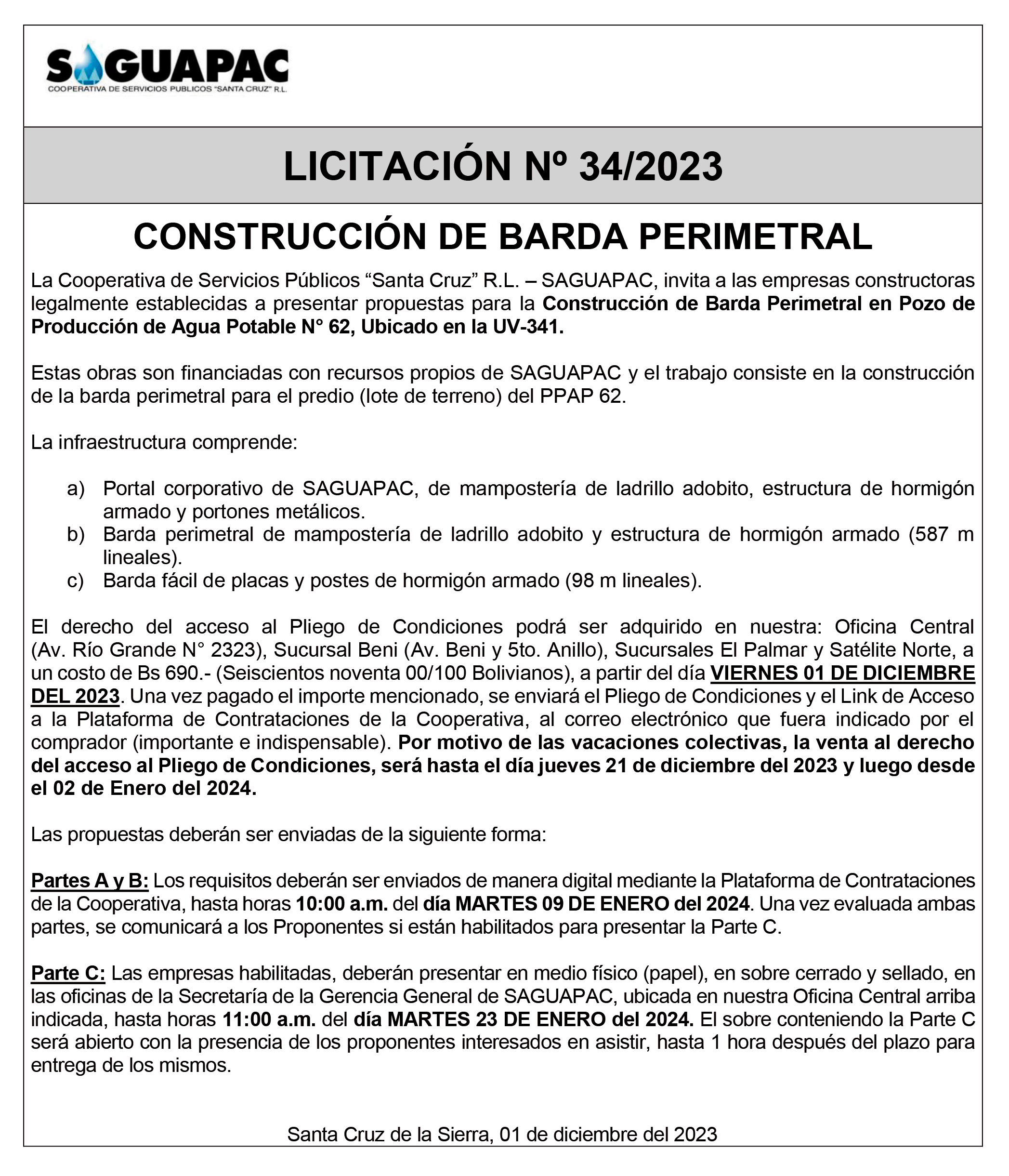 Los procesos de Contratación no son la excepción, ya que se encuentran debidamente normados bajo un Reglamento de Contratación de Obras, Bienes y Servicios, que contempla la modalidad y la normativa de las Licitaciones Públicas, que es un proceso de participación abierto para todo público así como también los Actos de Apertura de Propuestas que se realizan en presencia de los proponentes y representantes de las Cámaras de Industria y Comercio (CAINCO) en casos de bienes o servicios y de la Cámara de la Construcción de Santa Cruz en casos de obras.