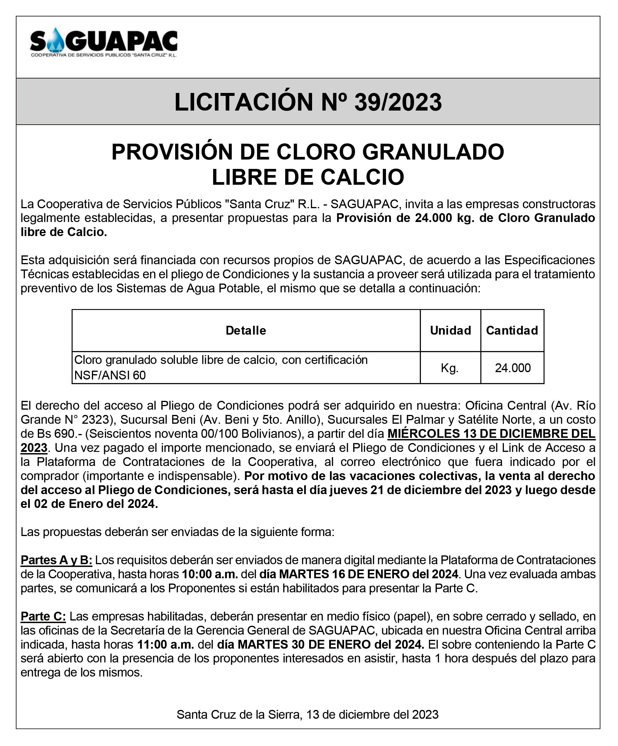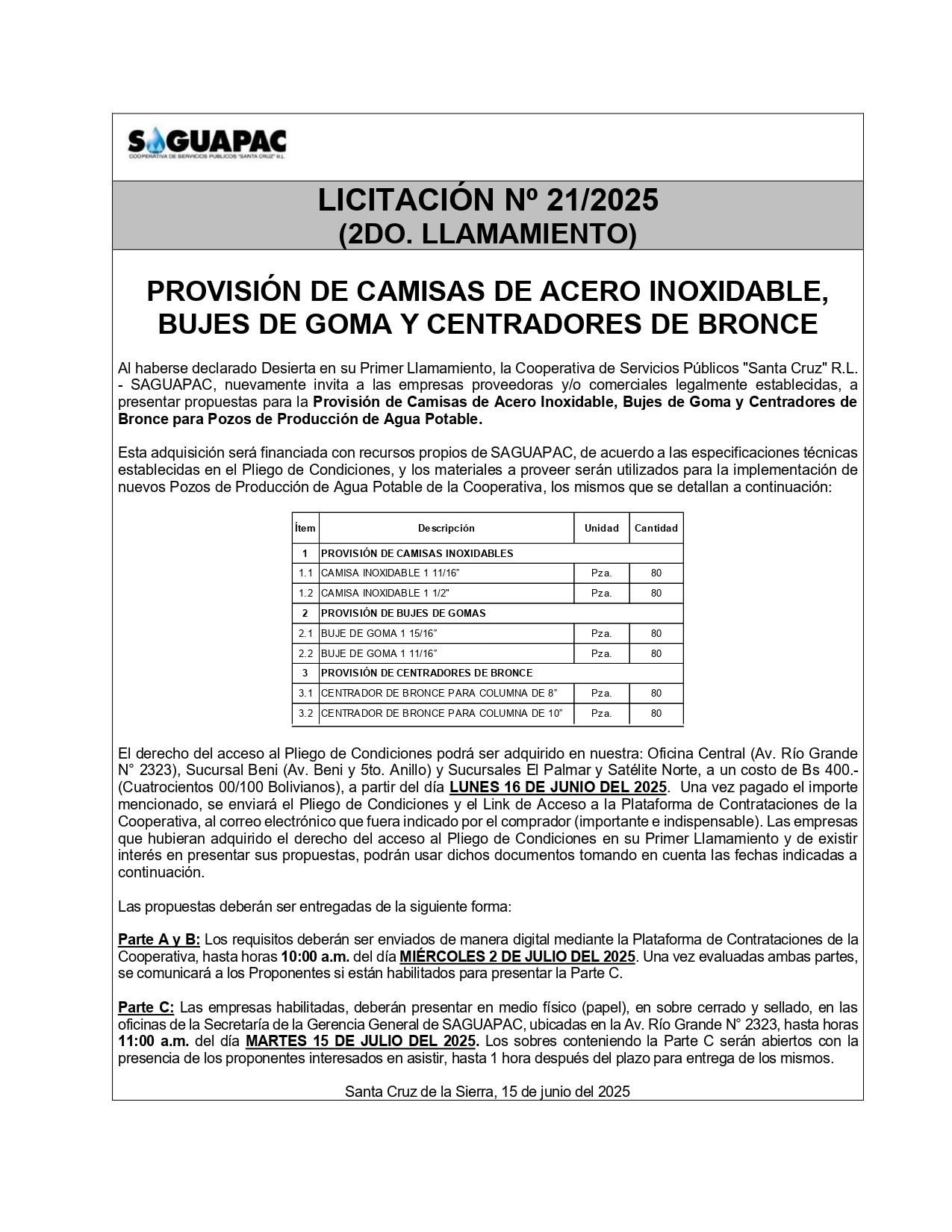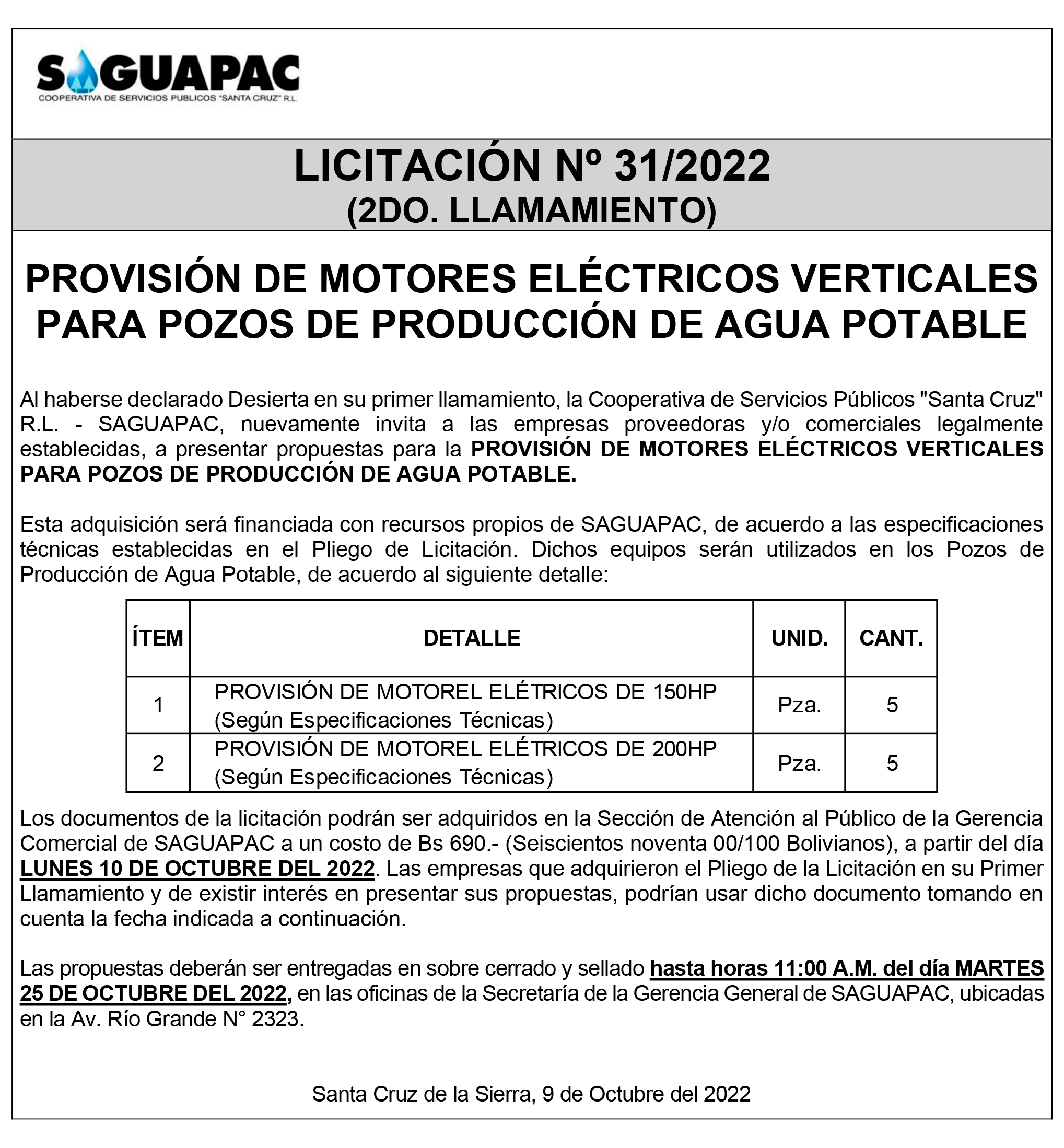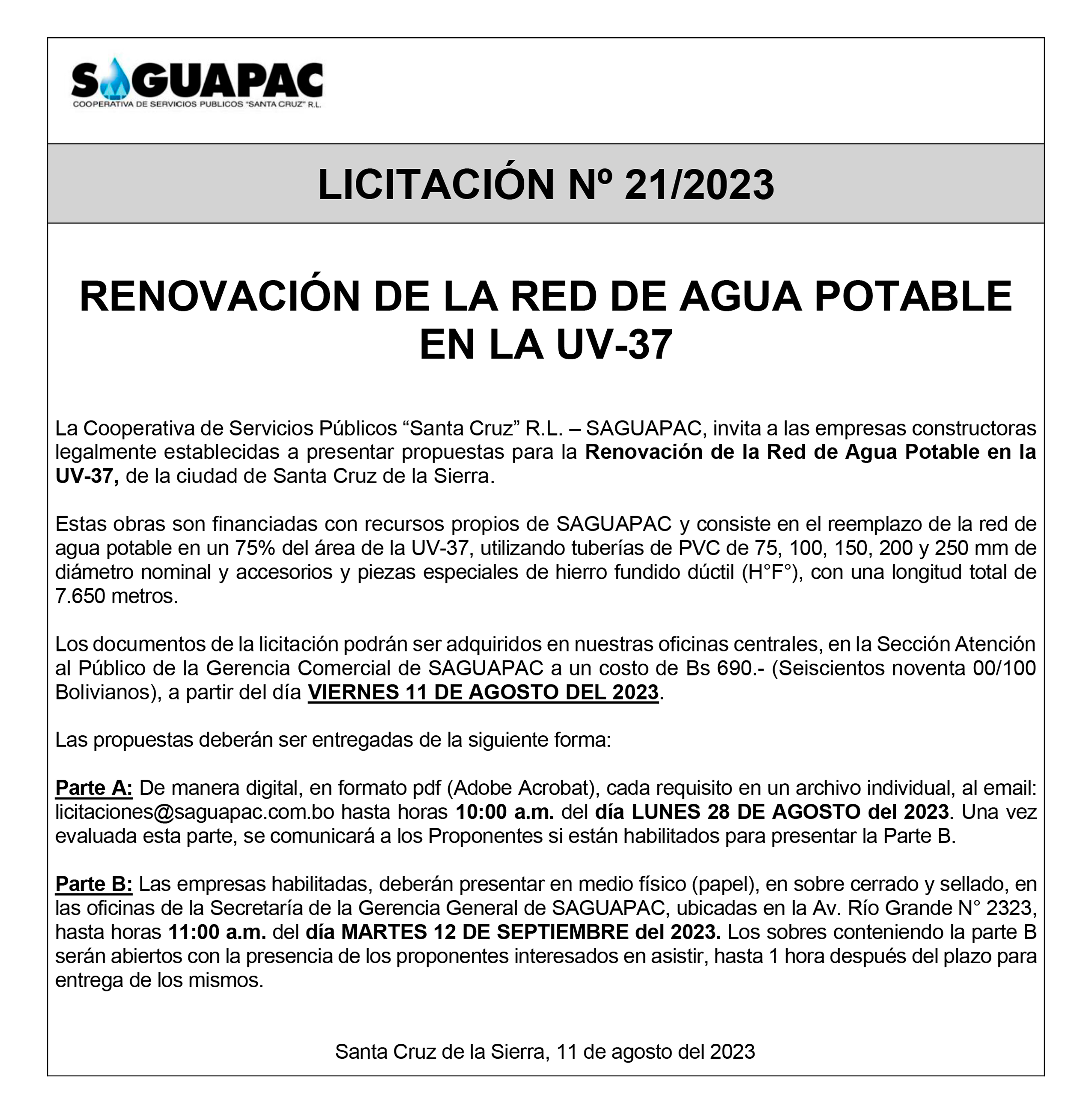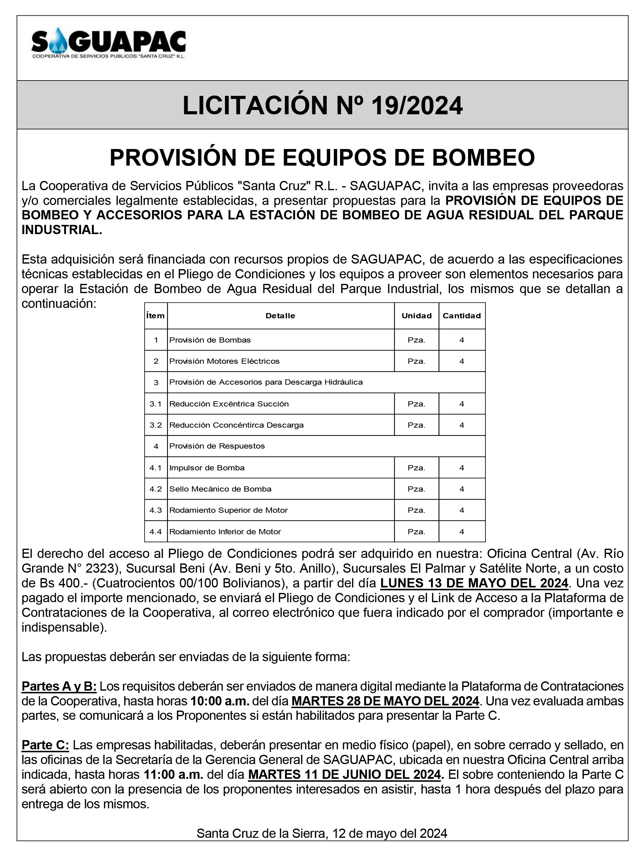 Los procesos de Contratación no son la excepción, ya que se encuentran debidamente normados bajo un Reglamento de Contratación de Obras, Bienes y Servicios, que contempla la modalidad y la normativa de las Licitaciones Públicas, que es un proceso de participación abierto para todo público así como también los Actos de Apertura de Propuestas que se realizan en presencia de los proponentes y representantes de las Cámaras de Industria y Comercio (CAINCO) en casos de bienes o servicios y de la Cámara de la Construcción de Santa Cruz en casos de obras.