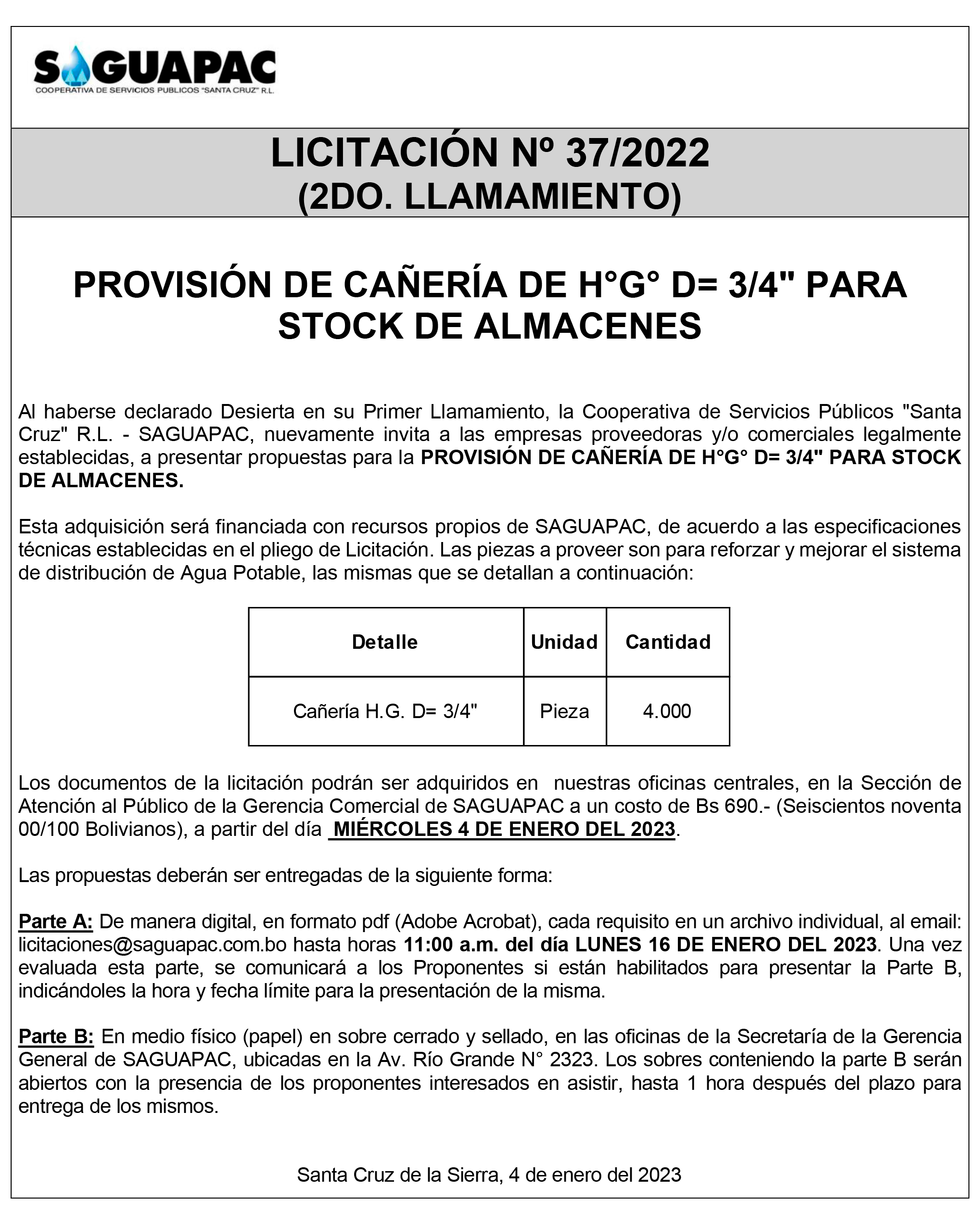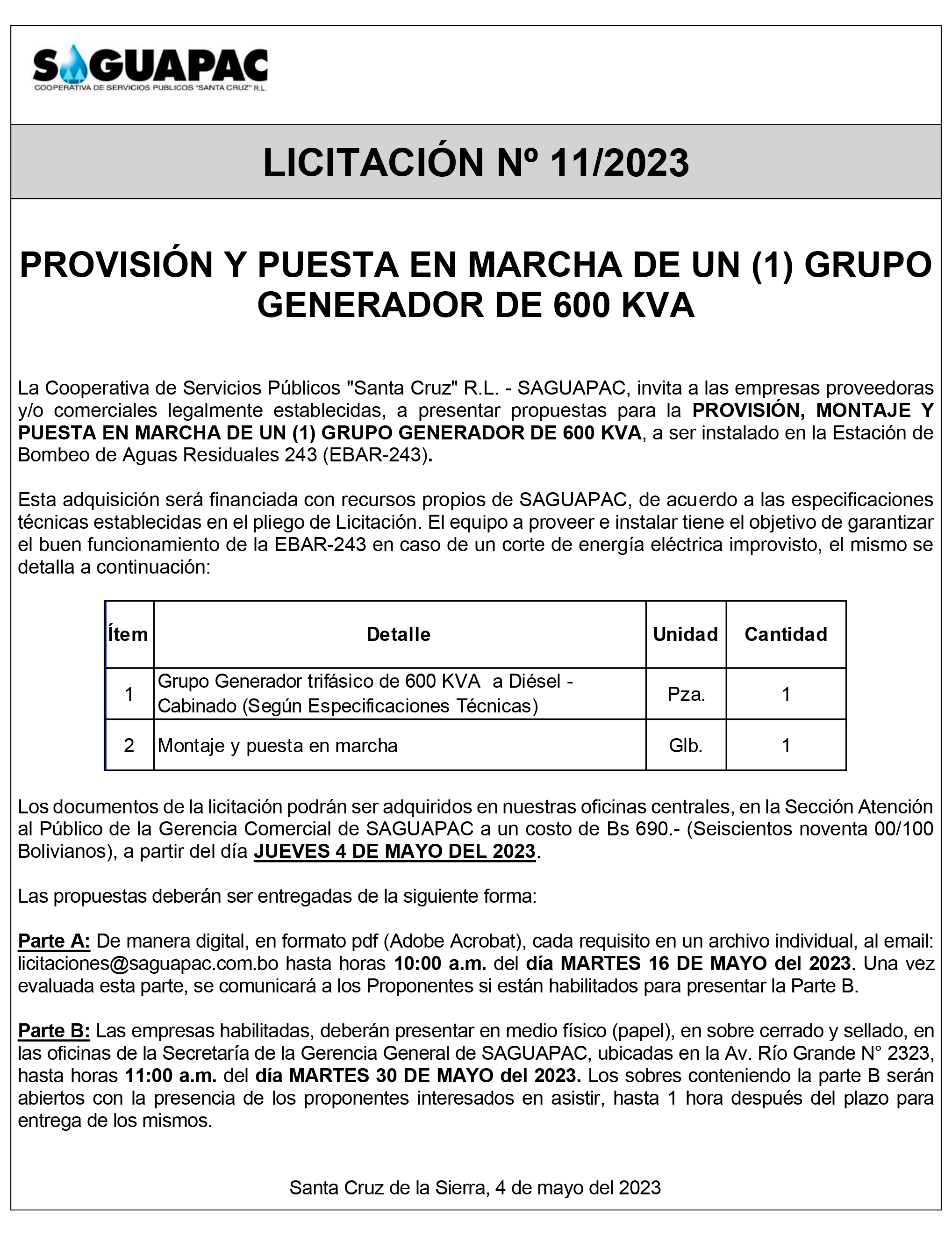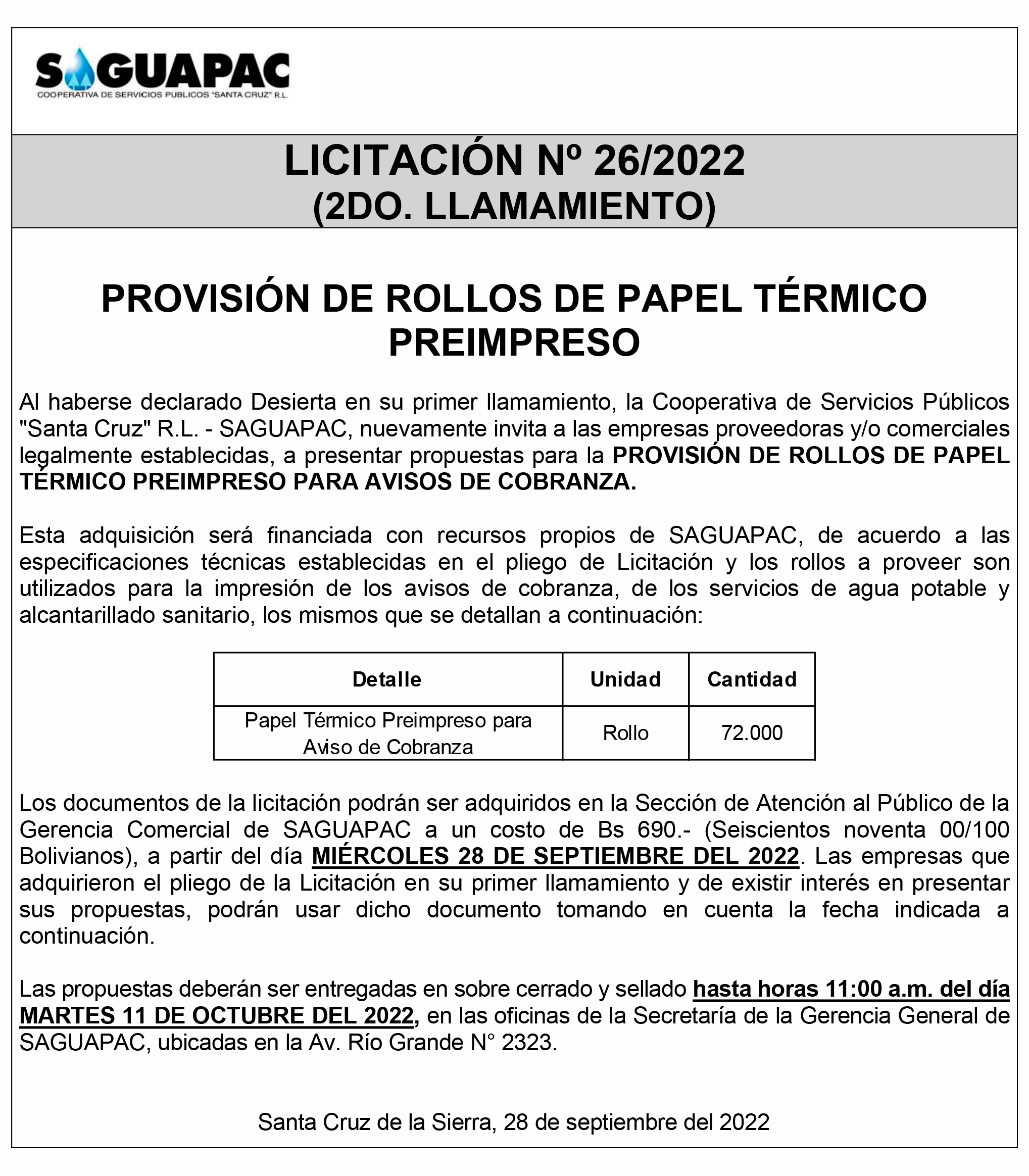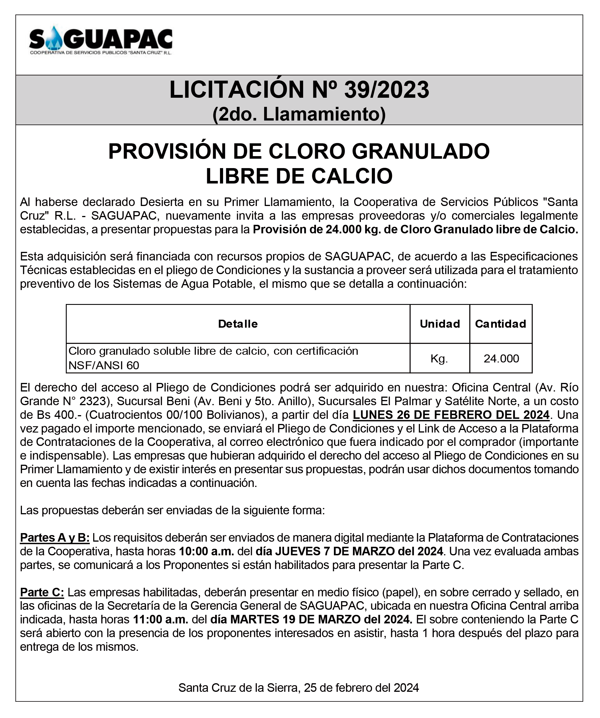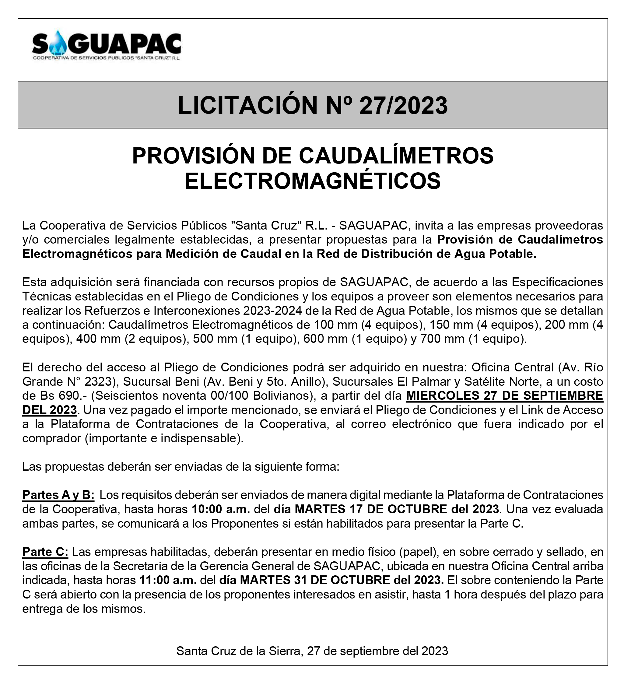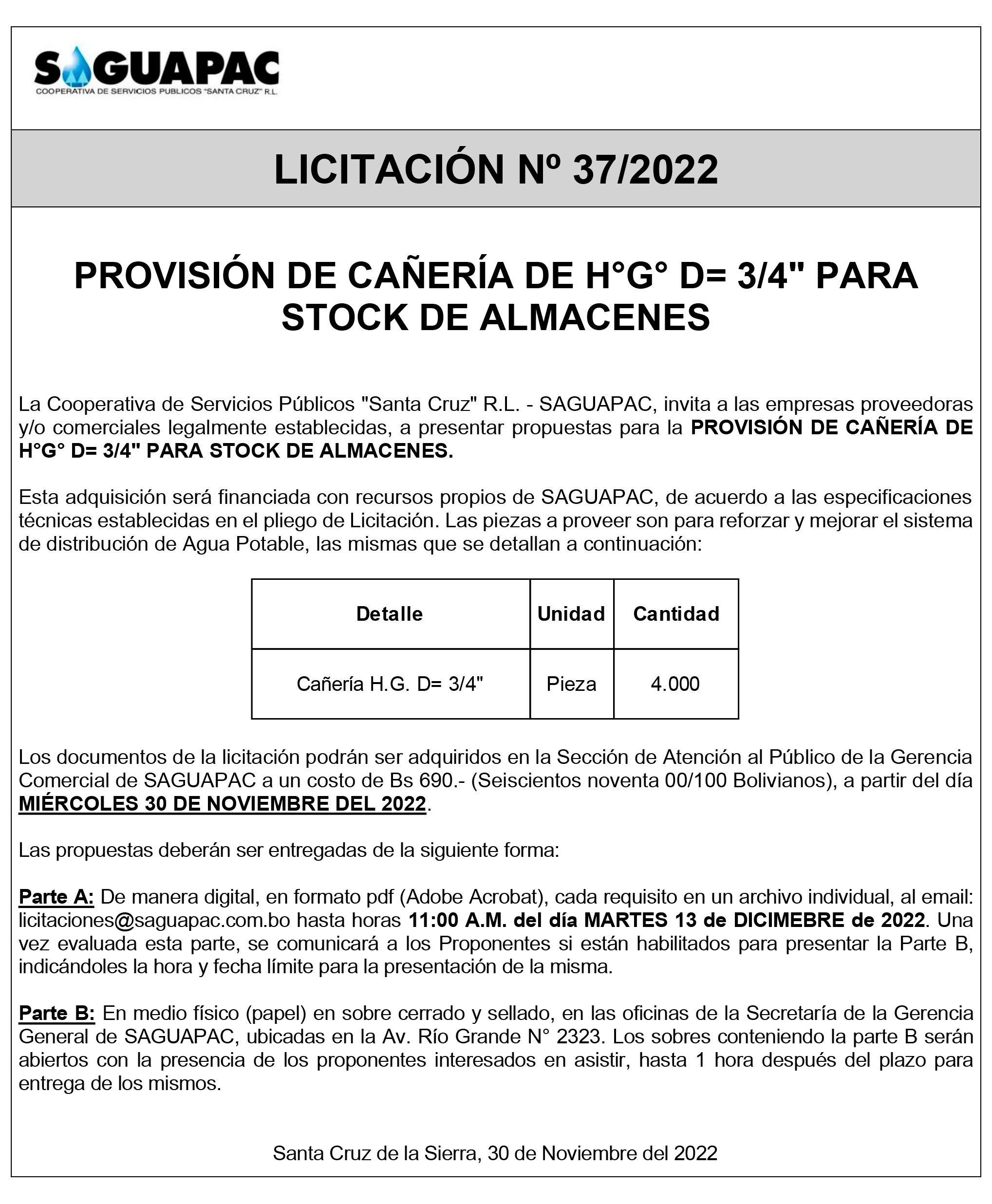 Los procesos de Contratación no son la excepción, ya que se encuentran debidamente normados bajo un Reglamento de Contratación de Obras, Bienes y Servicios, que contempla la modalidad y la normativa de las Licitaciones Públicas, que es un proceso de participación abierto para todo público así como también los Actos de Apertura de Propuestas que se realizan en presencia de los proponentes y representantes de las Cámaras de Industria y Comercio (CAINCO) en casos de bienes o servicios y de la Cámara de la Construcción de Santa Cruz en casos de obras.