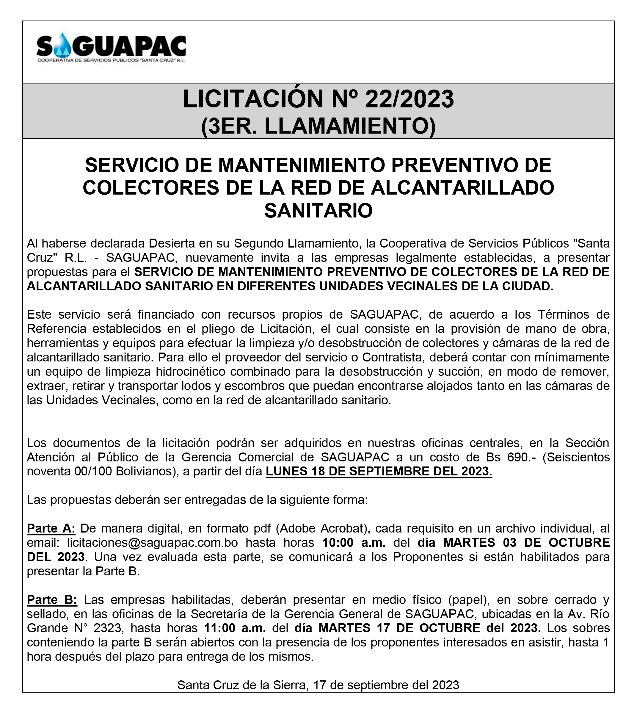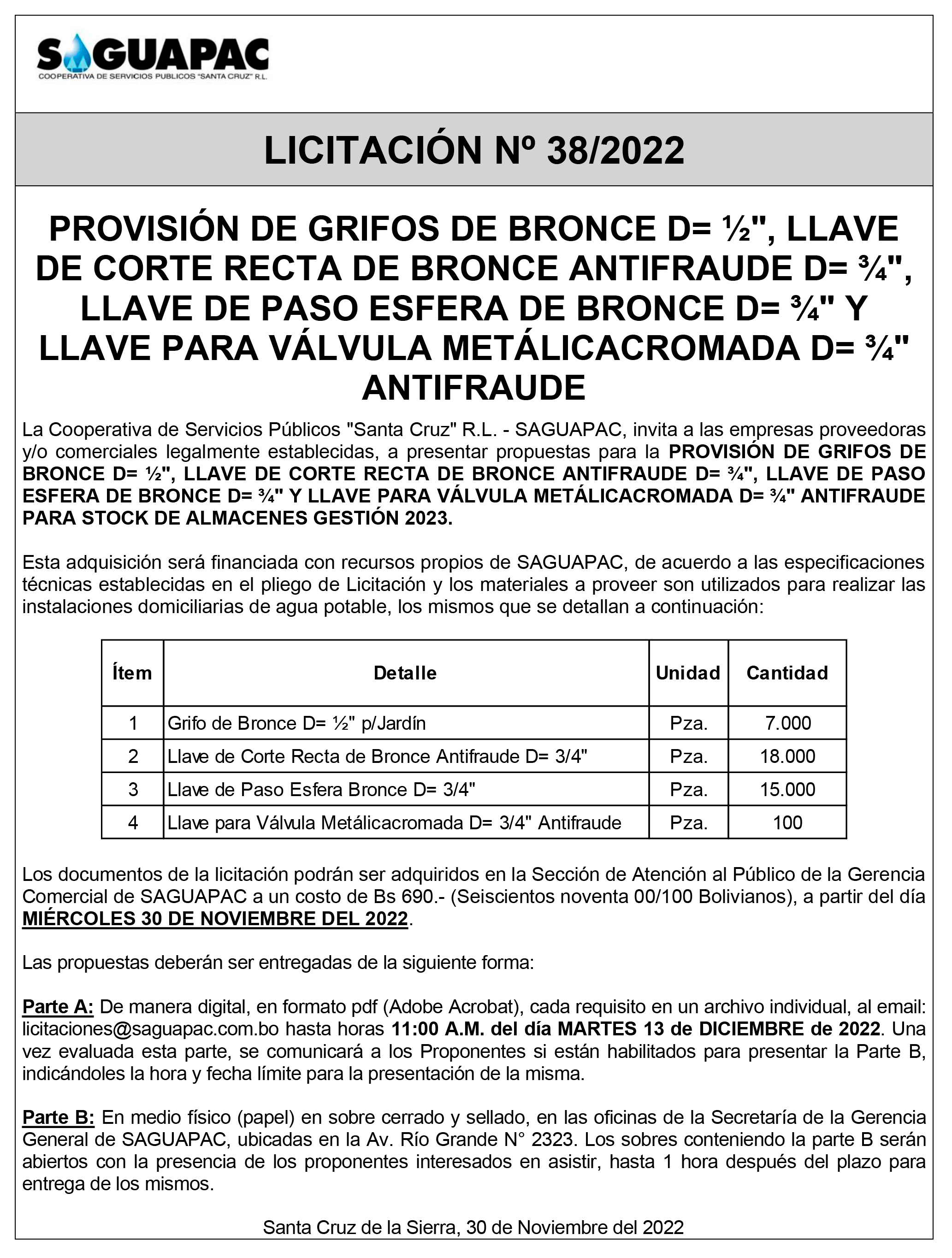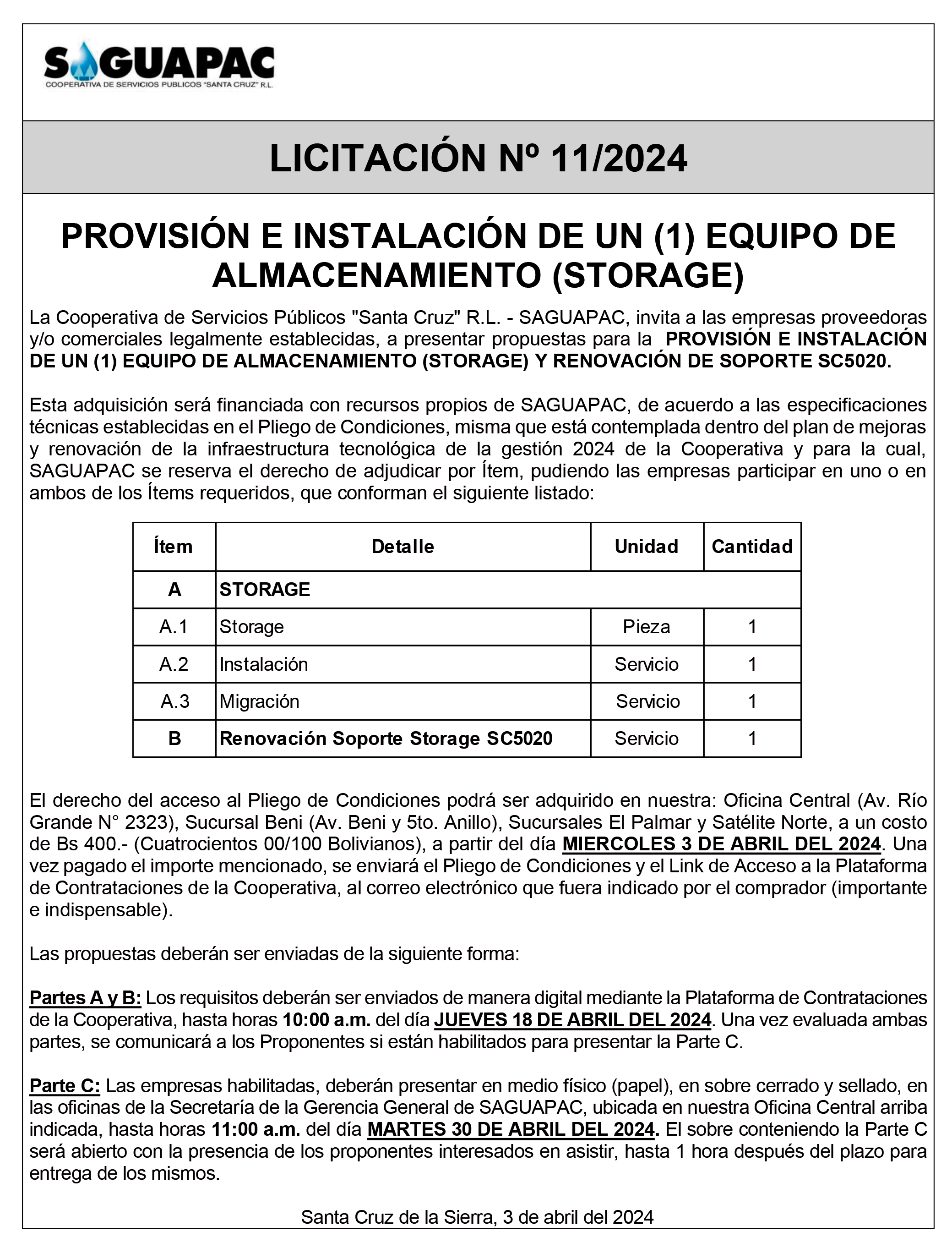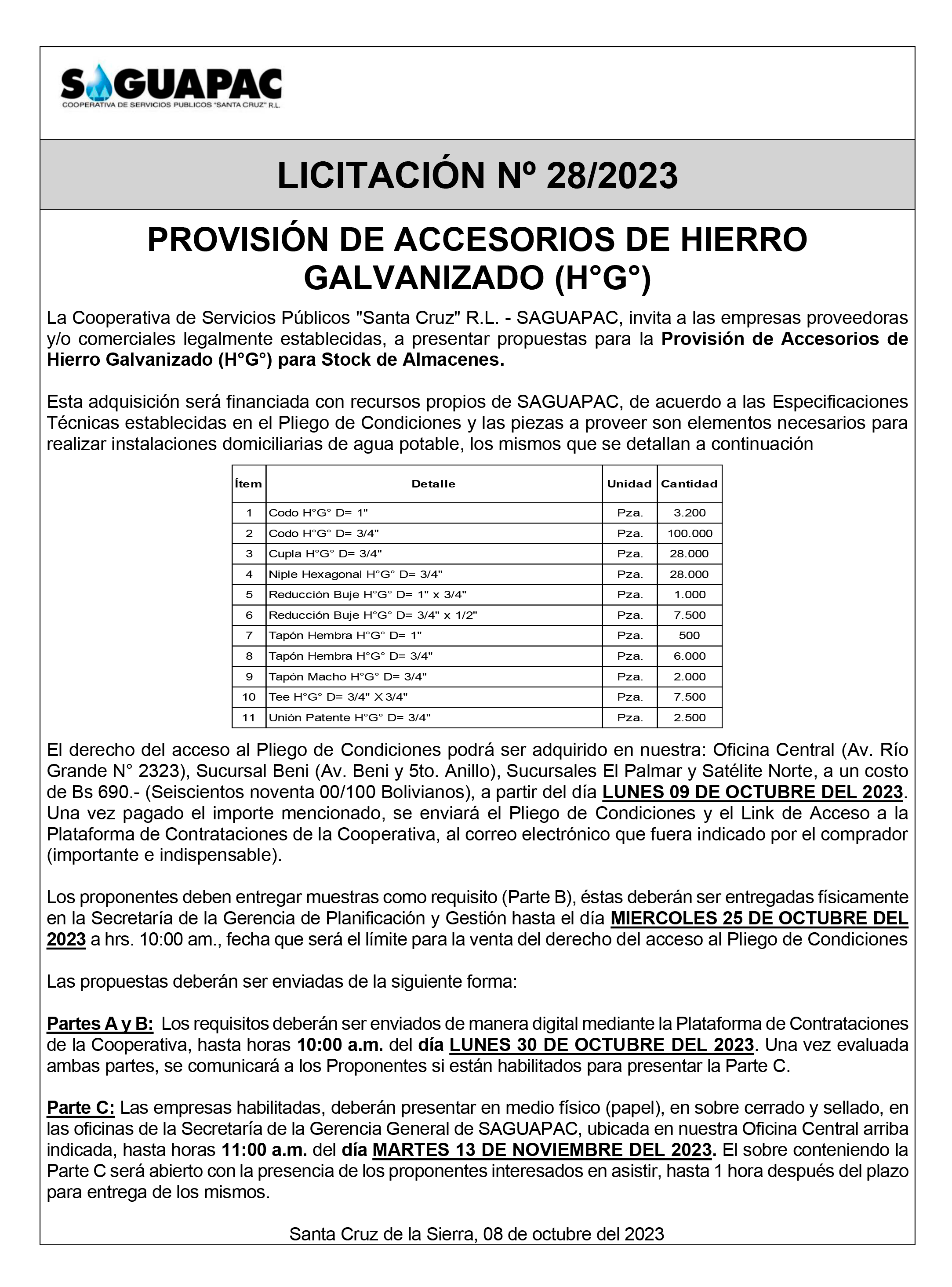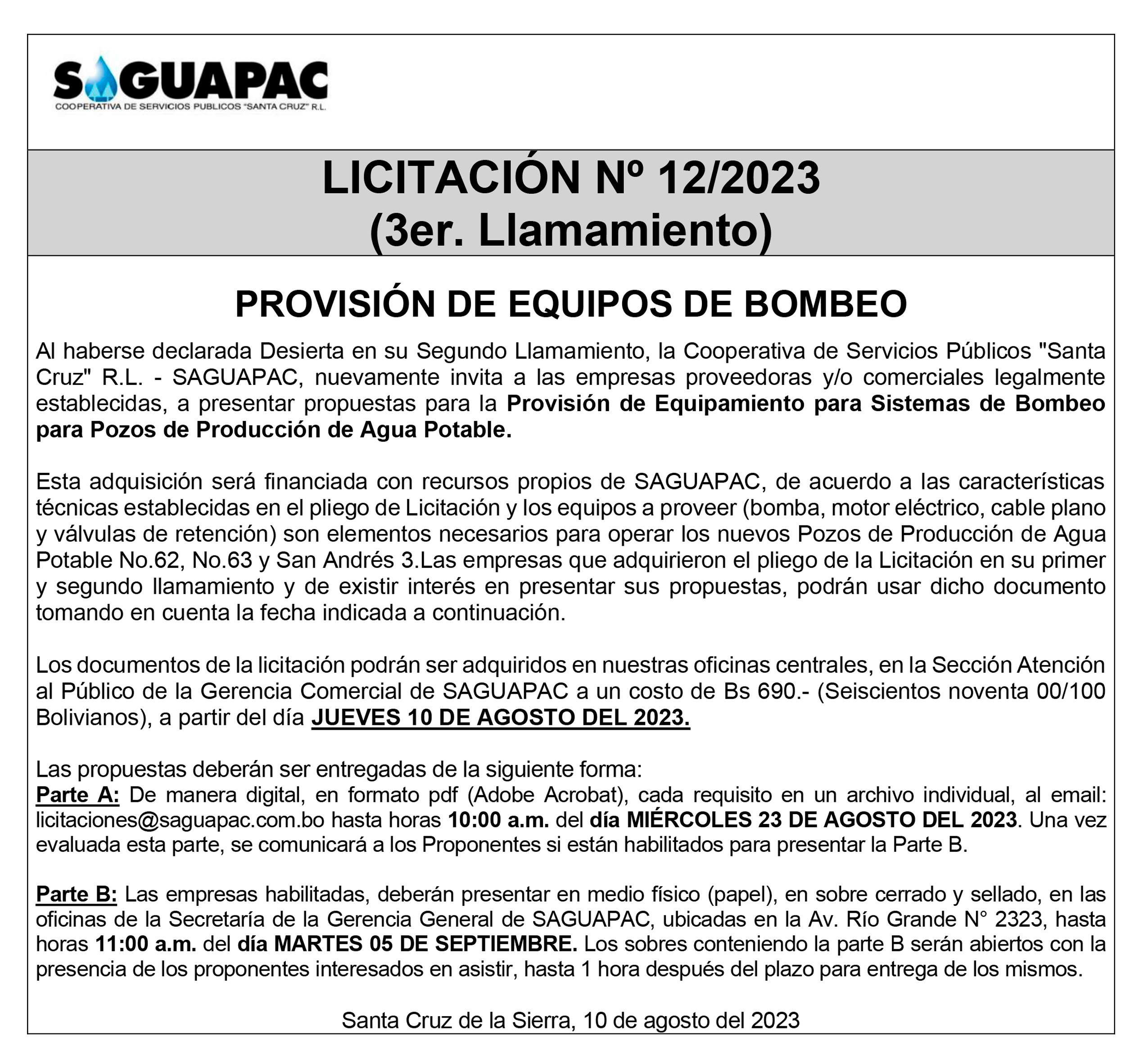 Los procesos de Contratación no son la excepción, ya que se encuentran debidamente normados bajo un Reglamento de Contratación de Obras, Bienes y Servicios, que contempla la modalidad y la normativa de las Licitaciones Públicas, que es un proceso de participación abierto para todo público así como también los Actos de Apertura de Propuestas que se realizan en presencia de los proponentes y representantes de las Cámaras de Industria y Comercio (CAINCO) en casos de bienes o servicios y de la Cámara de la Construcción de Santa Cruz en casos de obras.
