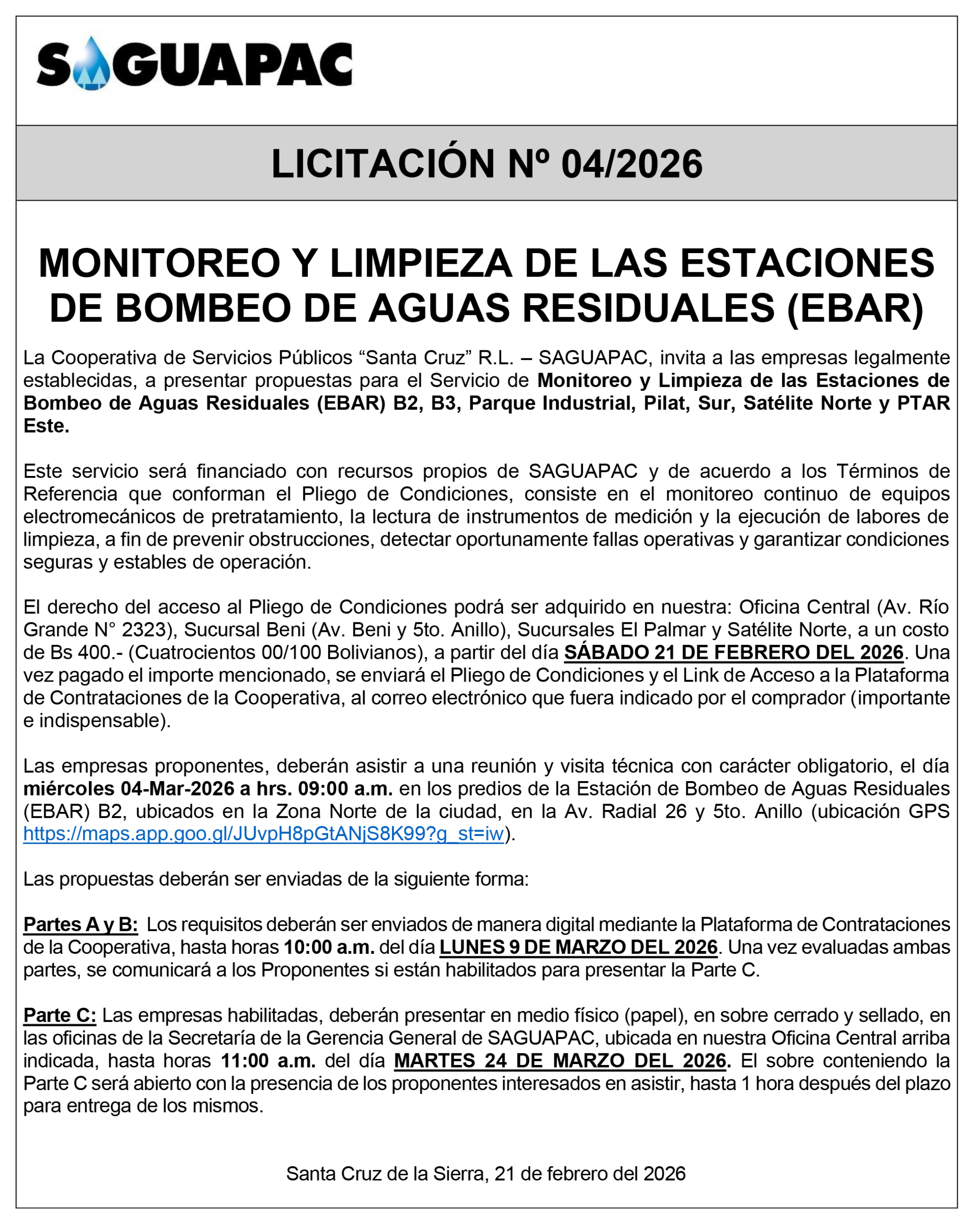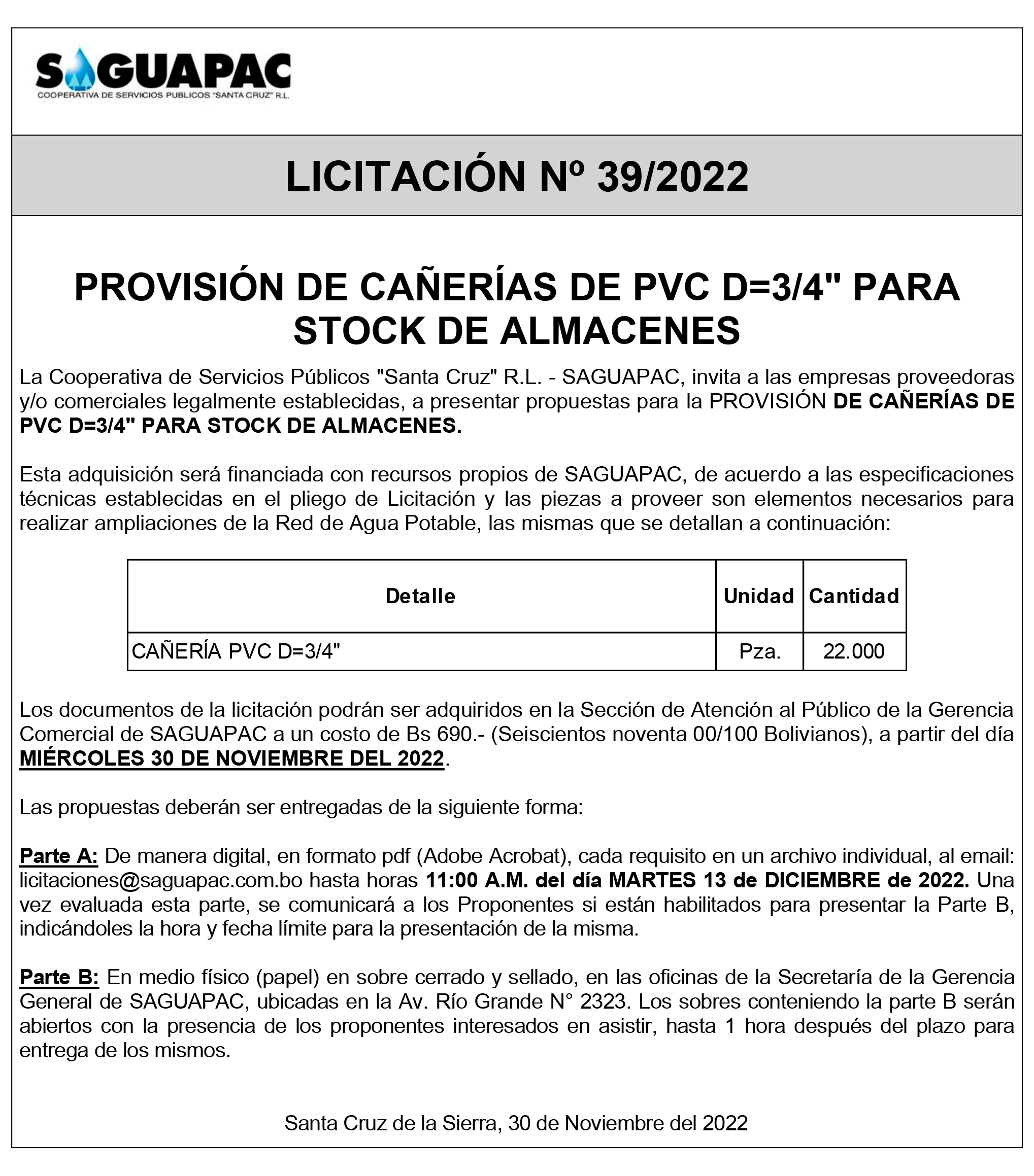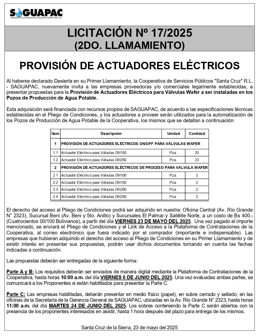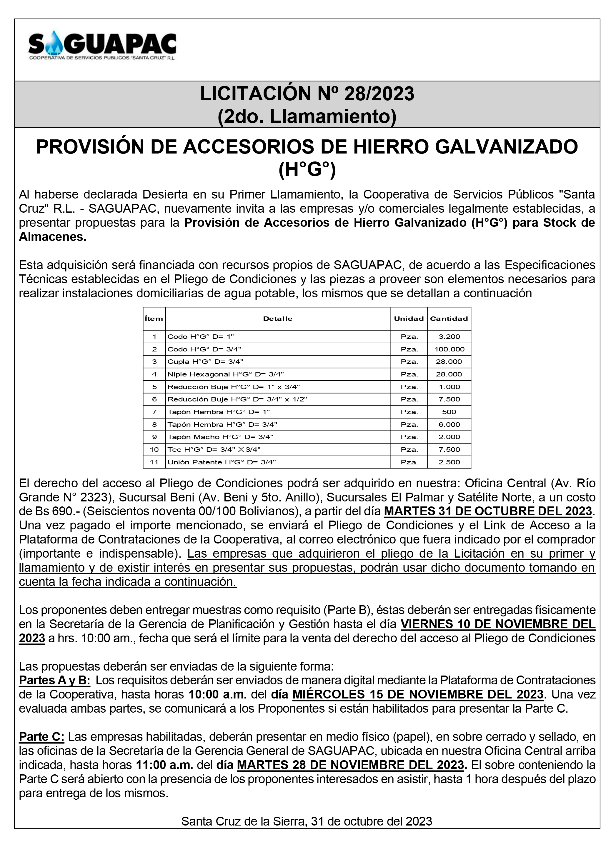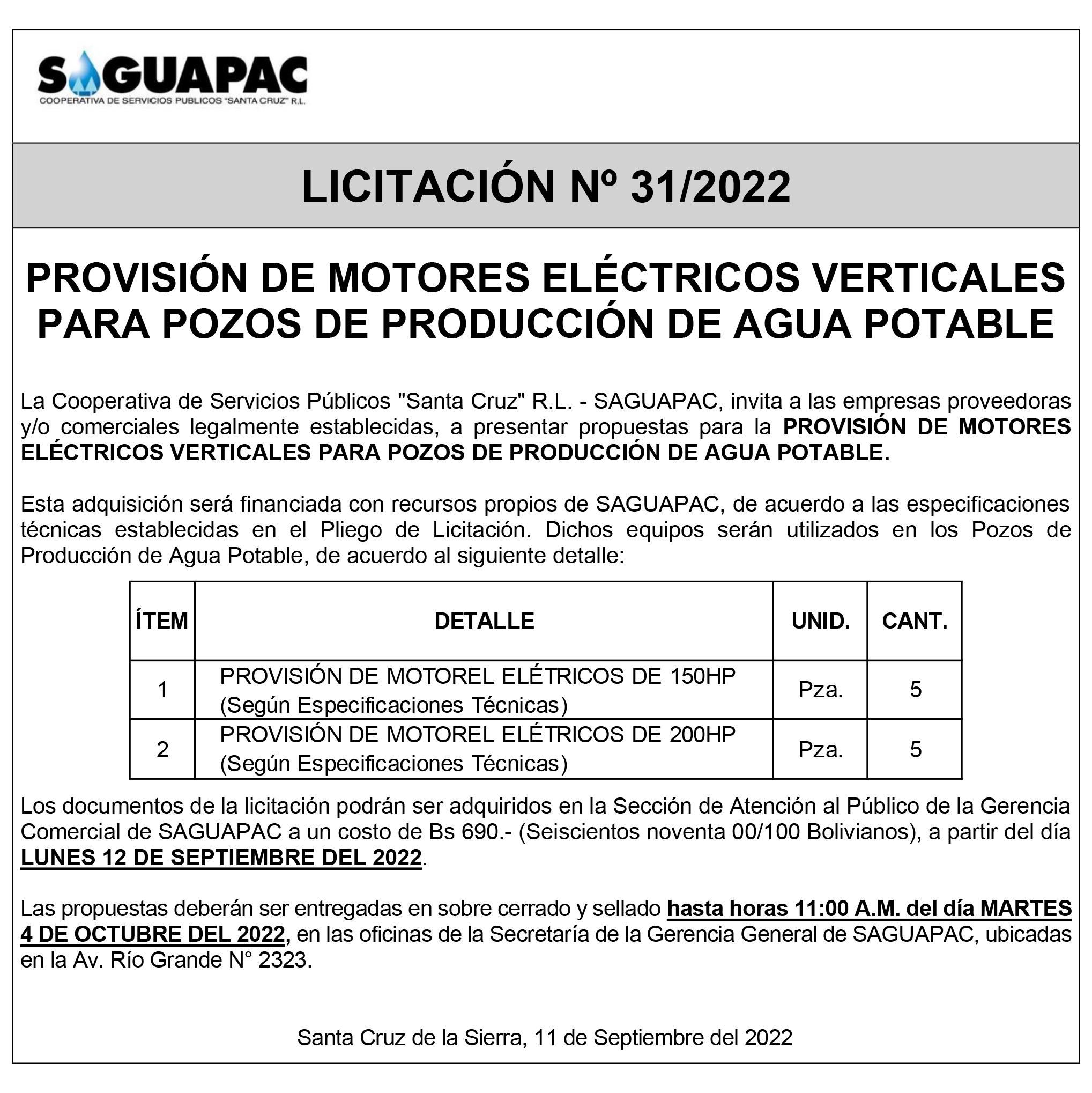 Los procesos de Contratación no son la excepción, ya que se encuentran debidamente normados bajo un Reglamento de Contratación de Obras, Bienes y Servicios, que contempla la modalidad y la normativa de las Licitaciones Públicas, que es un proceso de participación abierto para todo público así como también los Actos de Apertura de Propuestas que se realizan en presencia de los proponentes y representantes de las Cámaras de Industria y Comercio (CAINCO) en casos de bienes o servicios y de la Cámara de la Construcción de Santa Cruz en casos de obras.