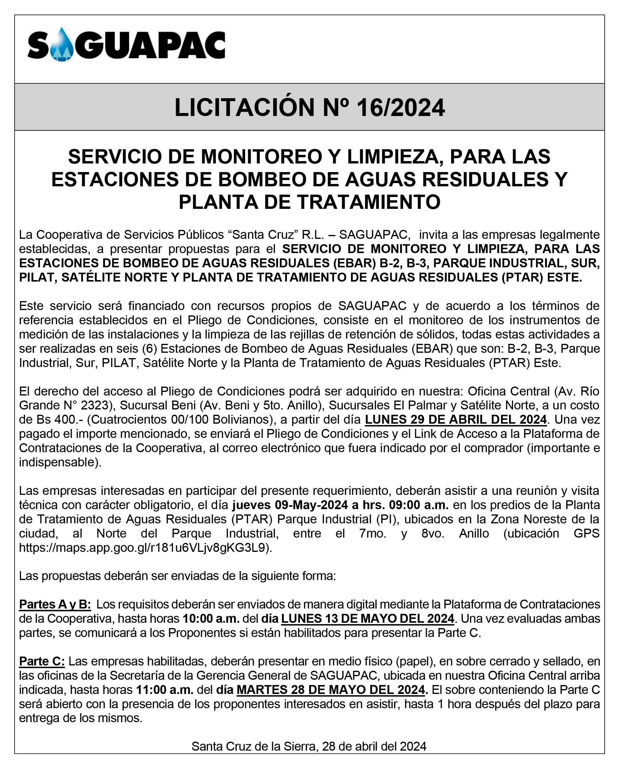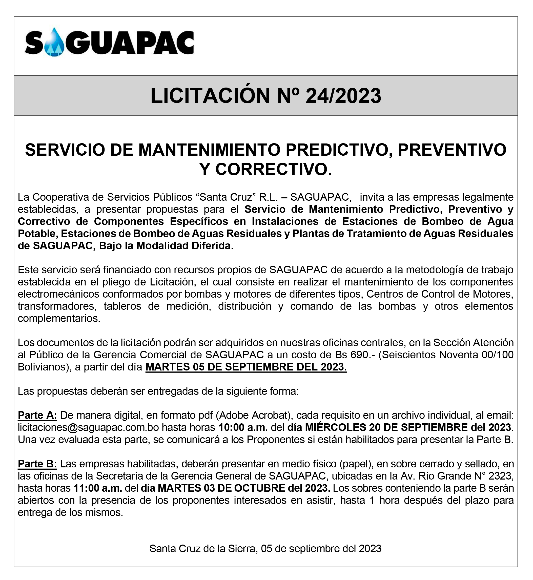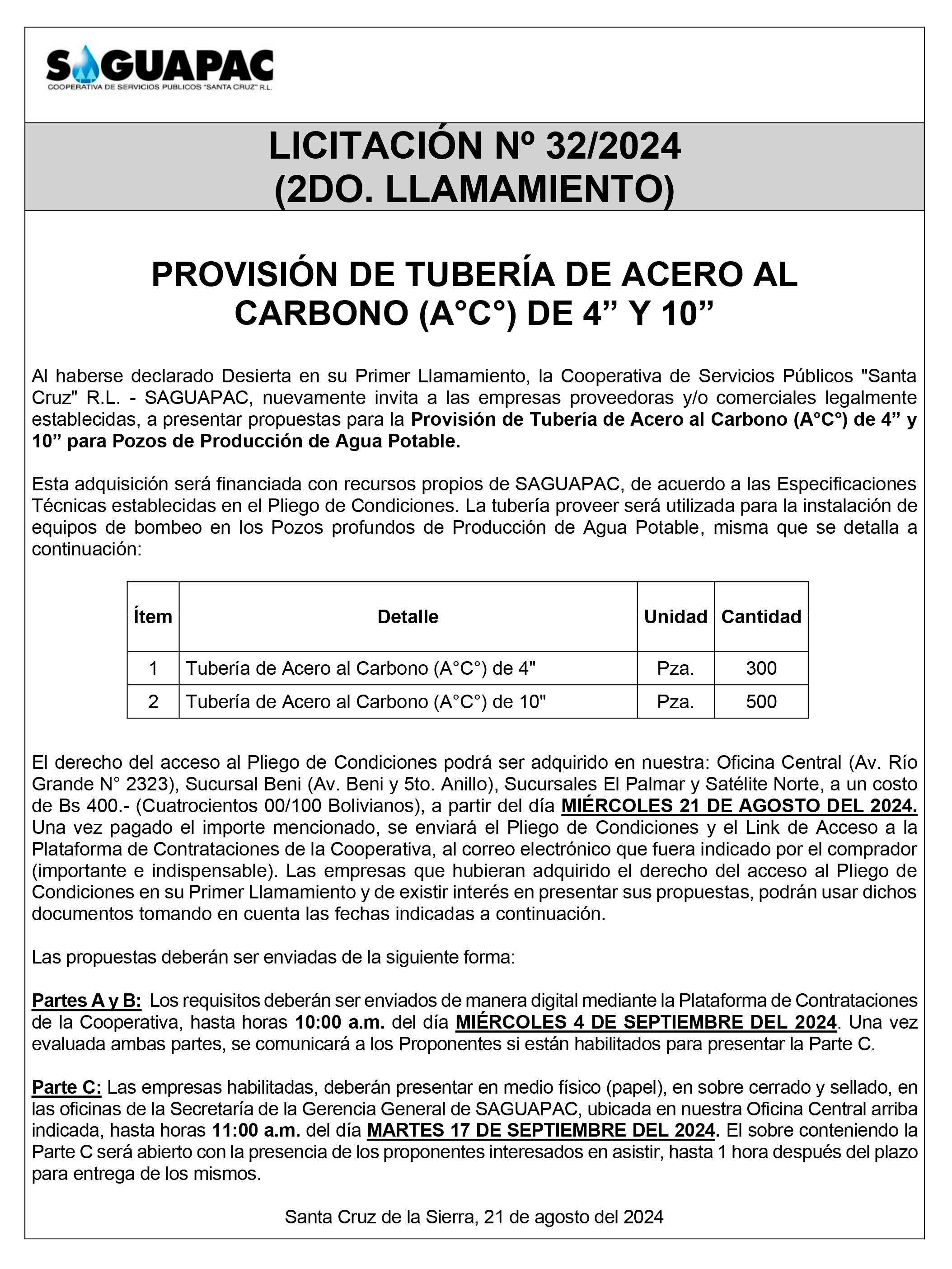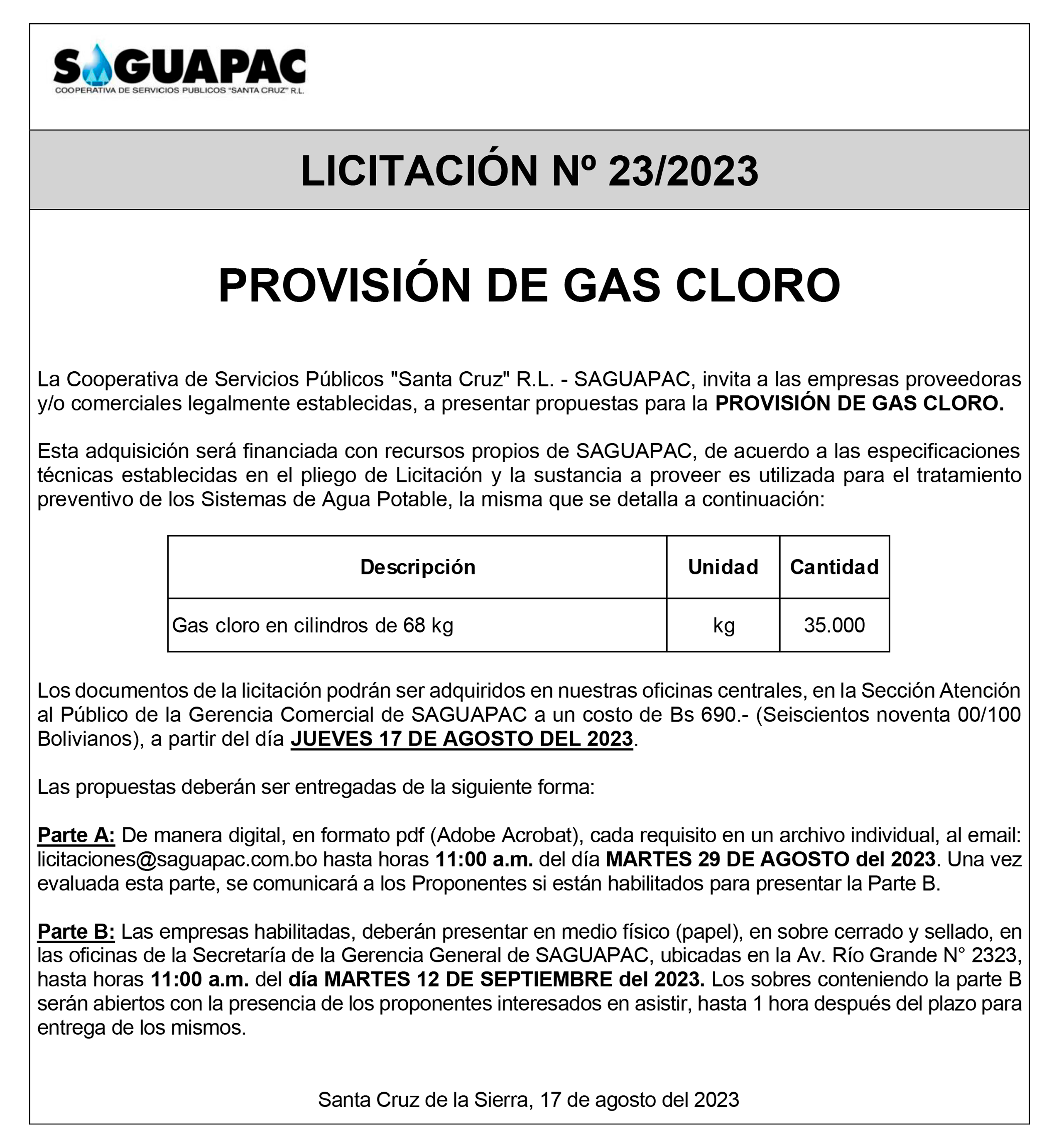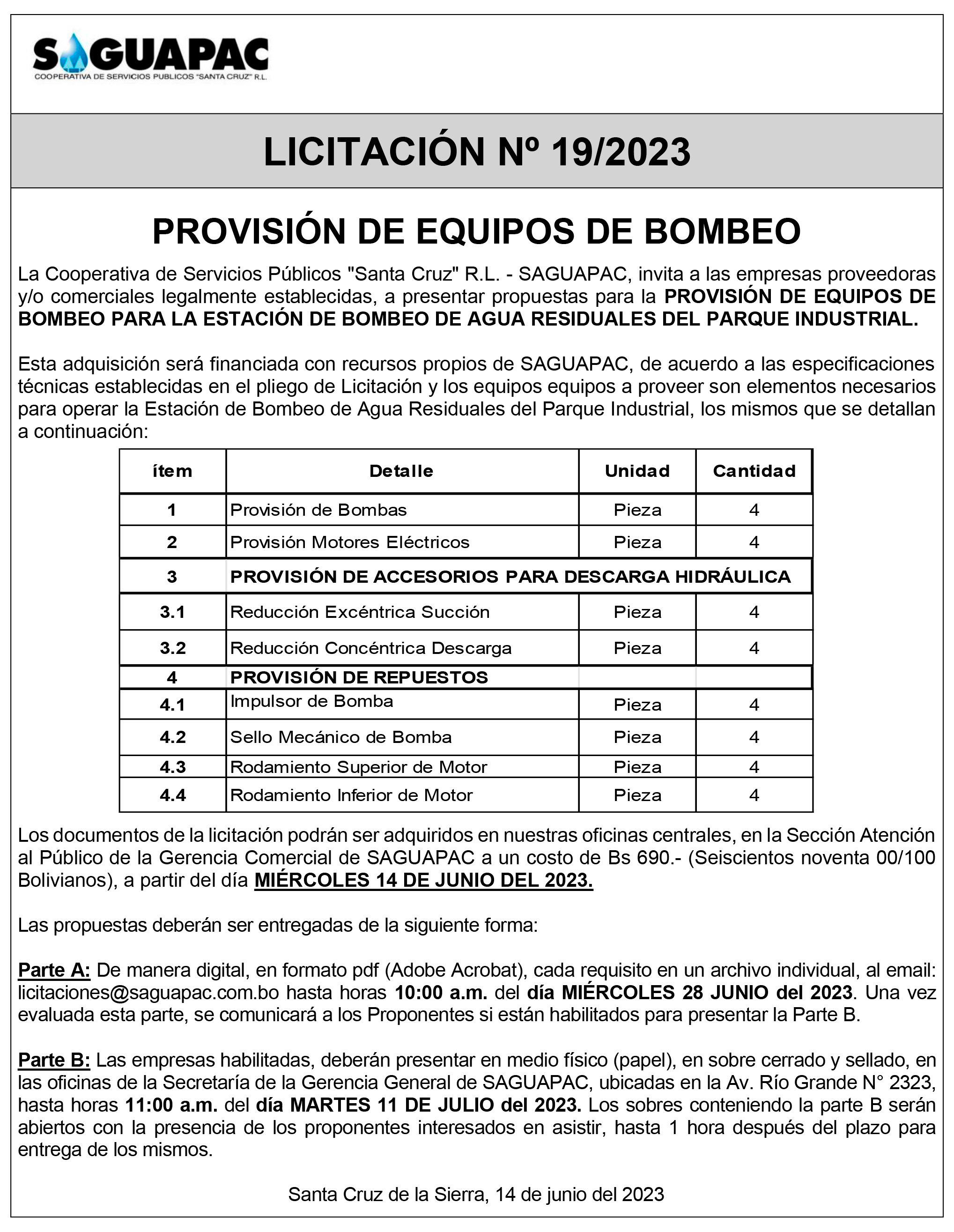 Los procesos de Contratación no son la excepción, ya que se encuentran debidamente normados bajo un Reglamento de Contratación de Obras, Bienes y Servicios, que contempla la modalidad y la normativa de las Licitaciones Públicas, que es un proceso de participación abierto para todo público así como también los Actos de Apertura de Propuestas que se realizan en presencia de los proponentes y representantes de las Cámaras de Industria y Comercio (CAINCO) en casos de bienes o servicios y de la Cámara de la Construcción de Santa Cruz en casos de obras.