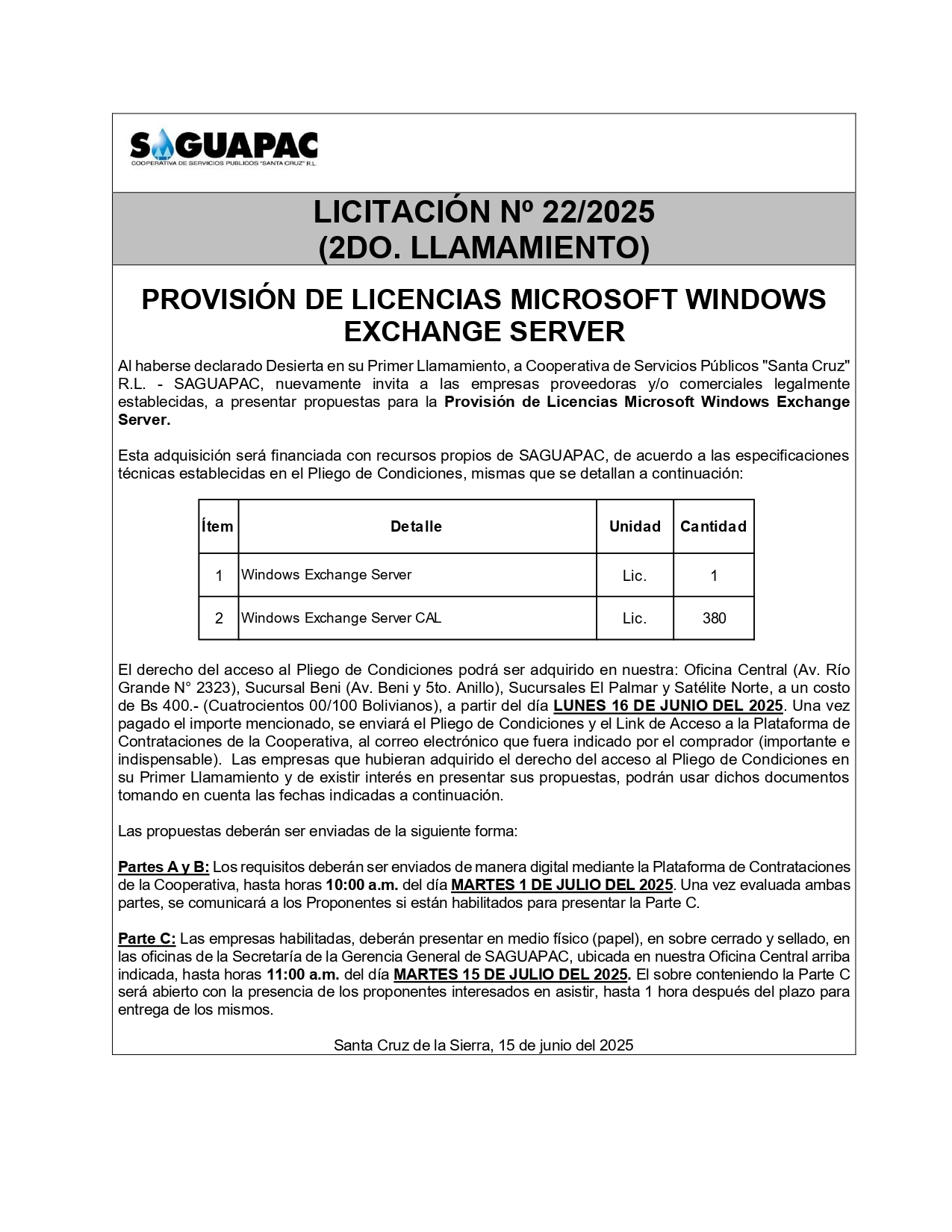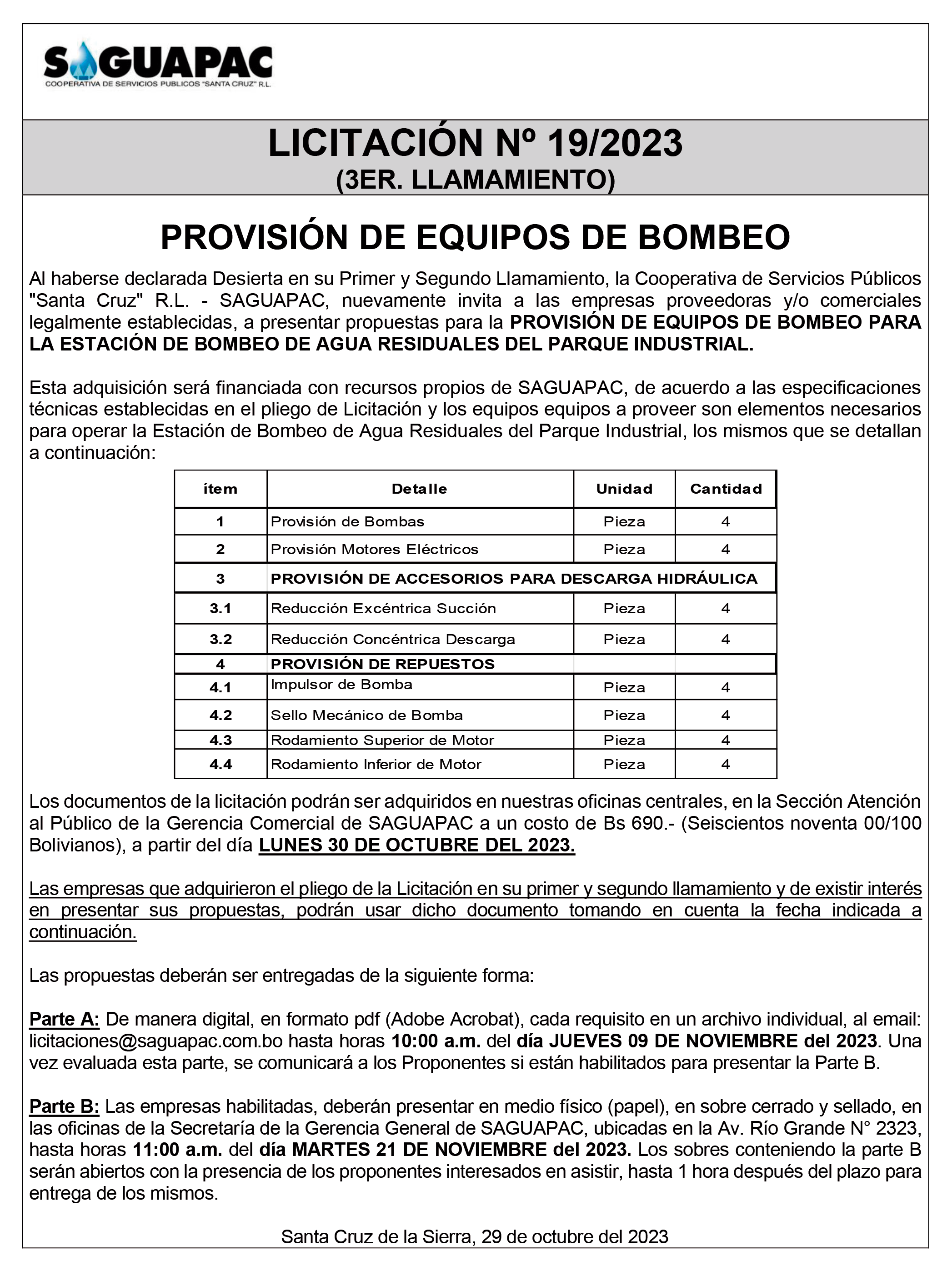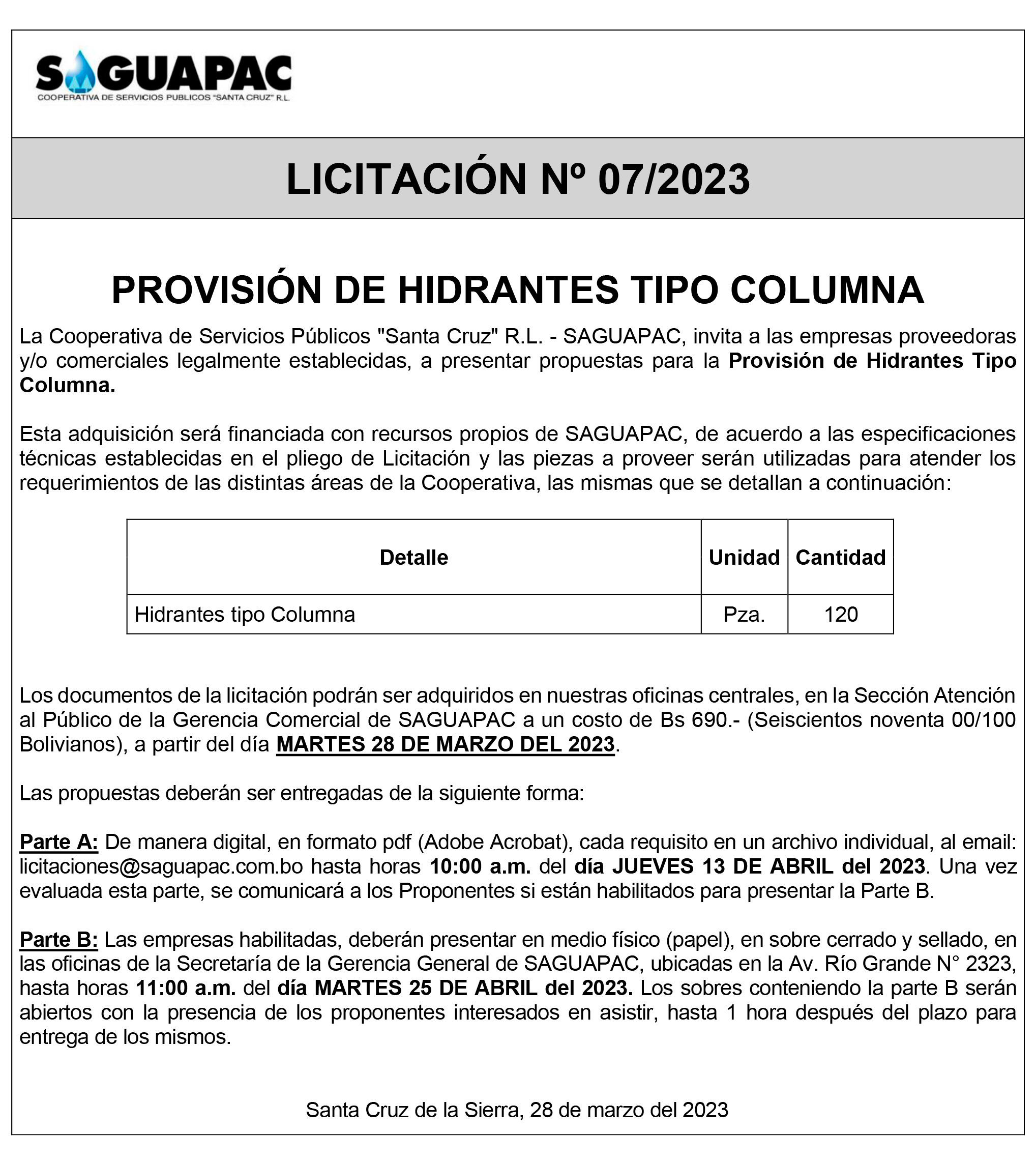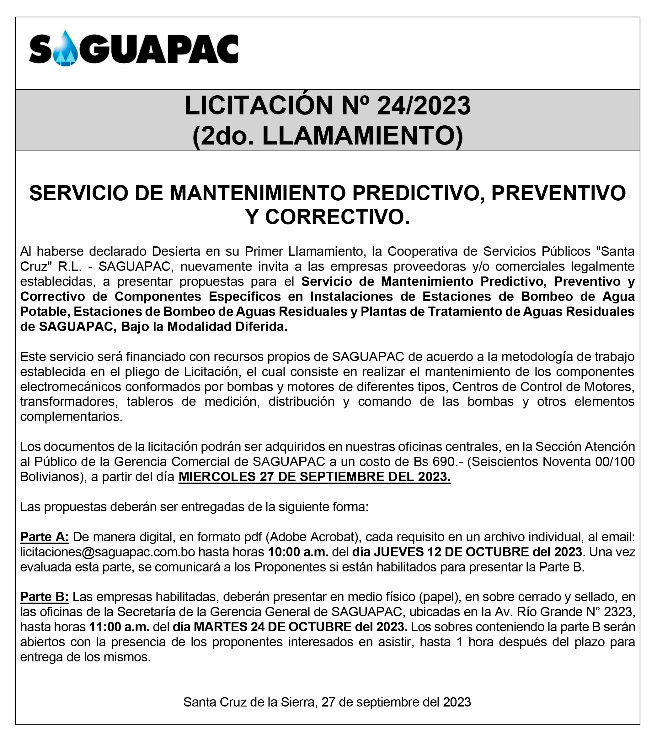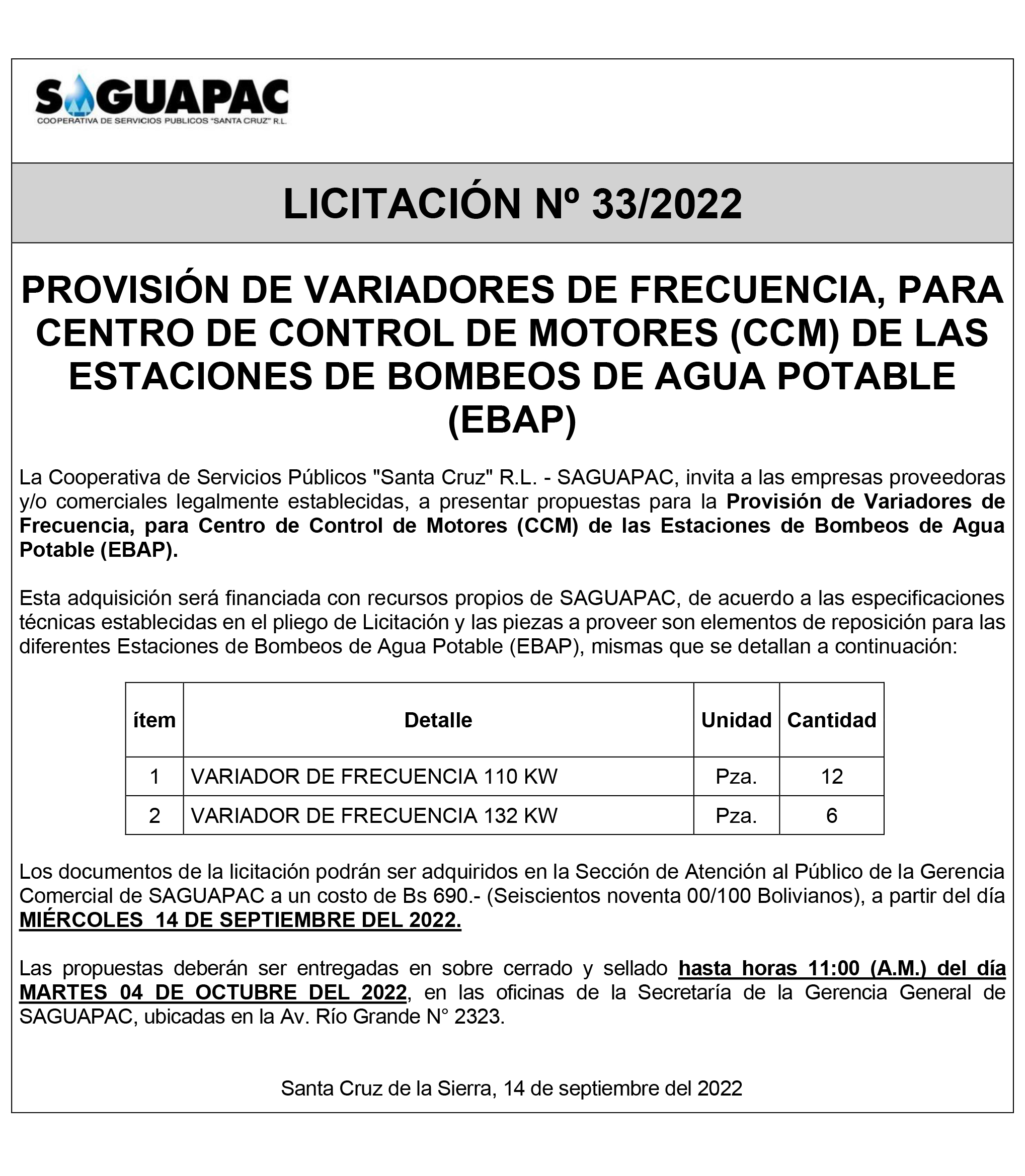 Los procesos de Contratación no son la excepción, ya que se encuentran debidamente normados bajo un Reglamento de Contratación de Obras, Bienes y Servicios, que contempla la modalidad y la normativa de las Licitaciones Públicas, que es un proceso de participación abierto para todo público así como también los Actos de Apertura de Propuestas que se realizan en presencia de los proponentes y representantes de las Cámaras de Industria y Comercio (CAINCO) en casos de bienes o servicios y de la Cámara de la Construcción de Santa Cruz en casos de obras.