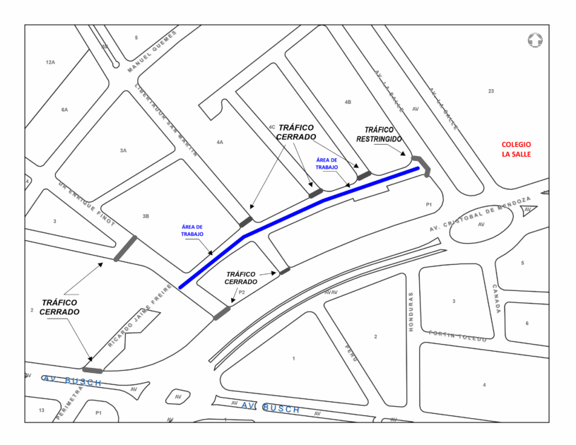 Con el objetivo de continuar con la Rehabilitación de nuestra Red de Alcantarillado Sanitario, comunicamos a usted que se cerrará el tráfico vehicular en el 2do Anillo Perimetral, Calle Ricardo Freire entre la Av. San Martín y la Calle Enrique Finot hasta el Canal Isuto, Uv. 33 Mza. P3, 3A y la Uv. 34 Mza. P1, 4A, 4B, 4C; tal como se muestra en el plano. El trabajo tendrá una duración de 8 días a partir del día miércoles 21/05/2025 al miércoles 28/05/2025.
